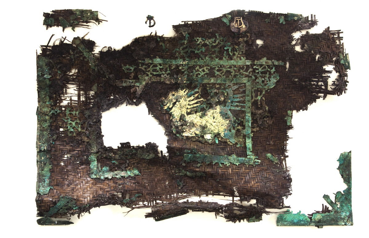 보존처리 과정중 죽제 말다래에 부착한 금동투조장식에서 드러나