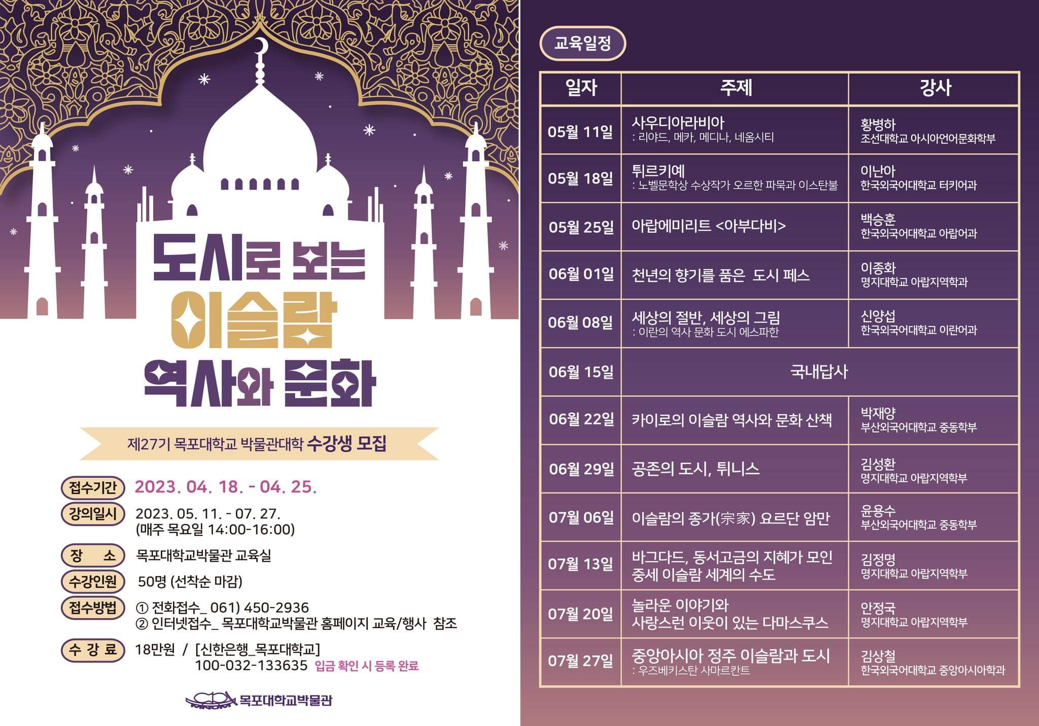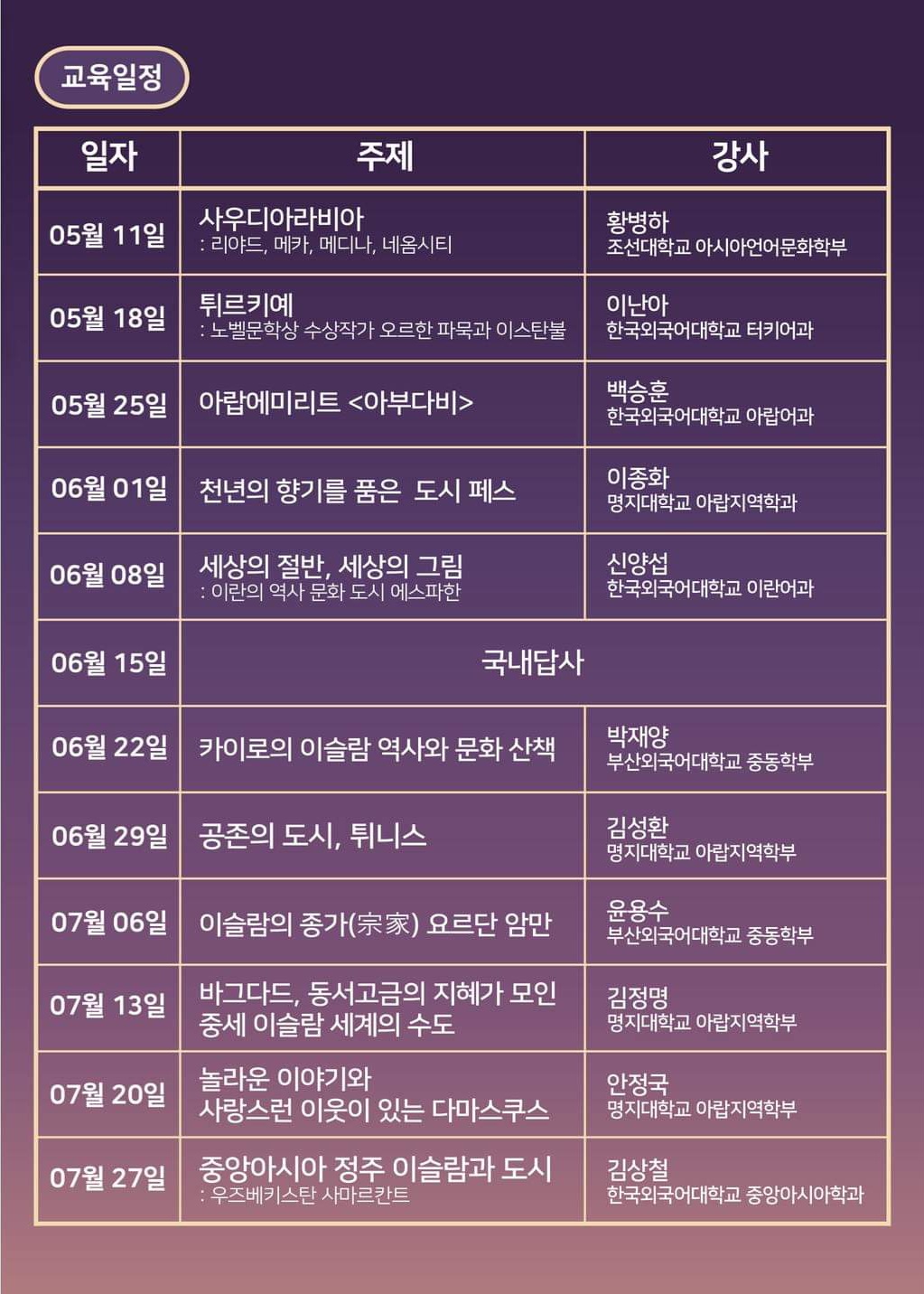 지역학으로서의 중동 혹은 아랍 문화사를 이슬람이는 키워드로 지방에 소재한 대학으로서는 여러 애로가 있었을 법한데 굉징한 짜임새를 보여 서울 같으면 내가 등록했으리라.