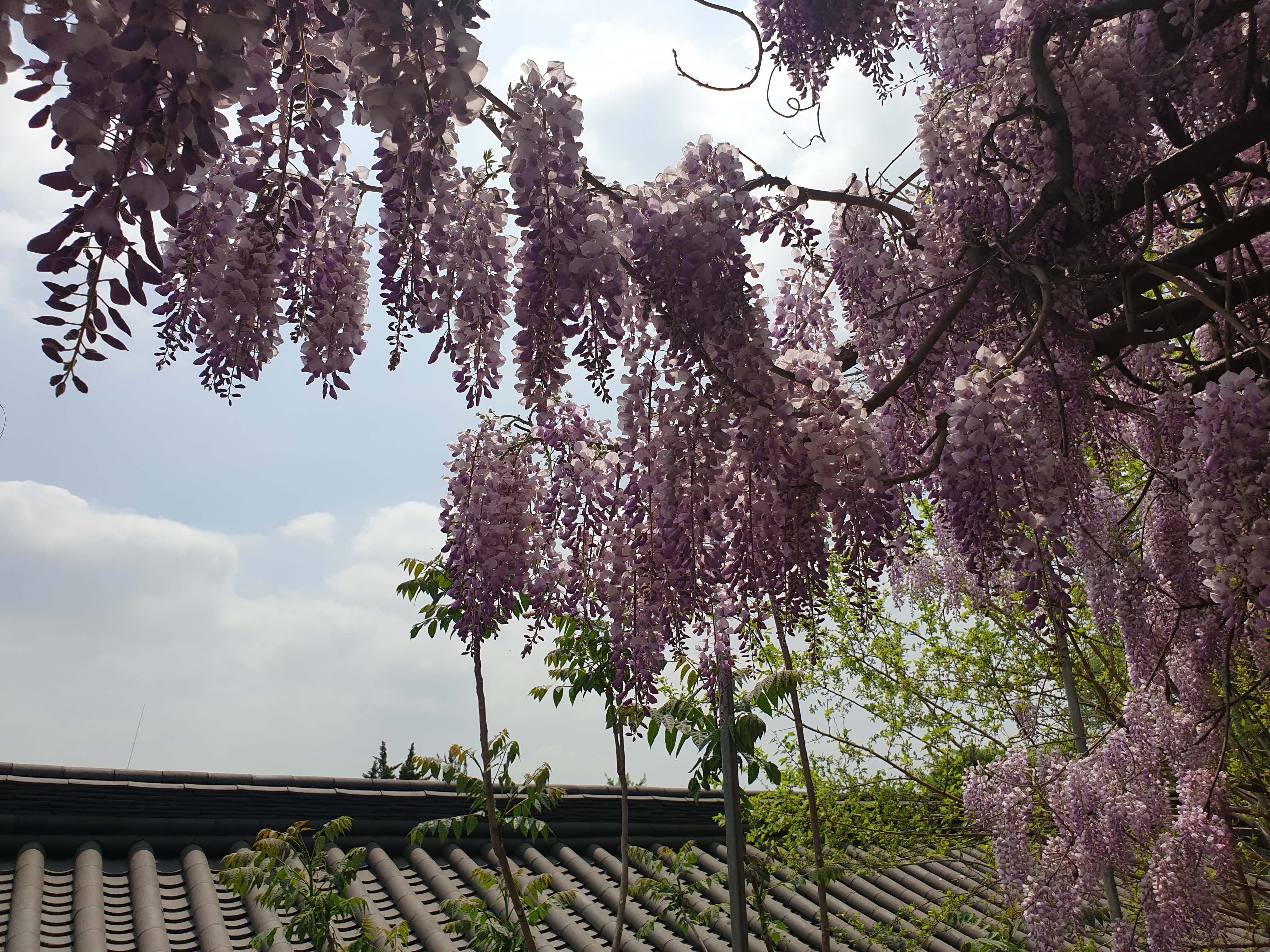 어제다. 점심시간을 이용해 조폭답사반원 두 분과 더불어 삼청동 답청을 감행했거니와, 그에서 칠보사라는 도심 사찰을 조우하고는 그 마당으로 통하는 입구 하늘을 치렁치렁 연분홍으로 온통 물들인 등나무꽃을 마주하고는 넋을 잃고 말았다.