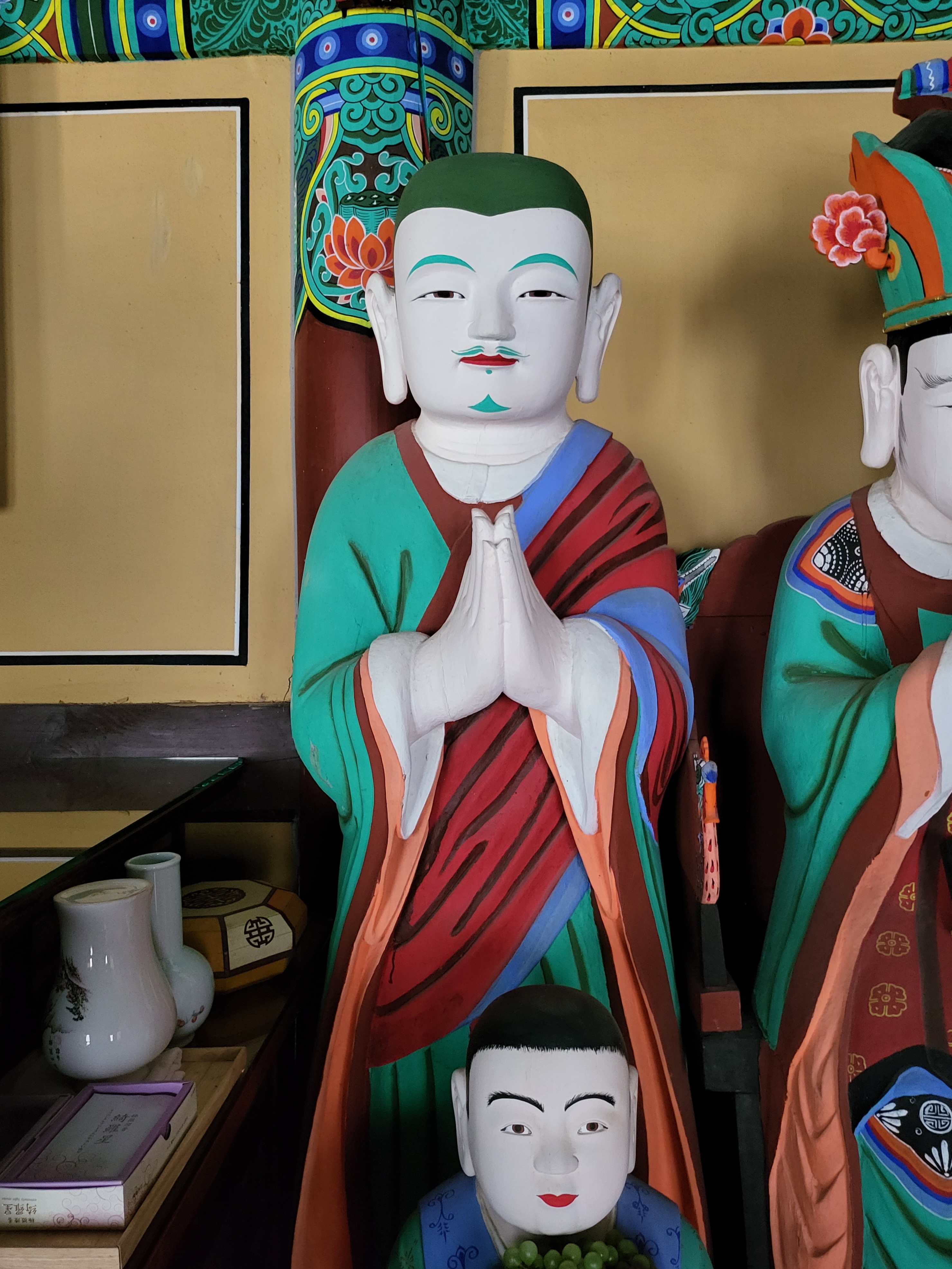 This collection of 19 statues enshrined in Myeongbujeon Hall at Bonggoksa Temple includes a Ksitigarbha Bodhisativa triad, the Ten Underworid Kings, and other members of their retinue.
