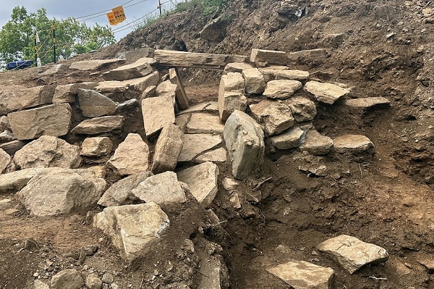 한강과 임진강이 만나는 지점에 위치하는 경기 파주시 오두산성에 대한 두 번째 발굴조사에서 처음 쌓은 성벽과 고친 성벽이 교차하는 양상을 비롯해 성벽과 관련된 배수구 흔적을 확인했다고 조사 의뢰기관인 파주시가 5일 밝혔다.