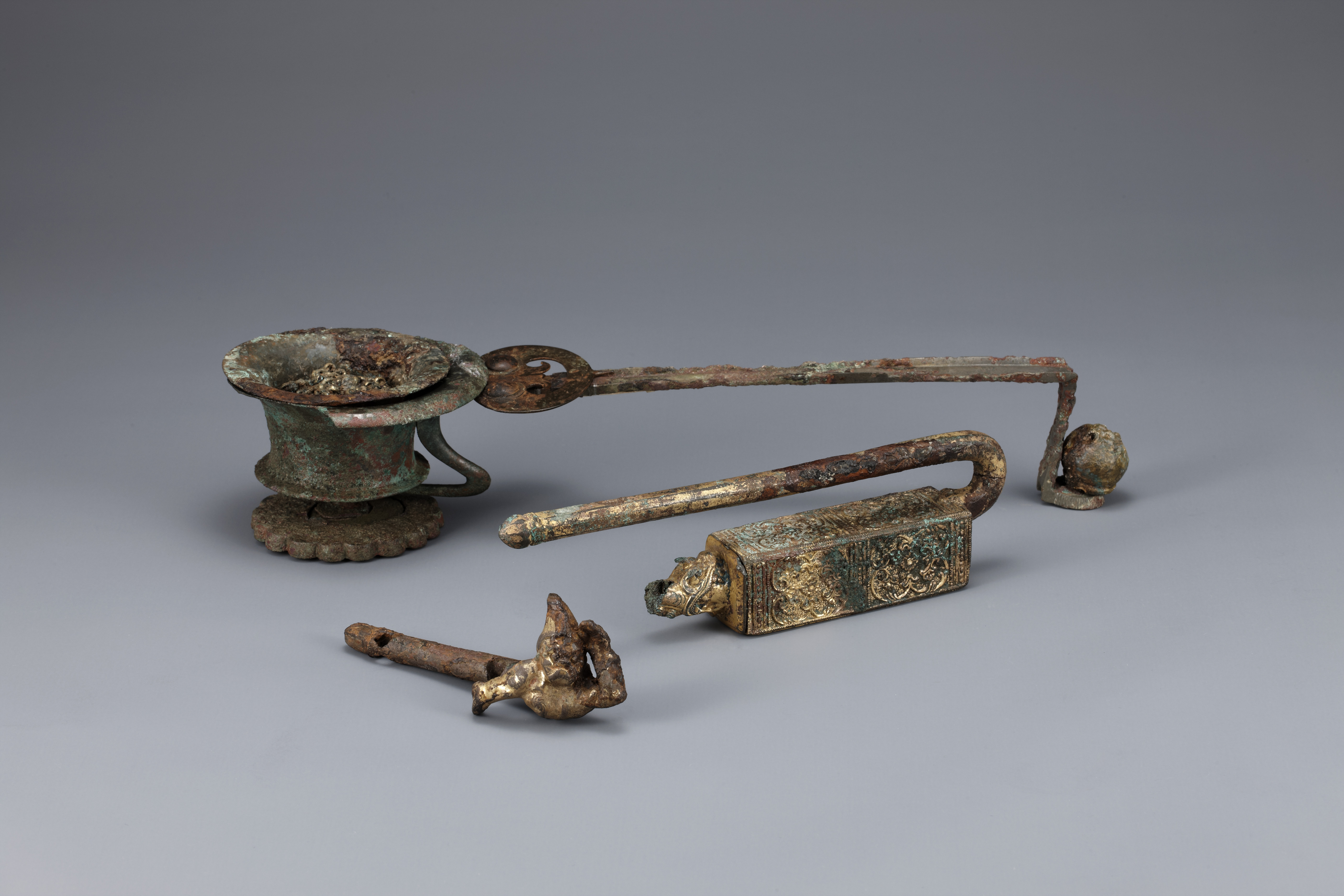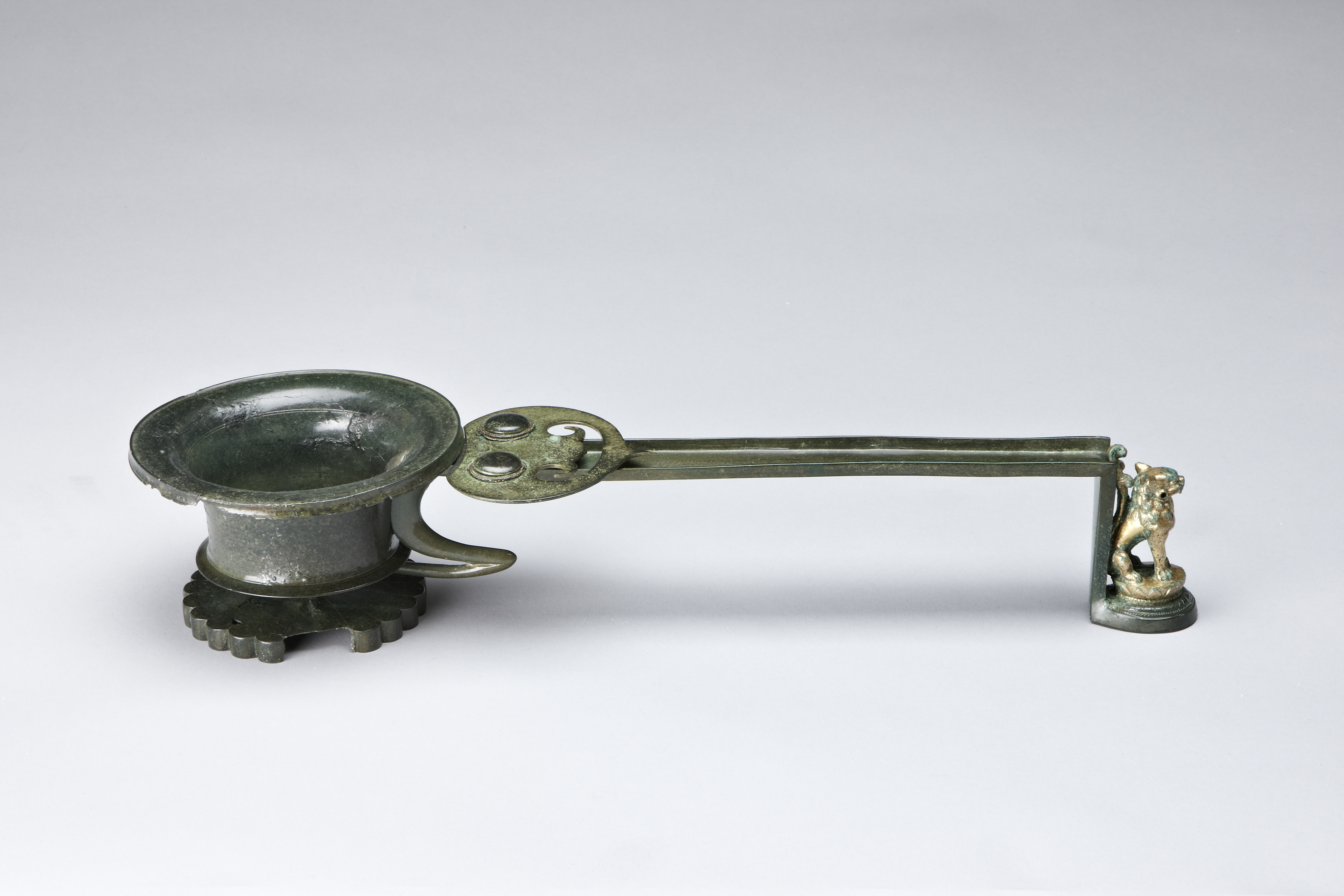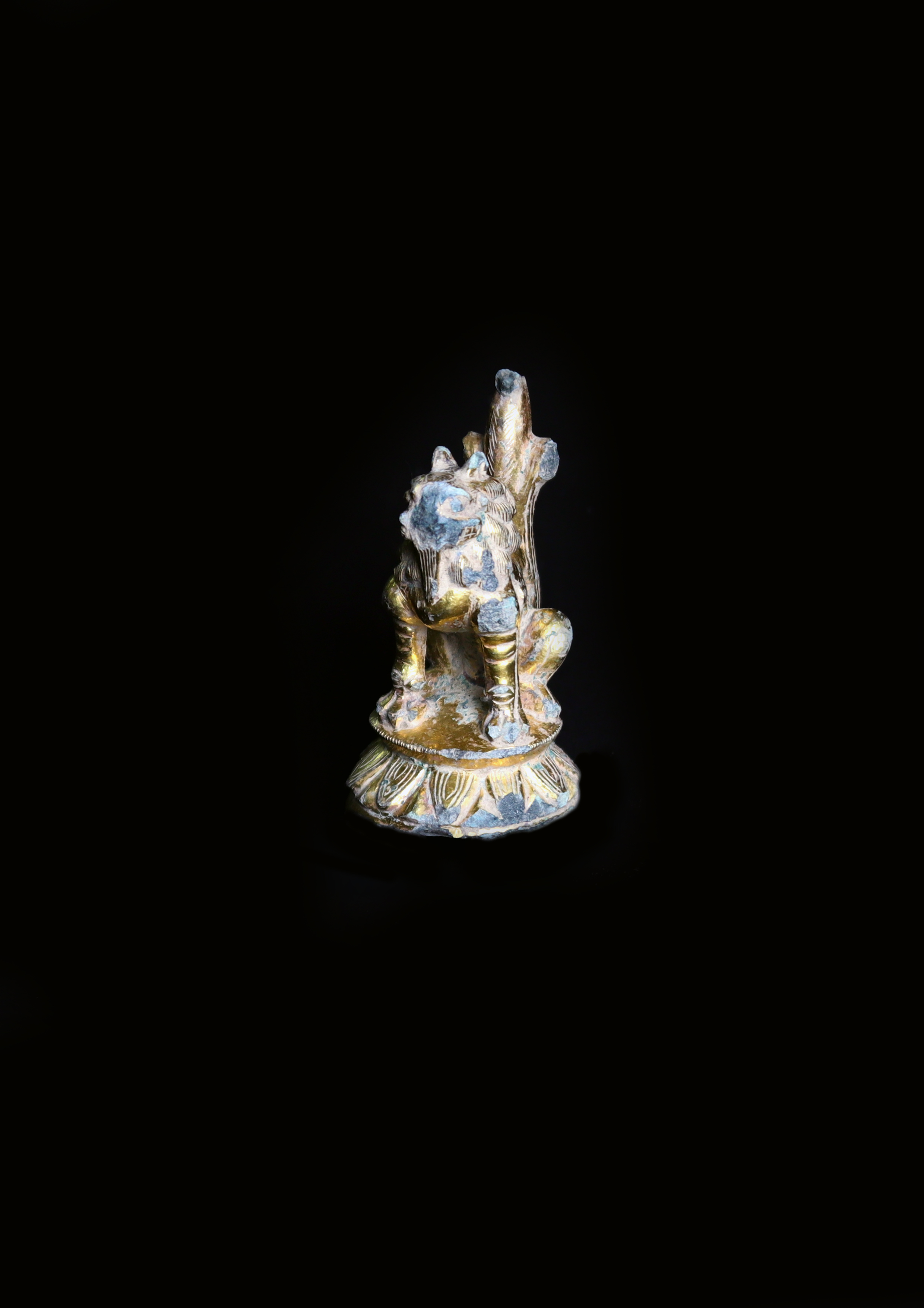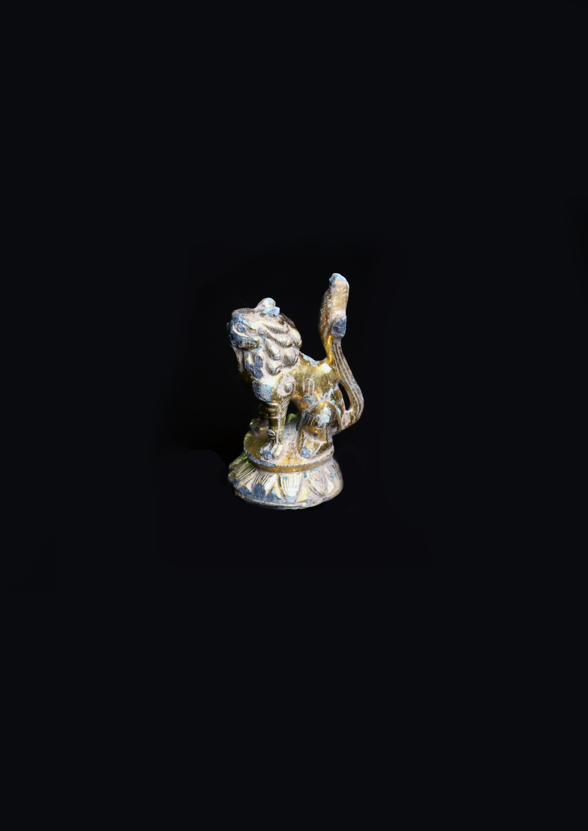 Guilt bronze Lion of Silla dynasty era Incense Burner with handle from a Buddhist Temple Site at Heungjeon-ri, Samcheok, Gangwon-do Province