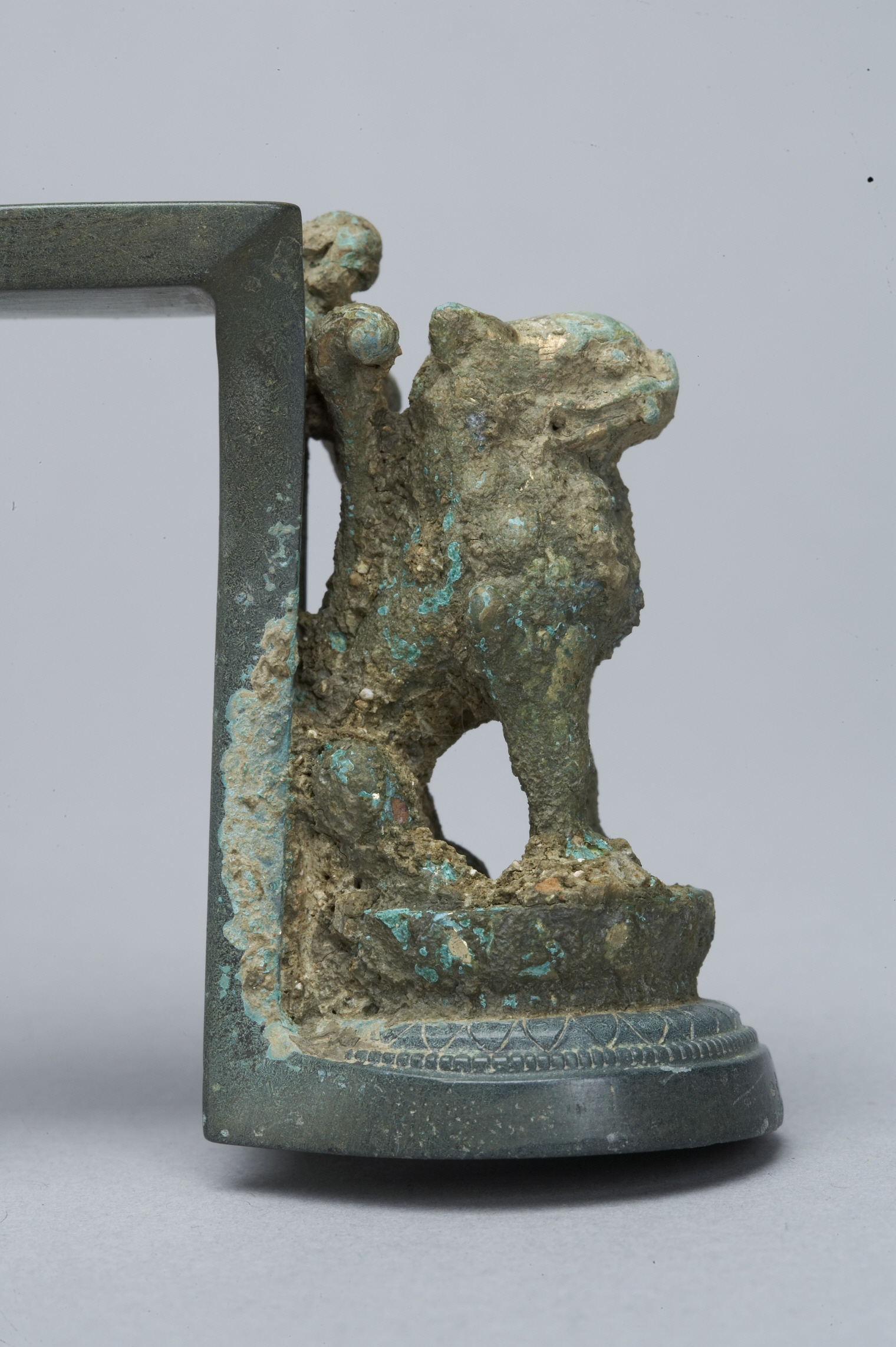 Guilt bronze Lion of Silla dynasty era Incense Burner with handle from a Buddhist Temple Site at Heungjeon-ri, Samcheok, Gangwon-do Province
