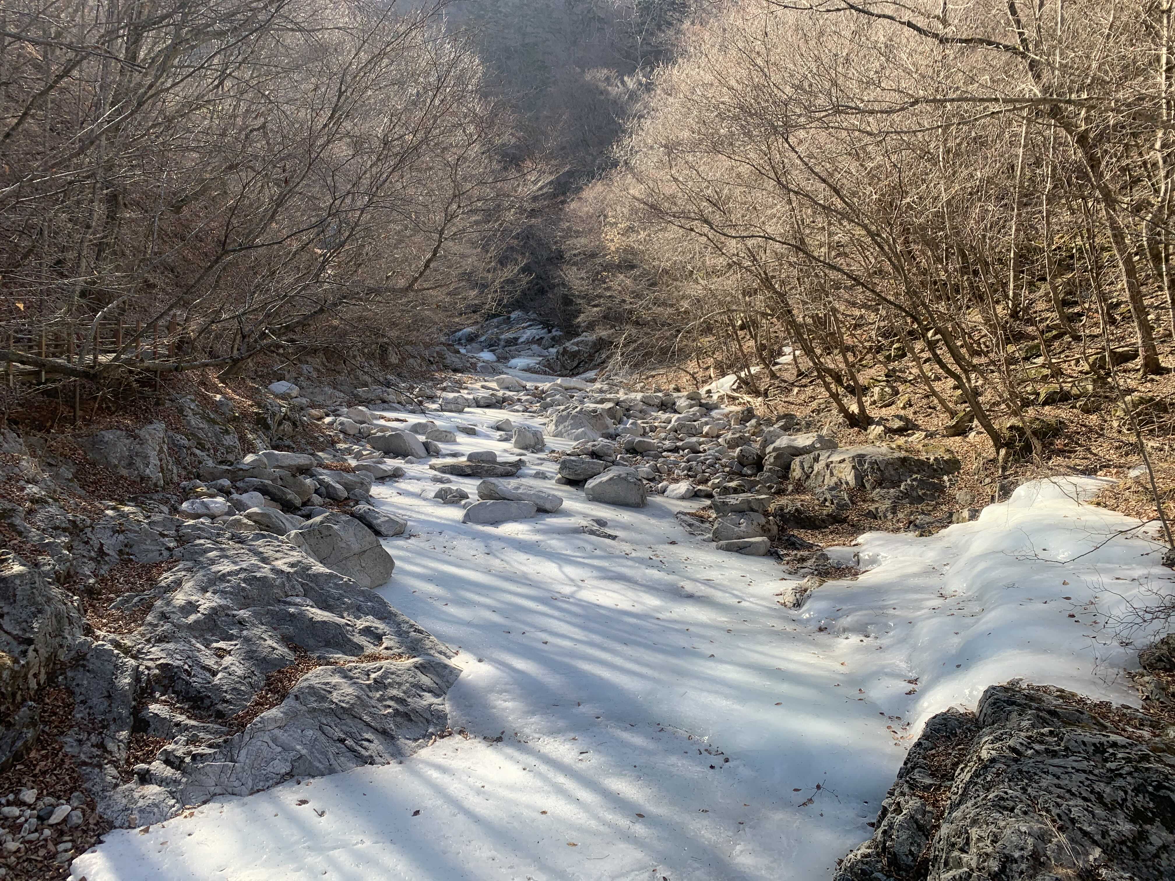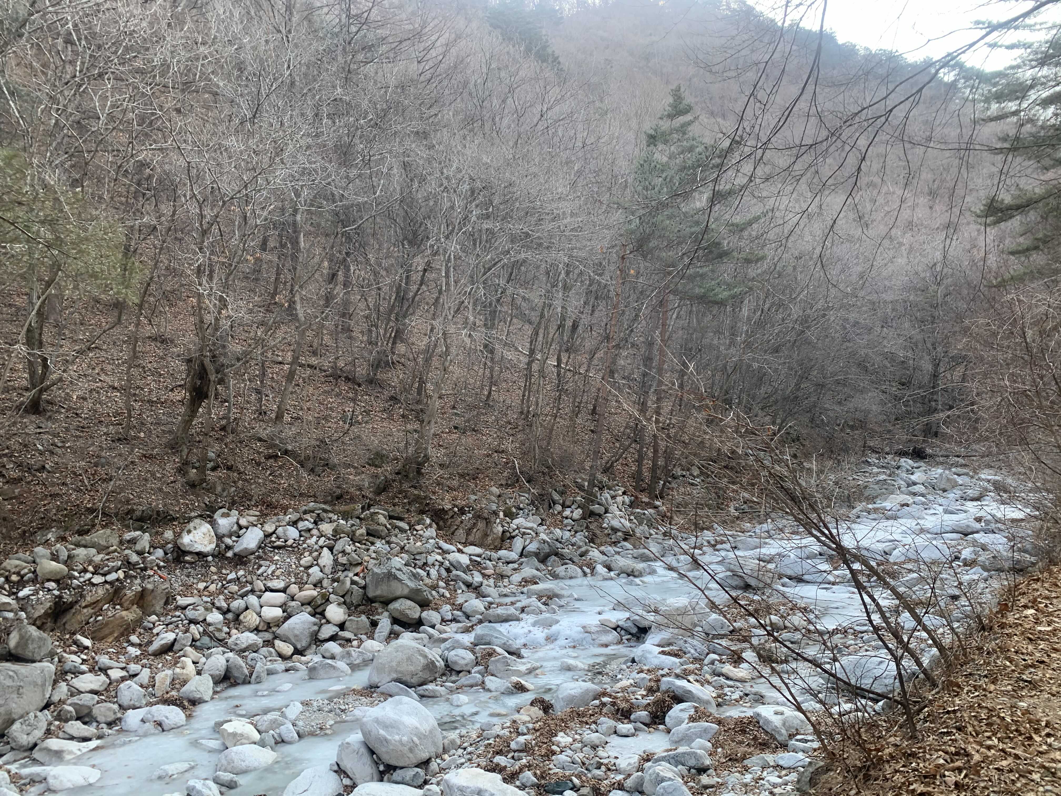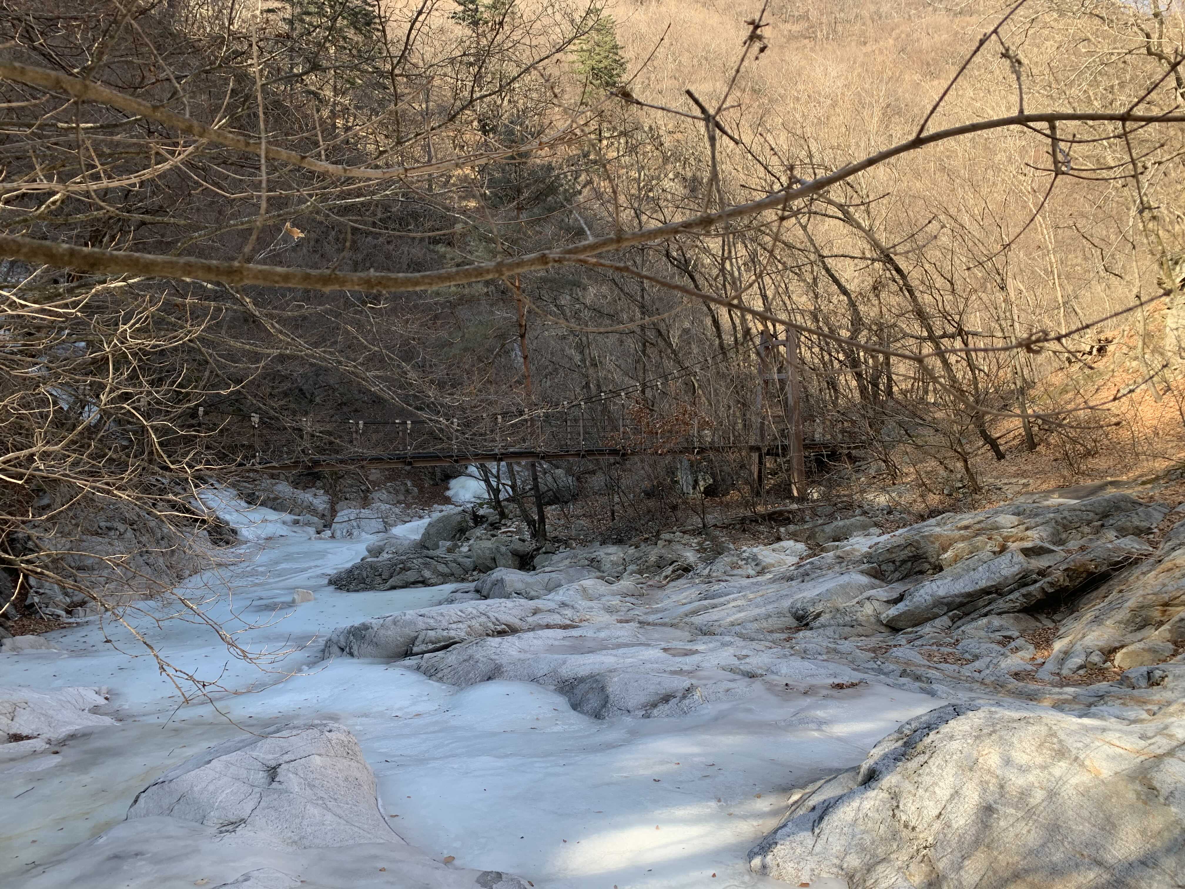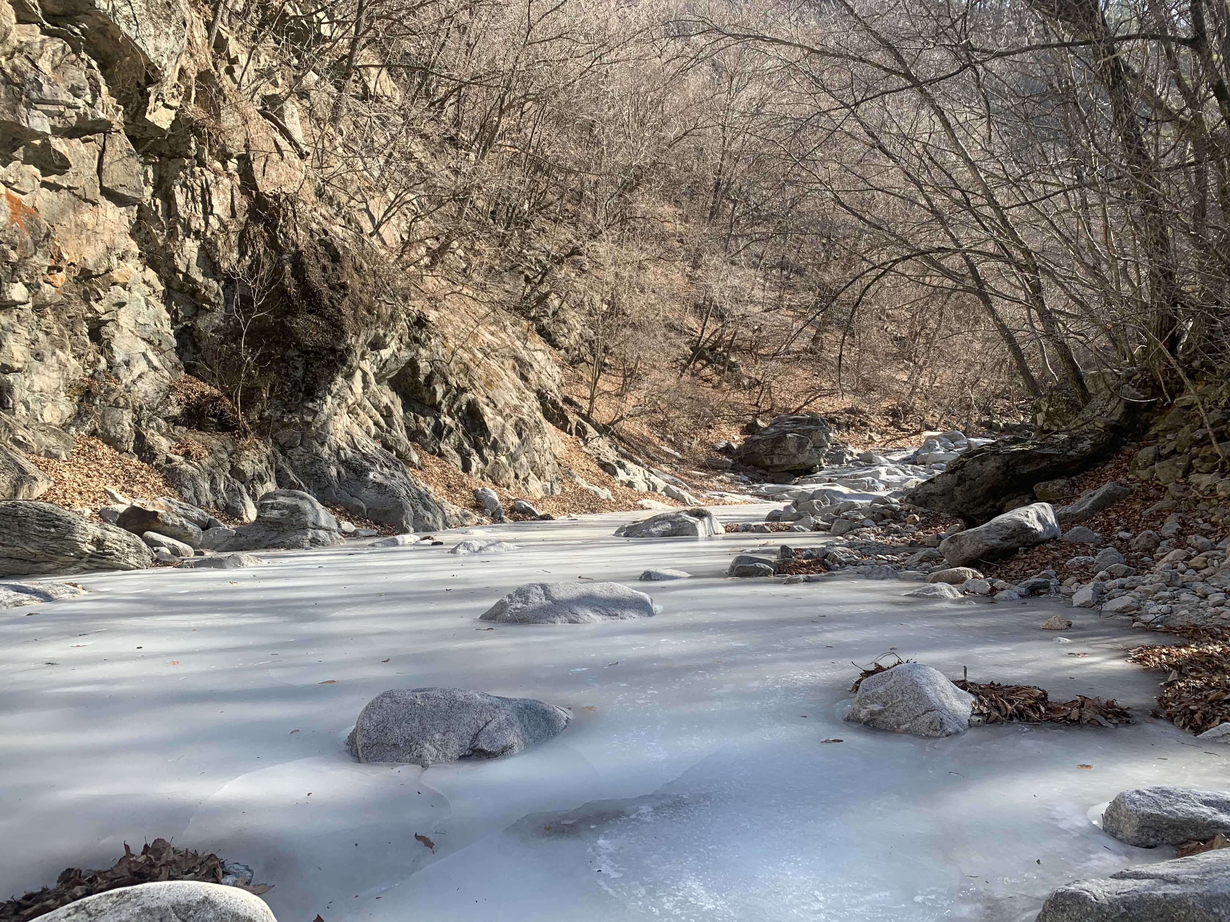 꽁꽁 얼어 새하얀 계곡을 보니,