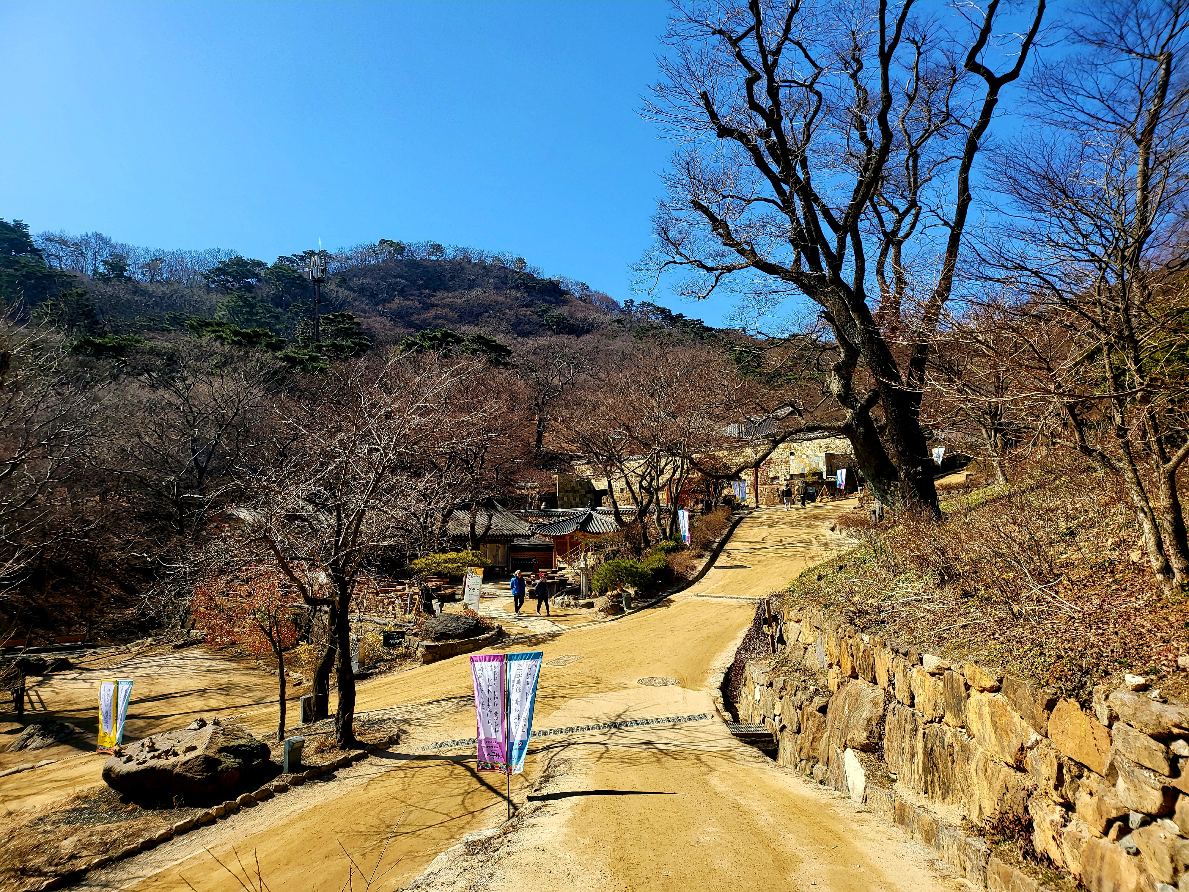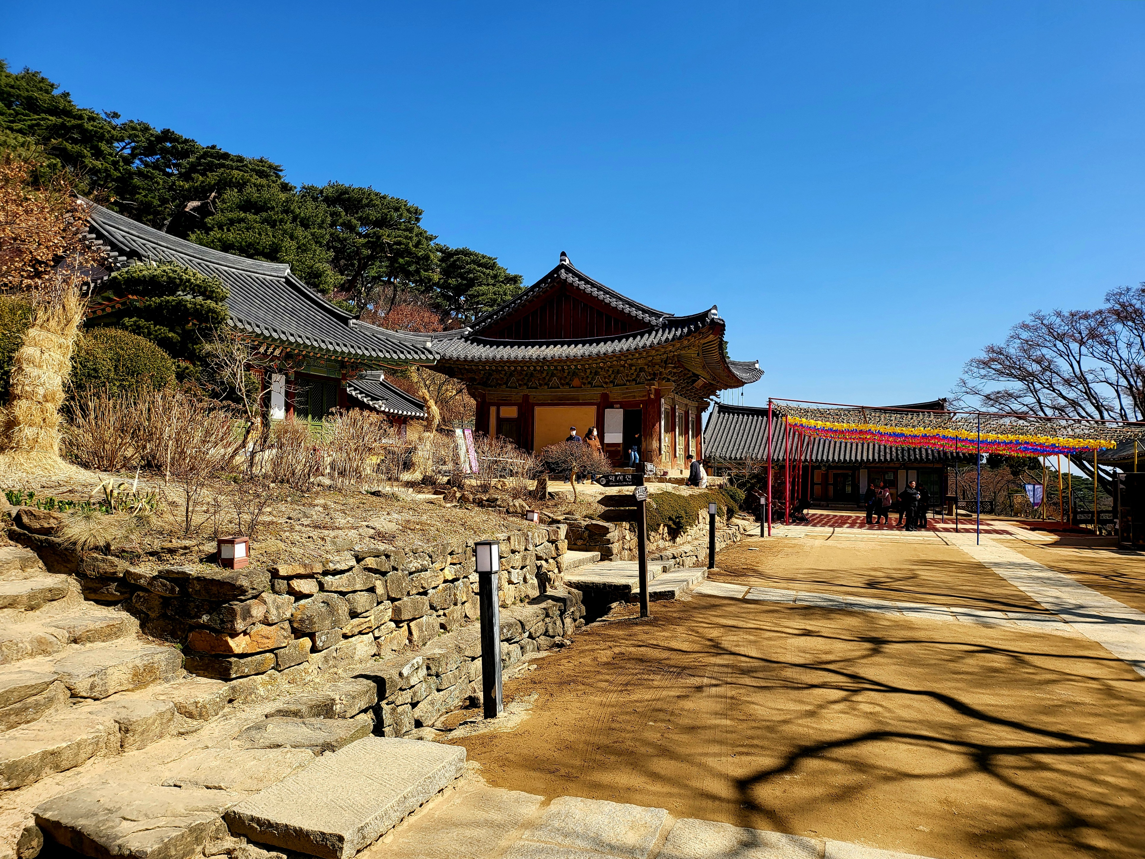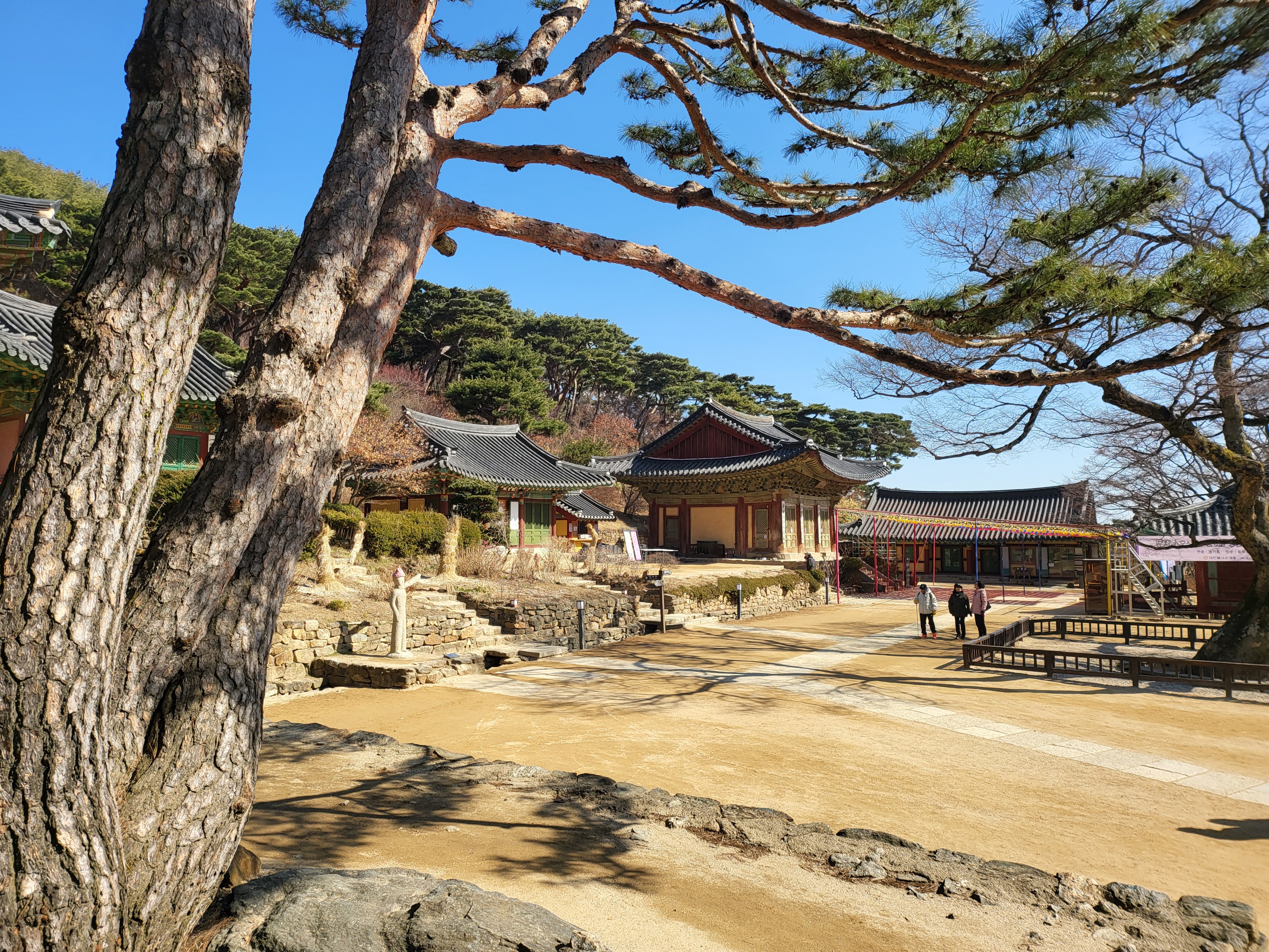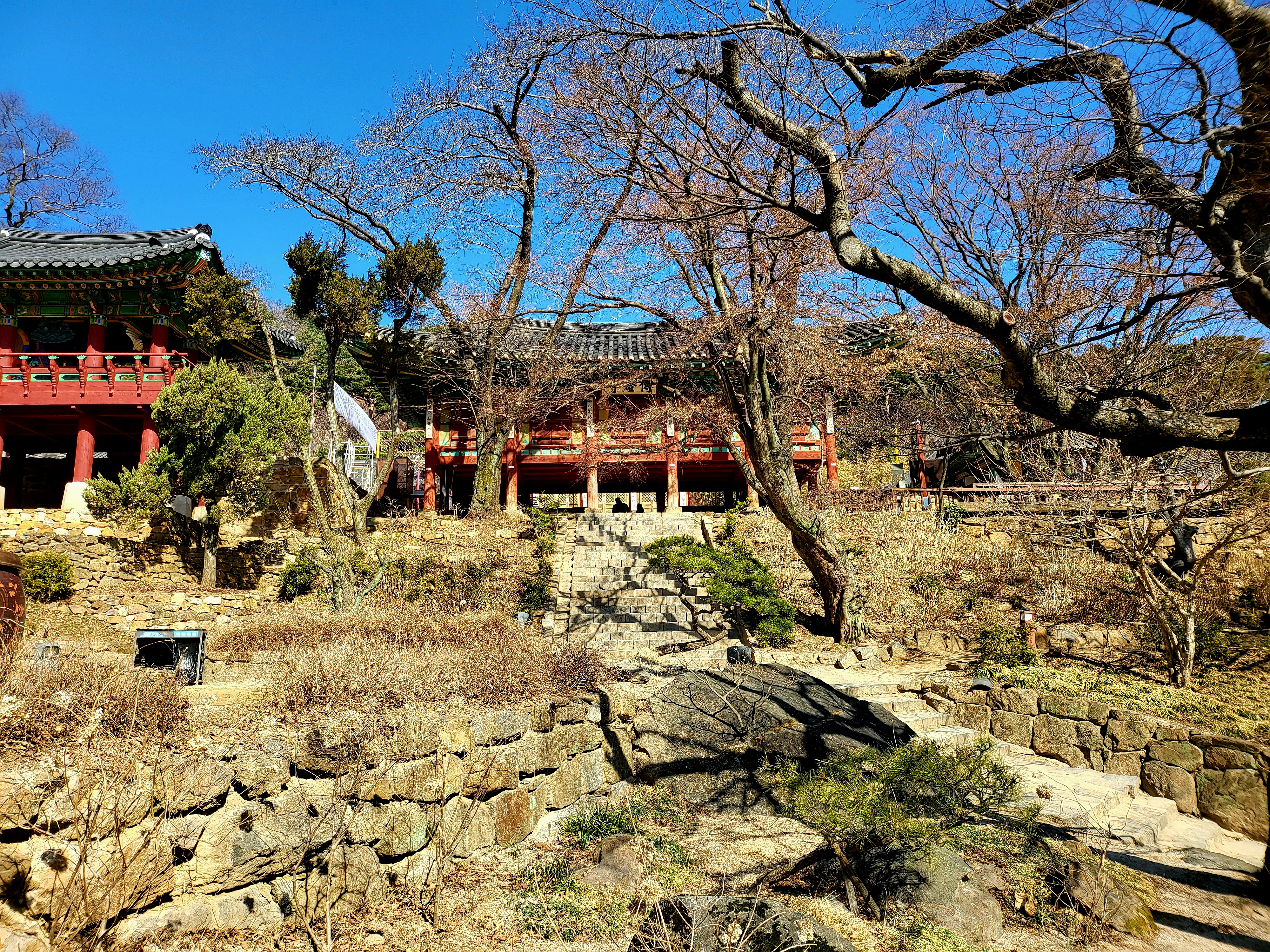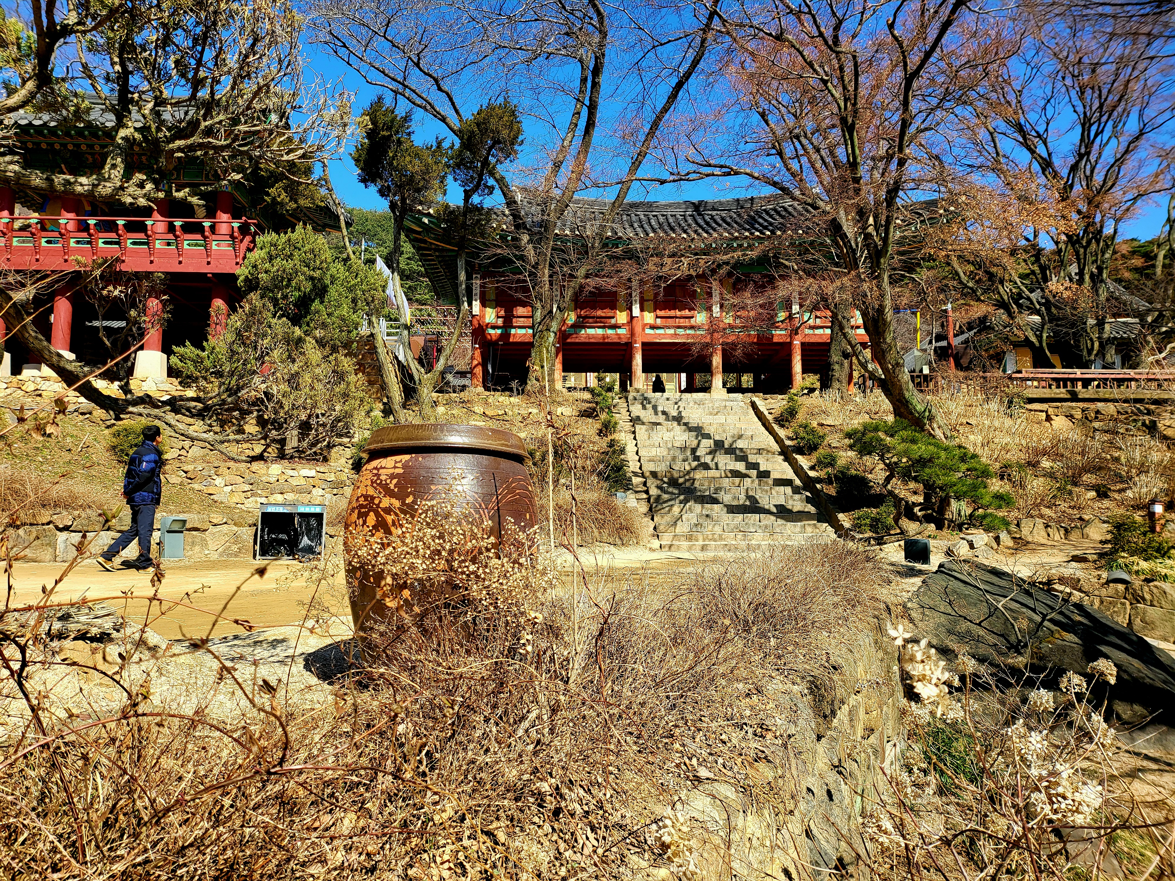대웅전 앞두고 대조루 향해 가는데 바람이 여전히 차다.