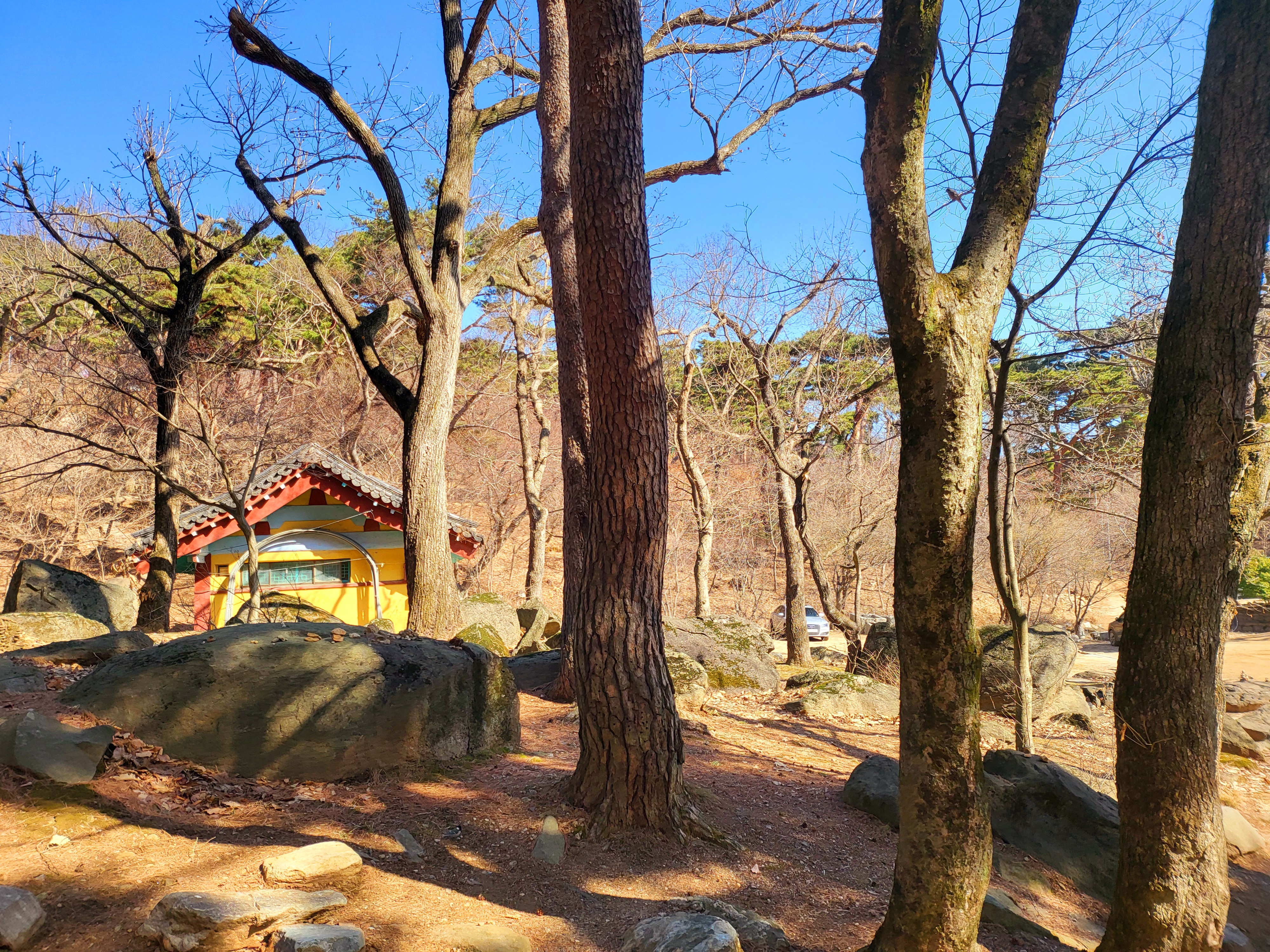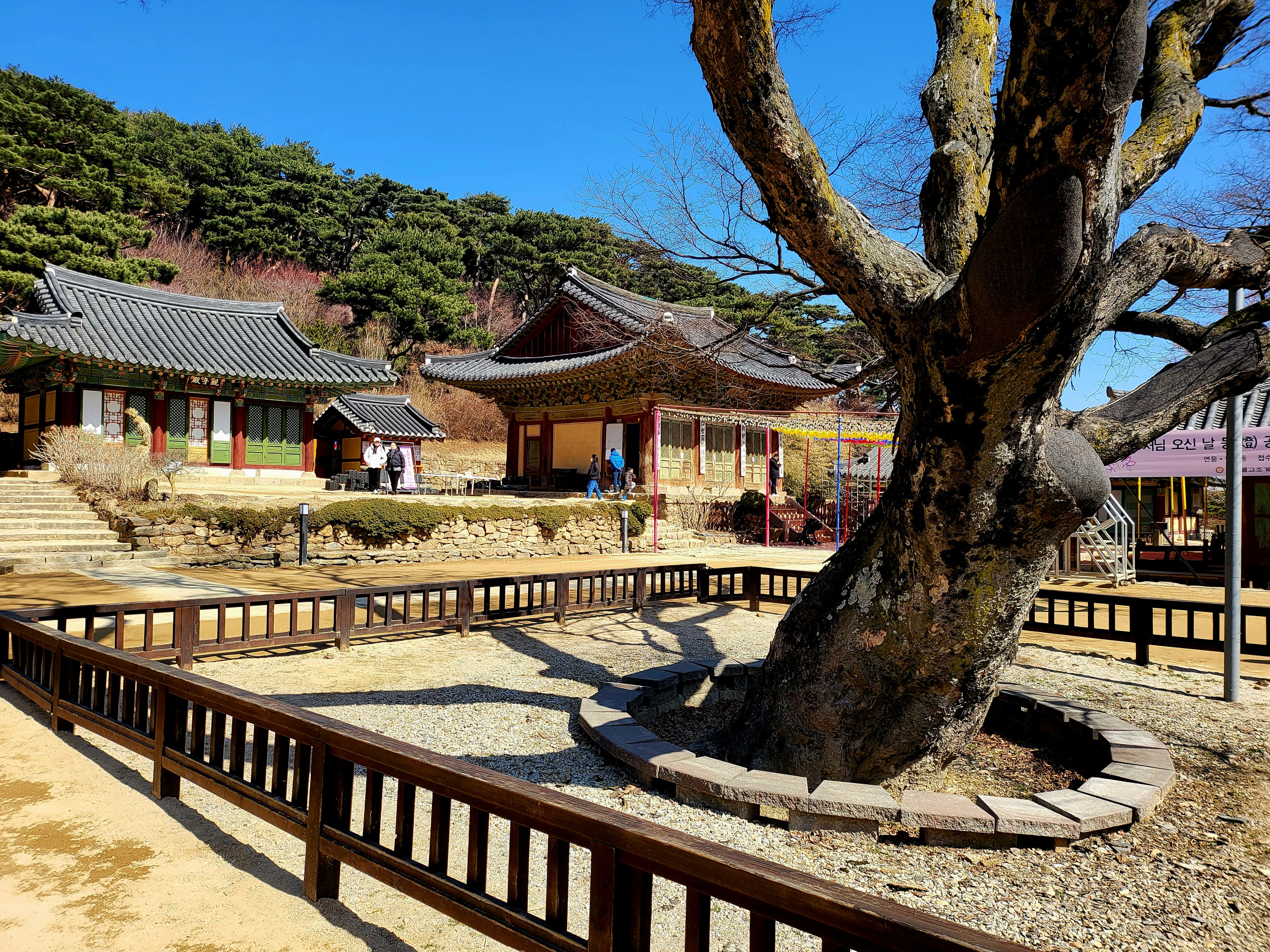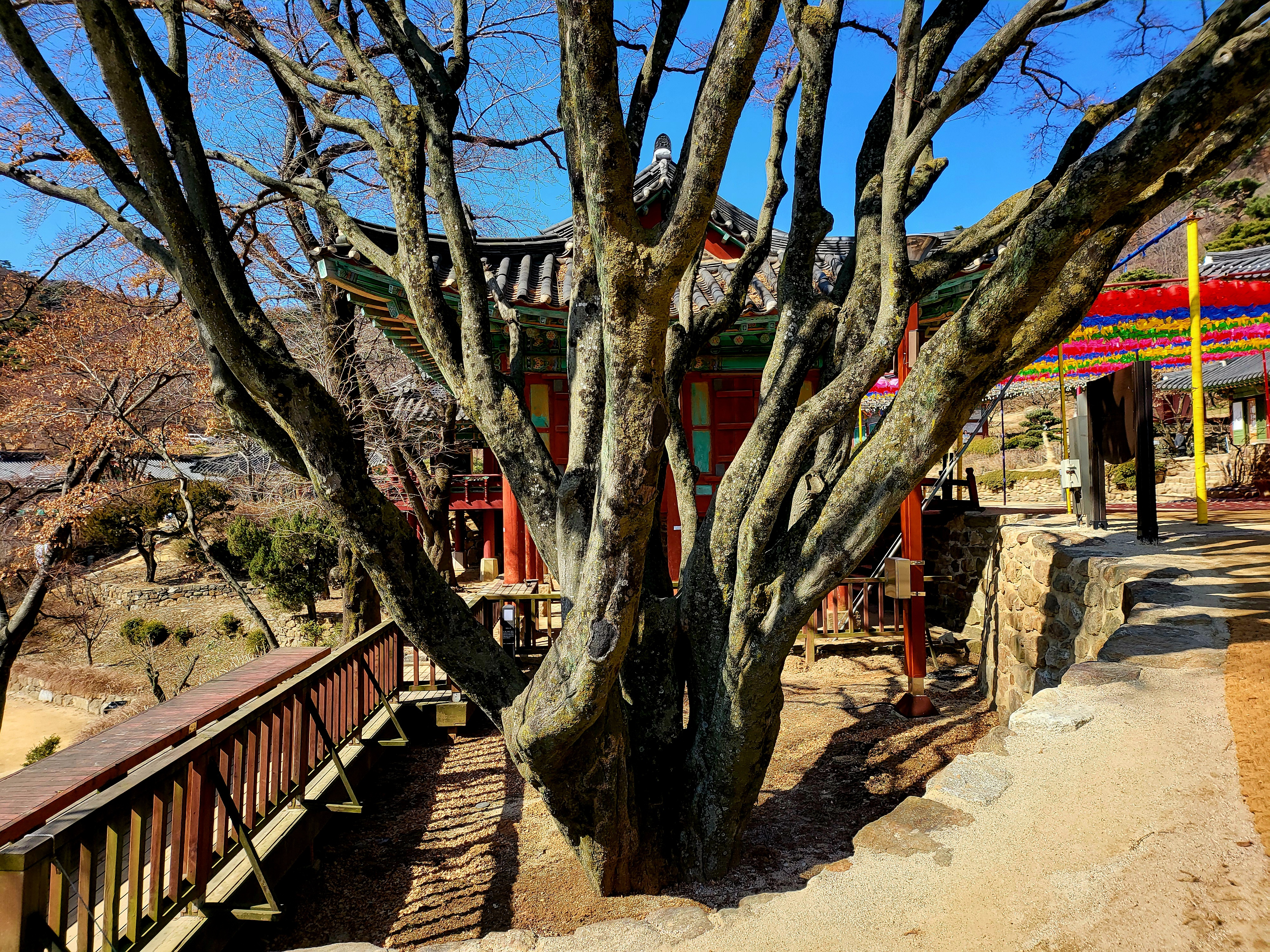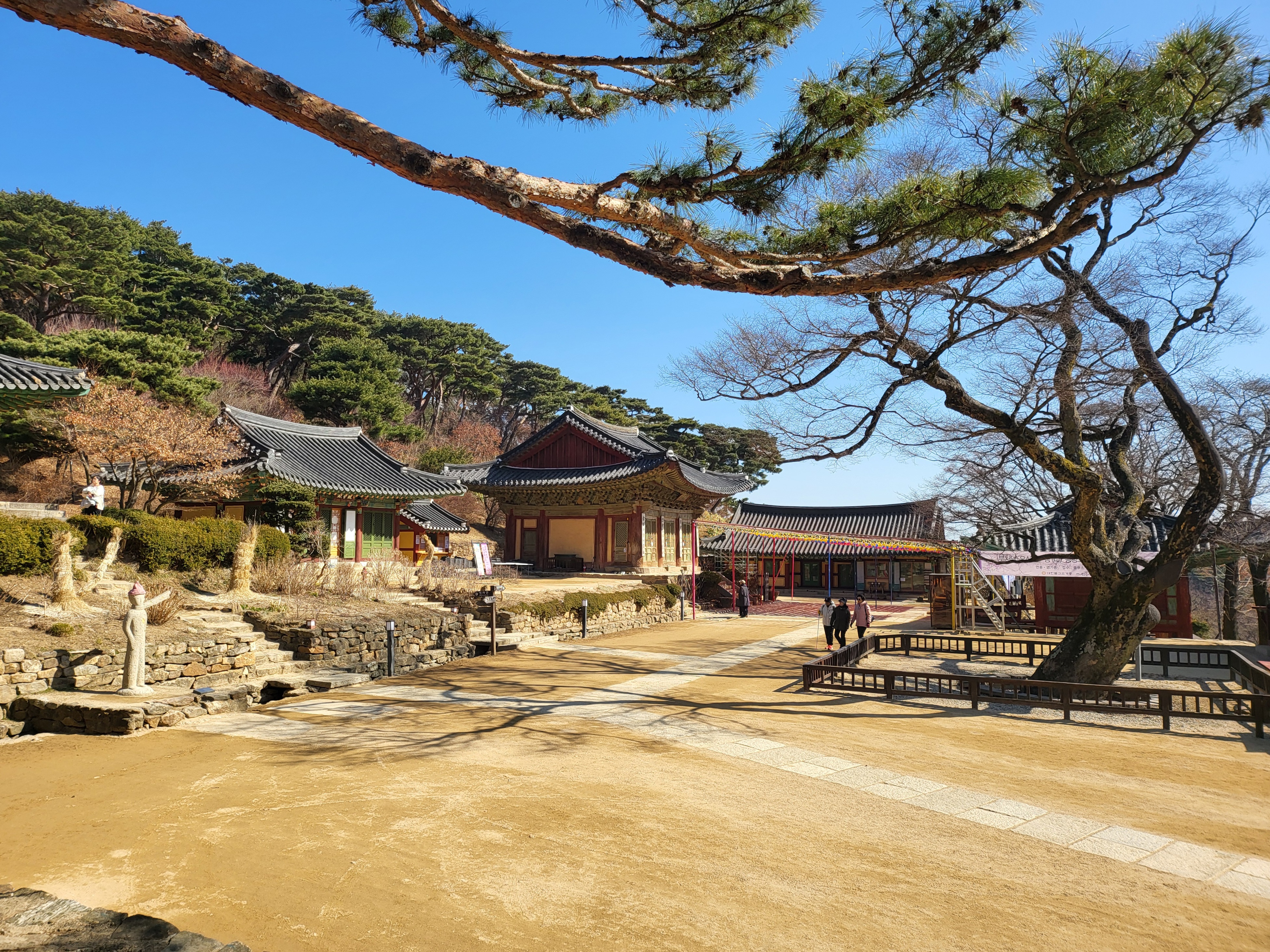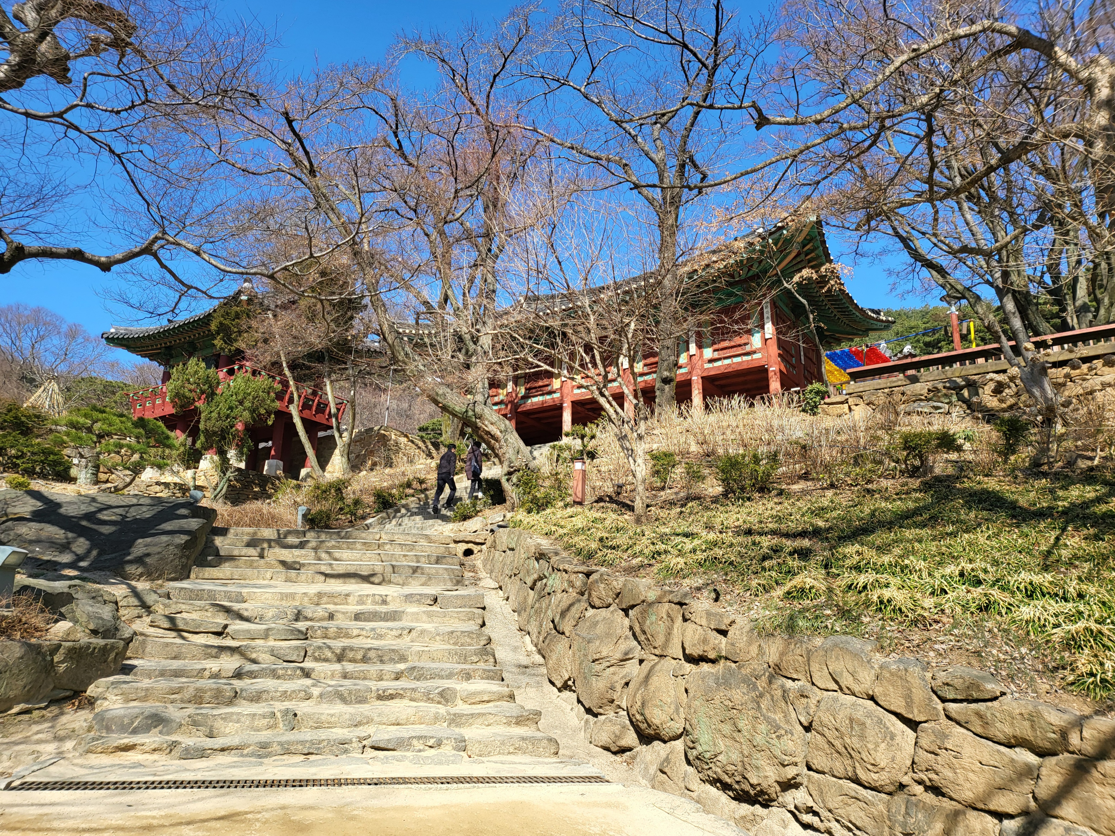 대웅전 앞두고 대조루 향해 가는데 바람이 여전히 차다.