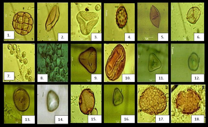 다양한 종류의 꽃가루가 현미경으로 확인되었다면