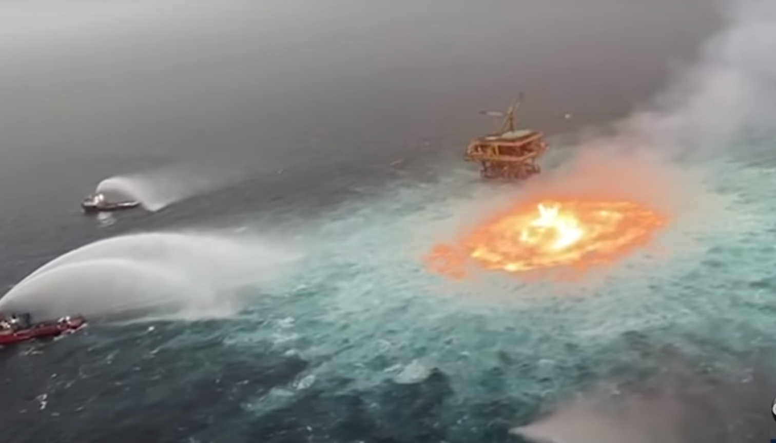 멕시코만 바다 한가운데서 발생한 사건이라 하는데, 바다 밑을 지나는 수중가스관인지 송유관인지가 유출하면서 일어난 현상이란다. 가스건 석유건 불은 왜 붙은 거임? 누가 성냥불이라도 그어댔나?