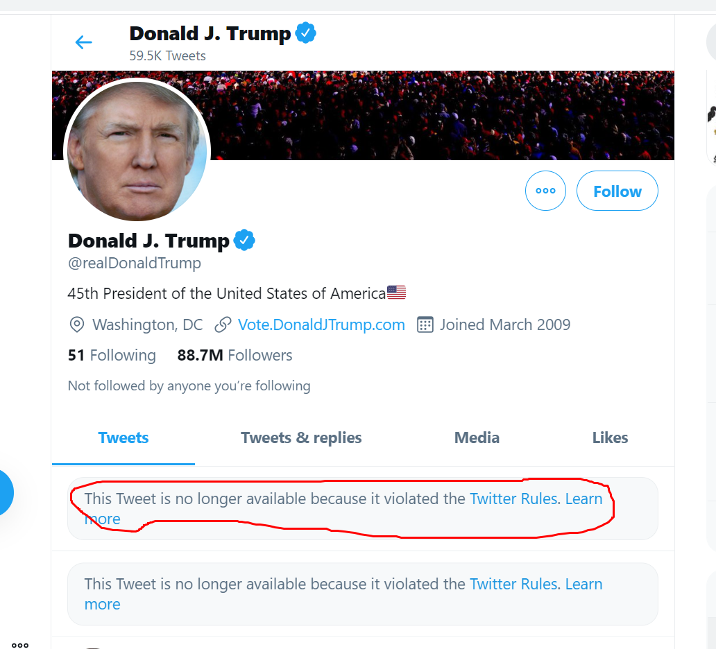 트럼프가 저들 sns 계정을 통해 그동안 뇌까린 포스팅이 저들의 가이드라인에 부합이나 했겠는가? 내 보기엔 그 절반이 그것을 배반했으니, 그럼에도 두 회사는 기껏 한두 번 경고조치하는 데 그쳤을 뿐이며, 수수방관할 뿐이었다. 뭐 그럴 수밖에 없는 처지는 이해한다.
