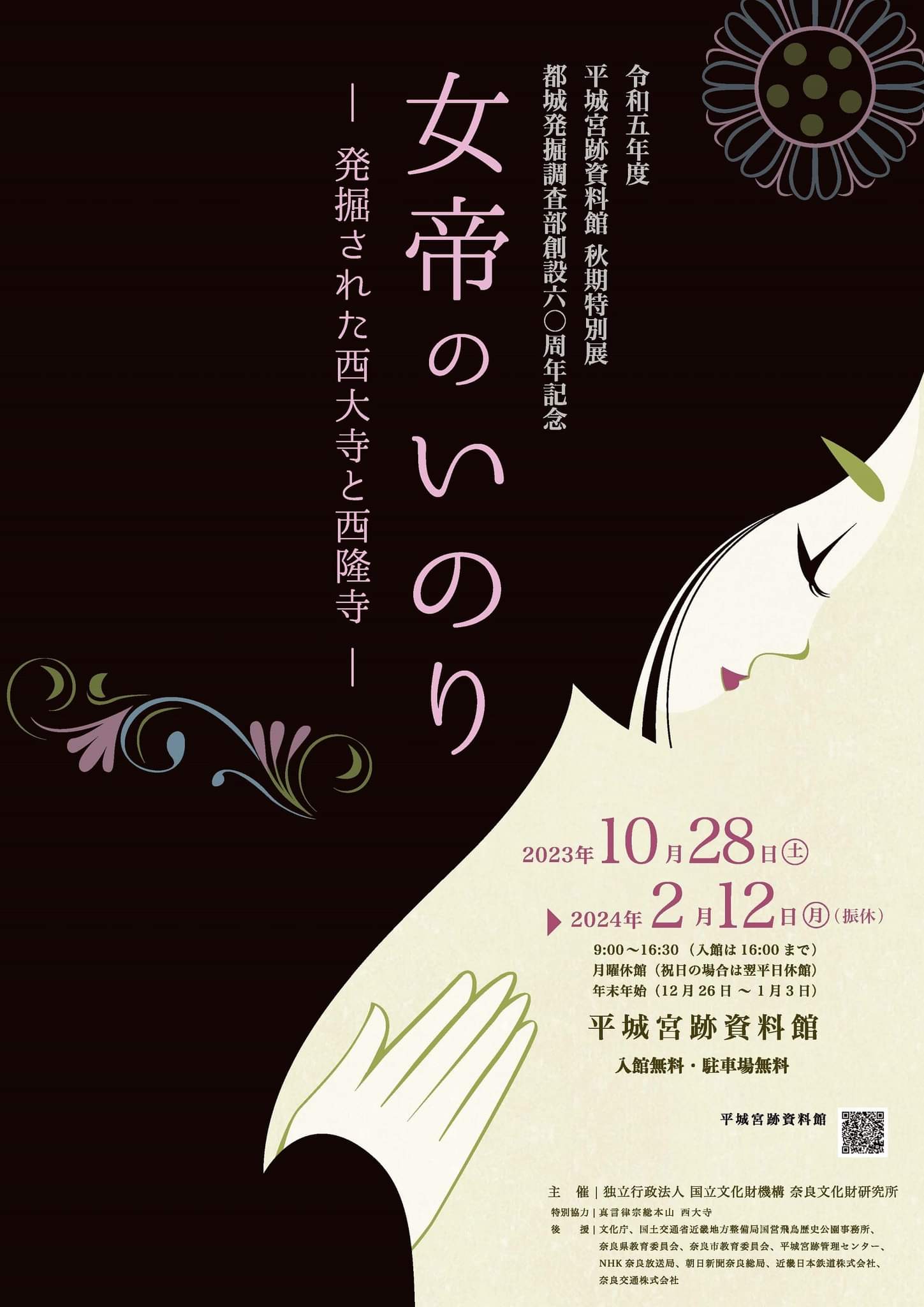 2023 평성궁적자료콴平城宮跡資料館秋 가을 특별전・도성조사부都城発掘調査部 창설 60주년 기념「여제女帝의의기원[이노리 いのり]-발굴로 드러난 서대사西大寺와 서륭사西隆寺」