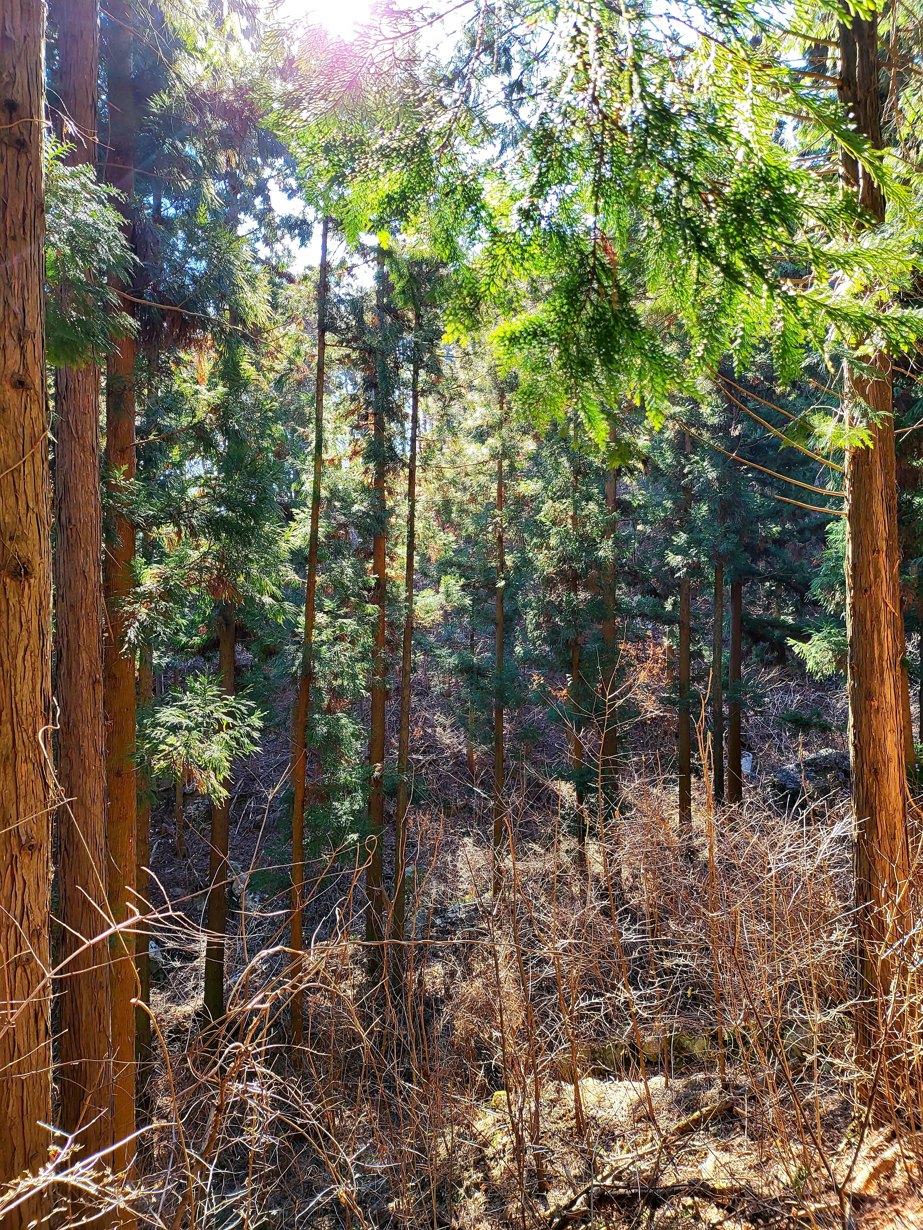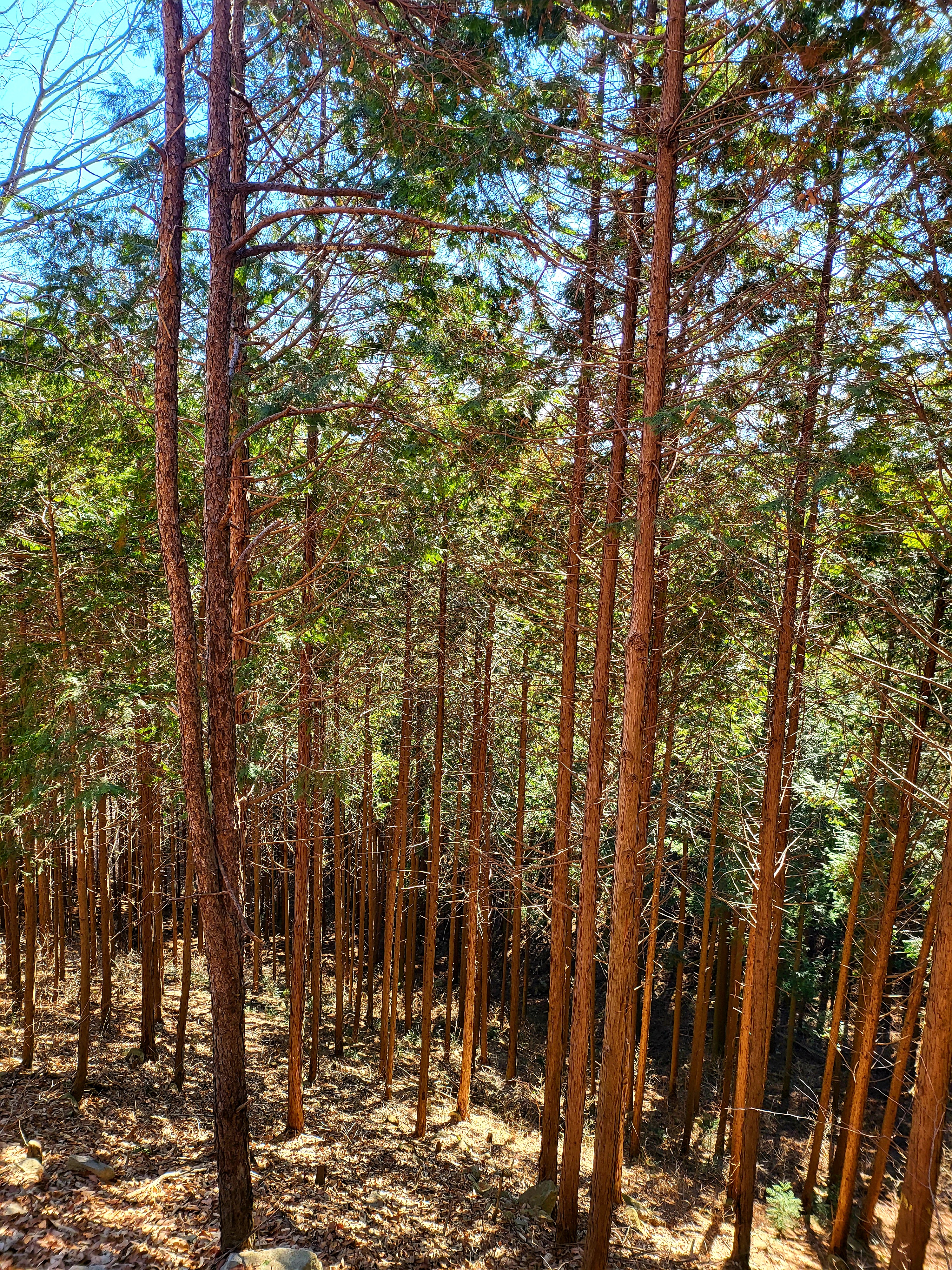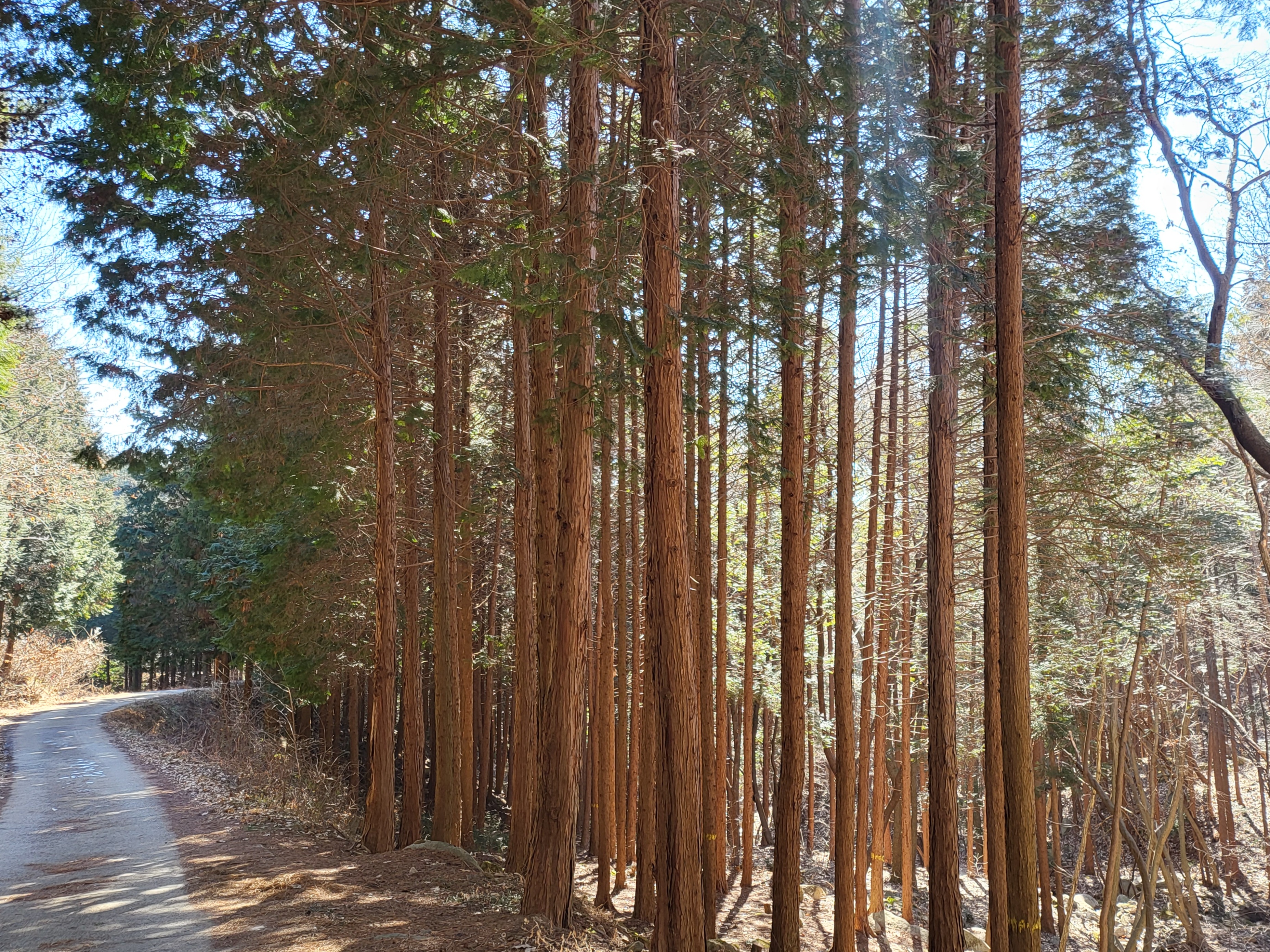 그제 다닌 장성 축령산 편백나무숲이다.