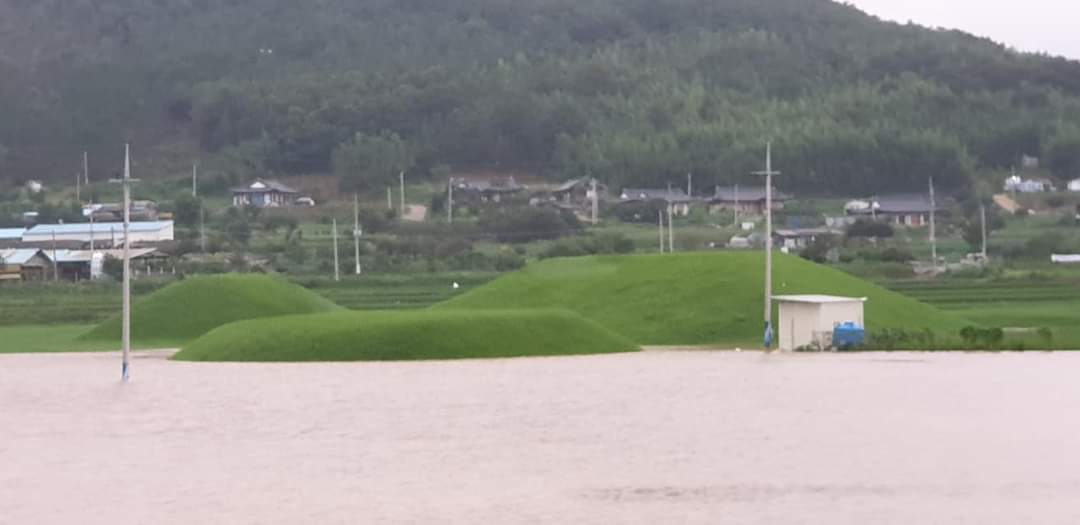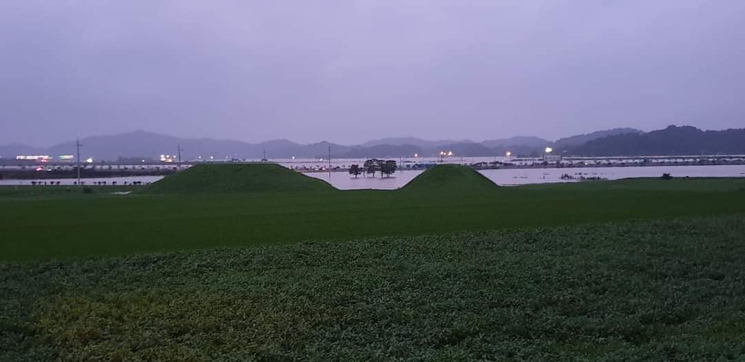 나주 복암리고분군 자락까지 침수되었네요. 이런 일은 처음입니다.