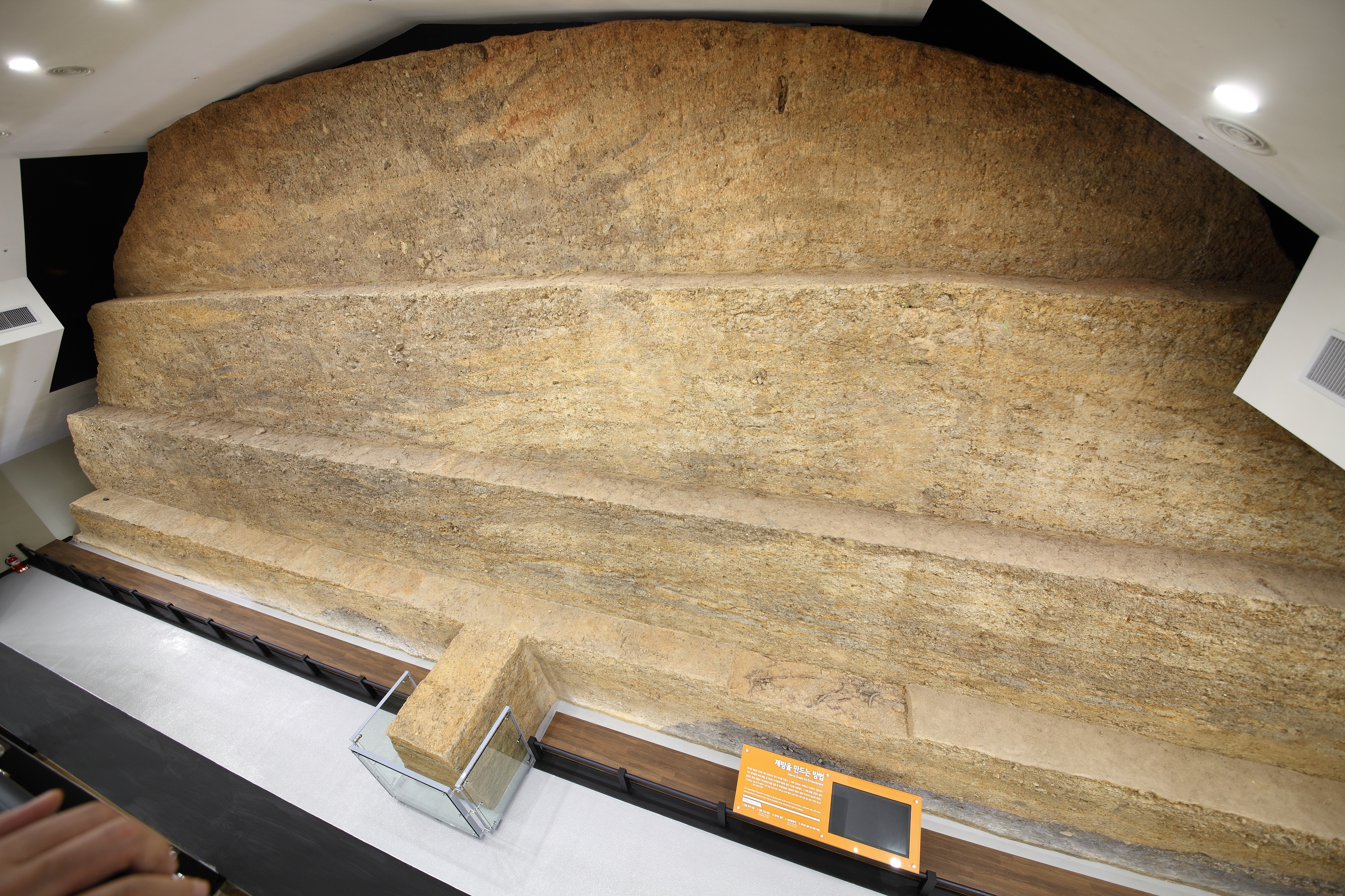 전시관에 들어서면 벽면 전체를 차지하는 제방 단면을 통해 축조 당시 모습을 그대로 볼 수 있다.