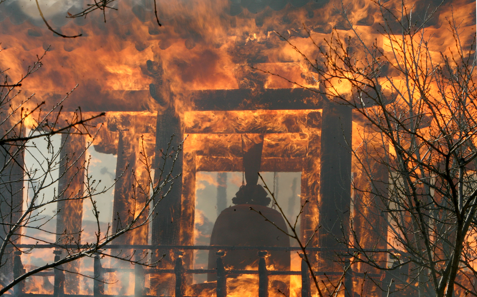 2월11일을 '문화재 방화의 날'로 정하자고 제안했다는 어떤 정치인의 말은 귀를 의심케 한다.2005년 4월5일 식목일 산불로 낙산사가 불탔을 때도 똑같은 말이 나오다가 작대기로 얻어맞은 거북이 머리마냥 쑥 들어가고 말았기 때문이다.뿐만 아니라 여러 모로 숭례문 화재는 낙산사의 재방송이다.