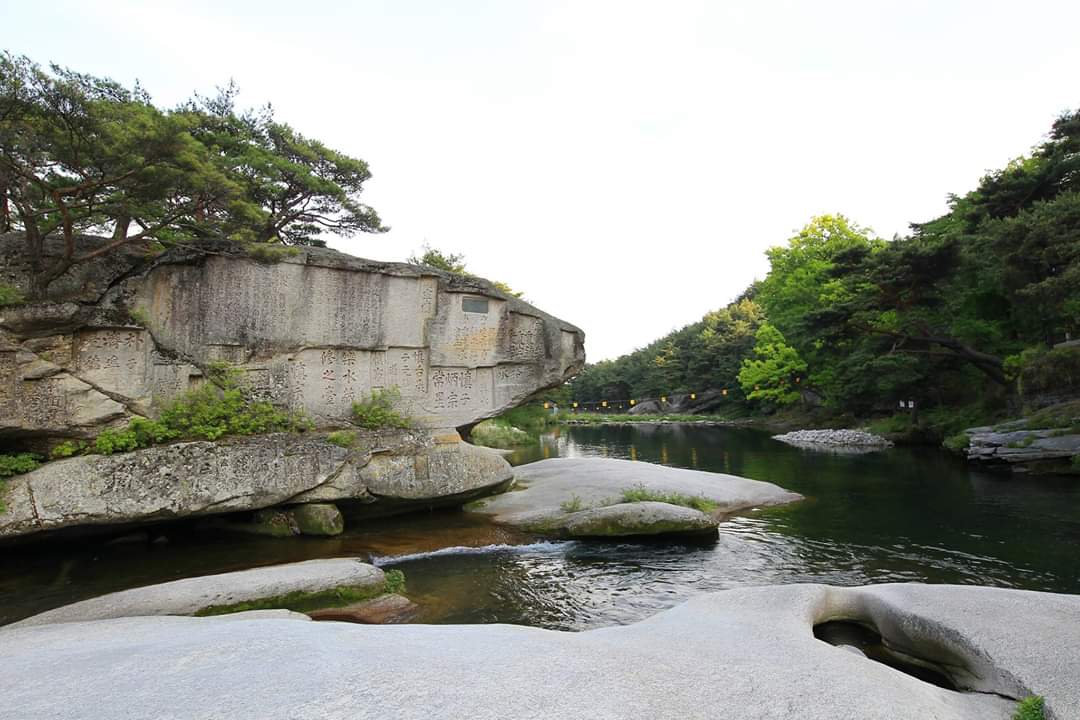 Suseungdae is a prominent granite boulder in a deep valley at Wonhak-dong, one of the three outstanding spots in Anui, acclaimed as the most scenic spot in the Gyeongsang-do region during the Joseon Dynasty (1392-1910). Carved on the rock are two famous poems, one by the eminent Neo-Confucian scholar Yi Hwang (1501-1570) suggesting that the rock be renamed to better represent the beauty of the scenery, and one by Im Hun (1500-1584) welcoming the suggestion. Two pleasure pavilions, Yosujeong Pavilion and Gwansuru Pavilion, stand on either side of the boulder. The place symbolizes the travel culture of Joseon scholars, who pursued self-cultivation through pilgrimages to places of outstanding natural scenery.