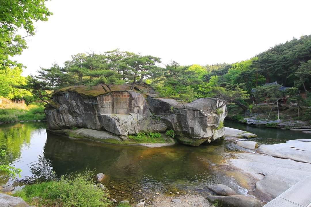 Suseungdae is a prominent granite boulder in a deep valley at Wonhak-dong, one of the three outstanding spots in Anui, acclaimed as the most scenic spot in the Gyeongsang-do region during the Joseon Dynasty (1392-1910). Carved on the rock are two famous poems, one by the eminent Neo-Confucian scholar Yi Hwang (1501-1570) suggesting that the rock be renamed to better represent the beauty of the scenery, and one by Im Hun (1500-1584) welcoming the suggestion. Two pleasure pavilions, Yosujeong Pavilion and Gwansuru Pavilion, stand on either side of the boulder. The place symbolizes the travel culture of Joseon scholars, who pursued self-cultivation through pilgrimages to places of outstanding natural scenery.
