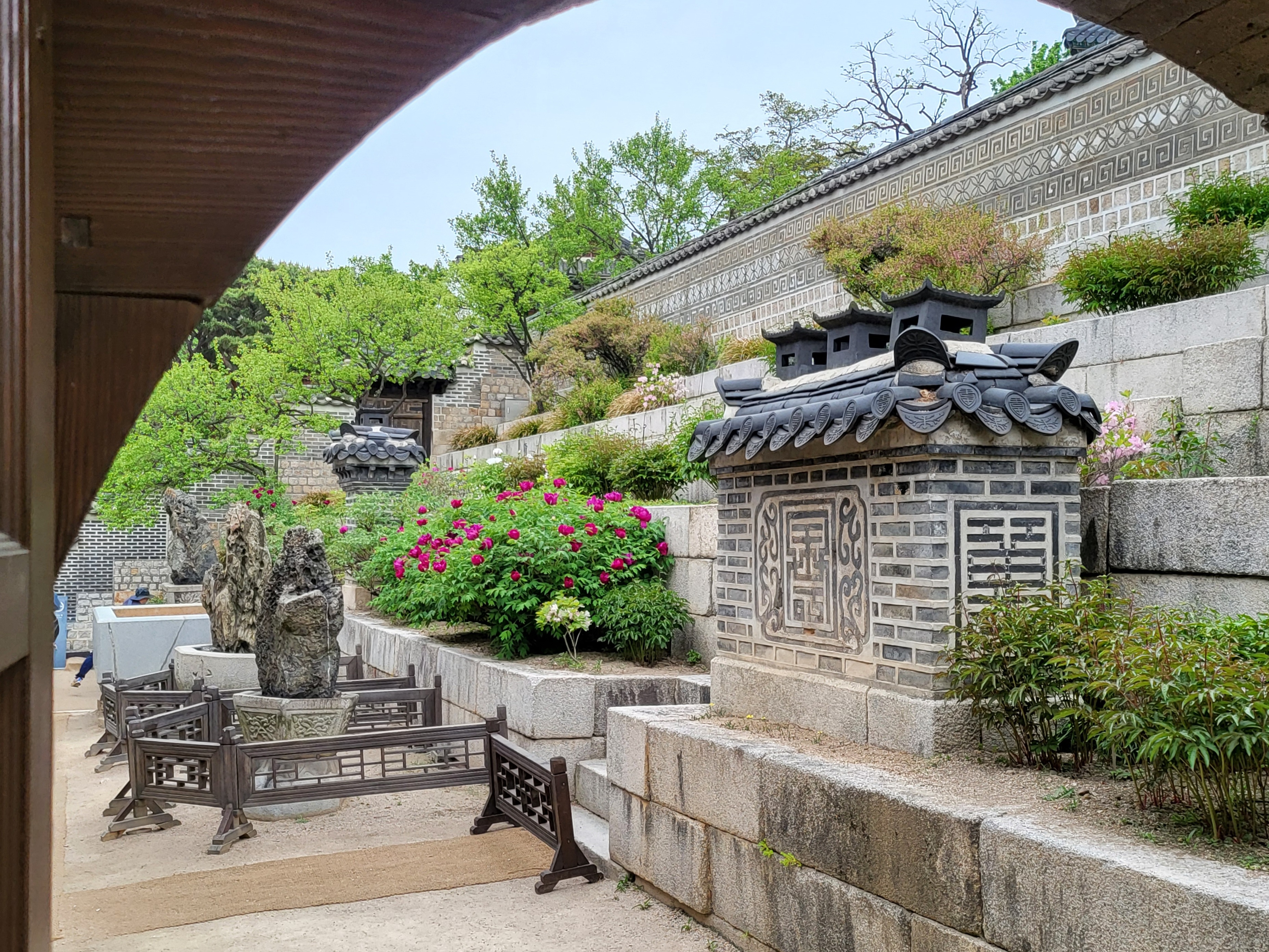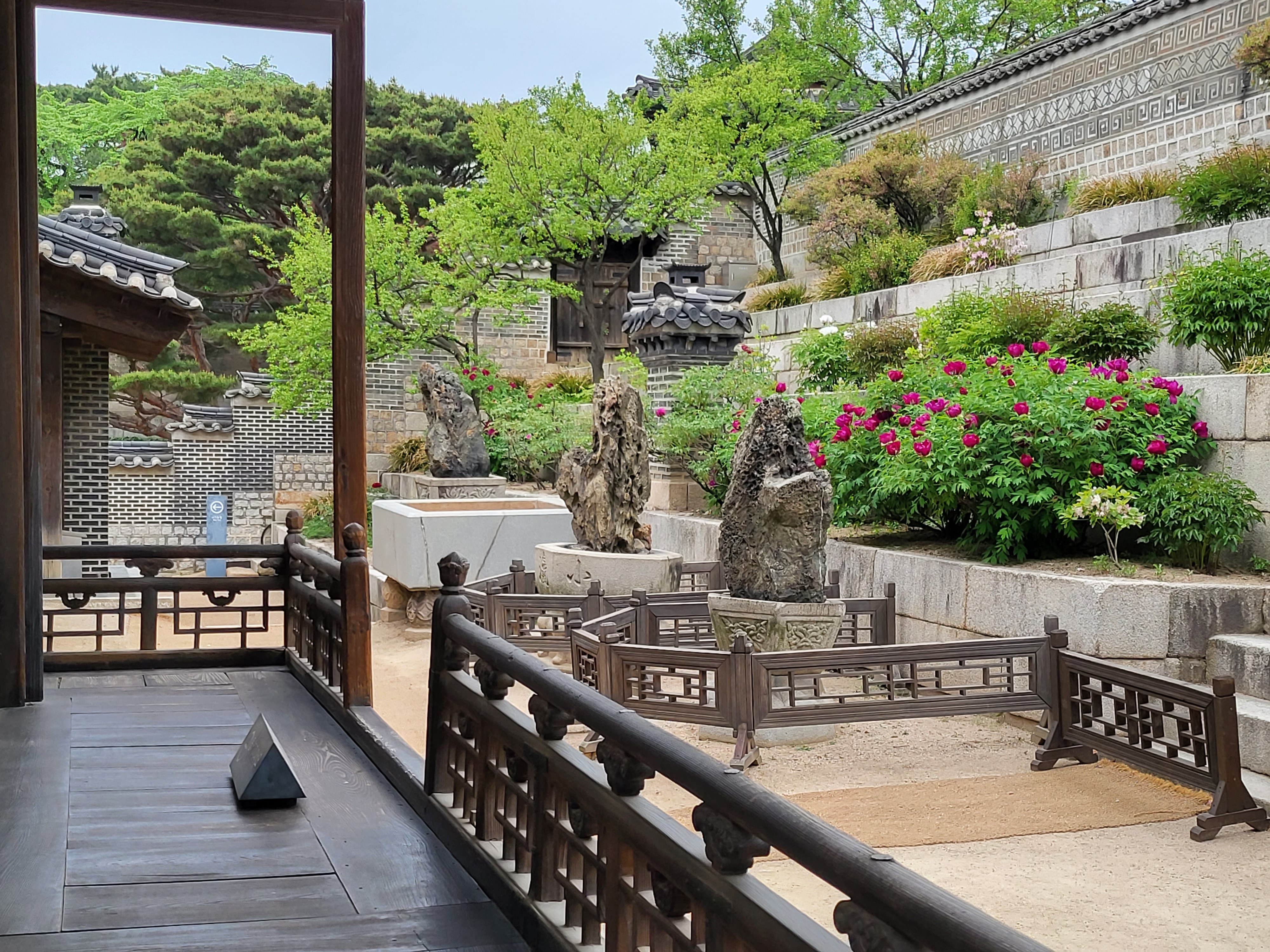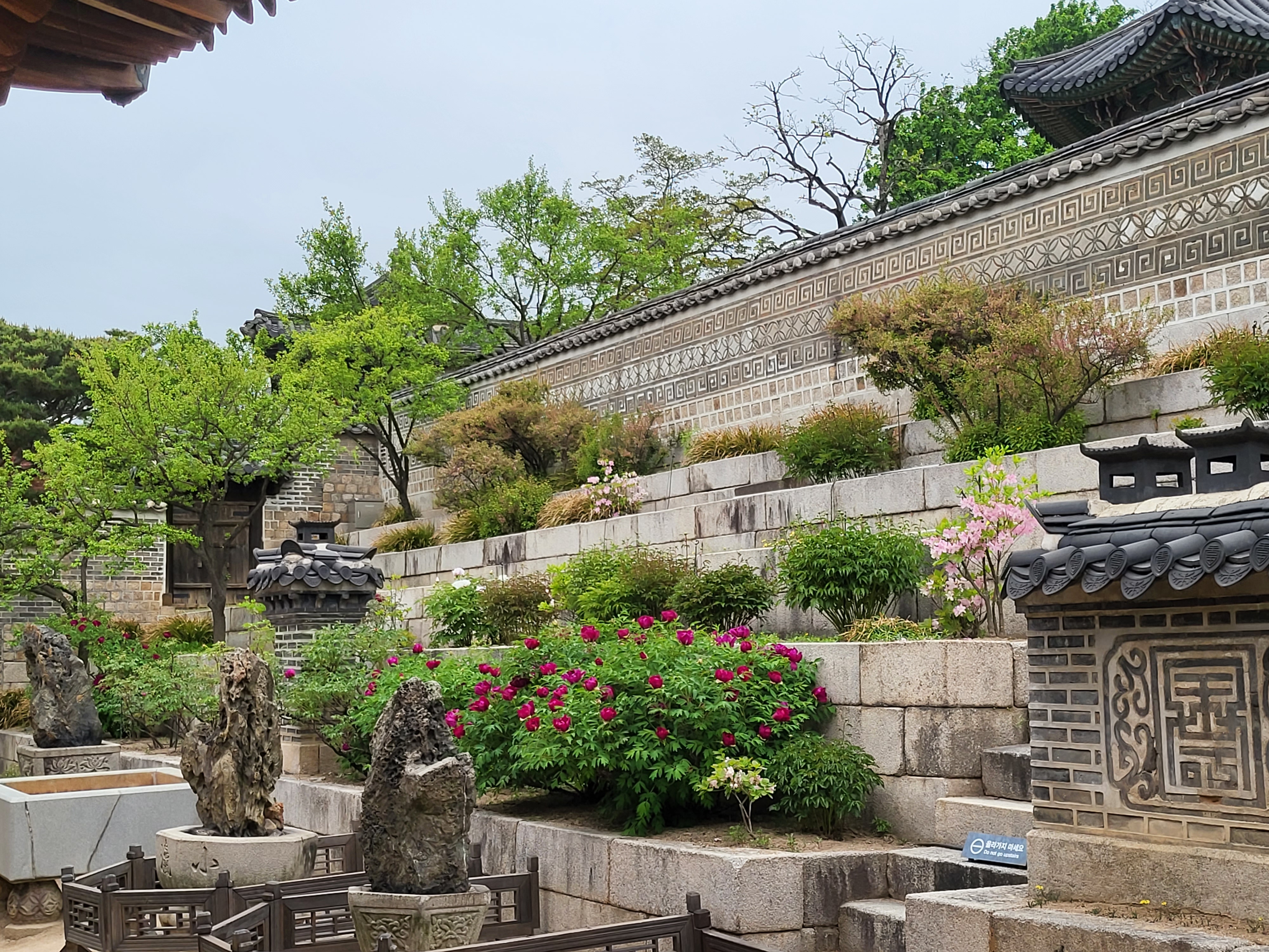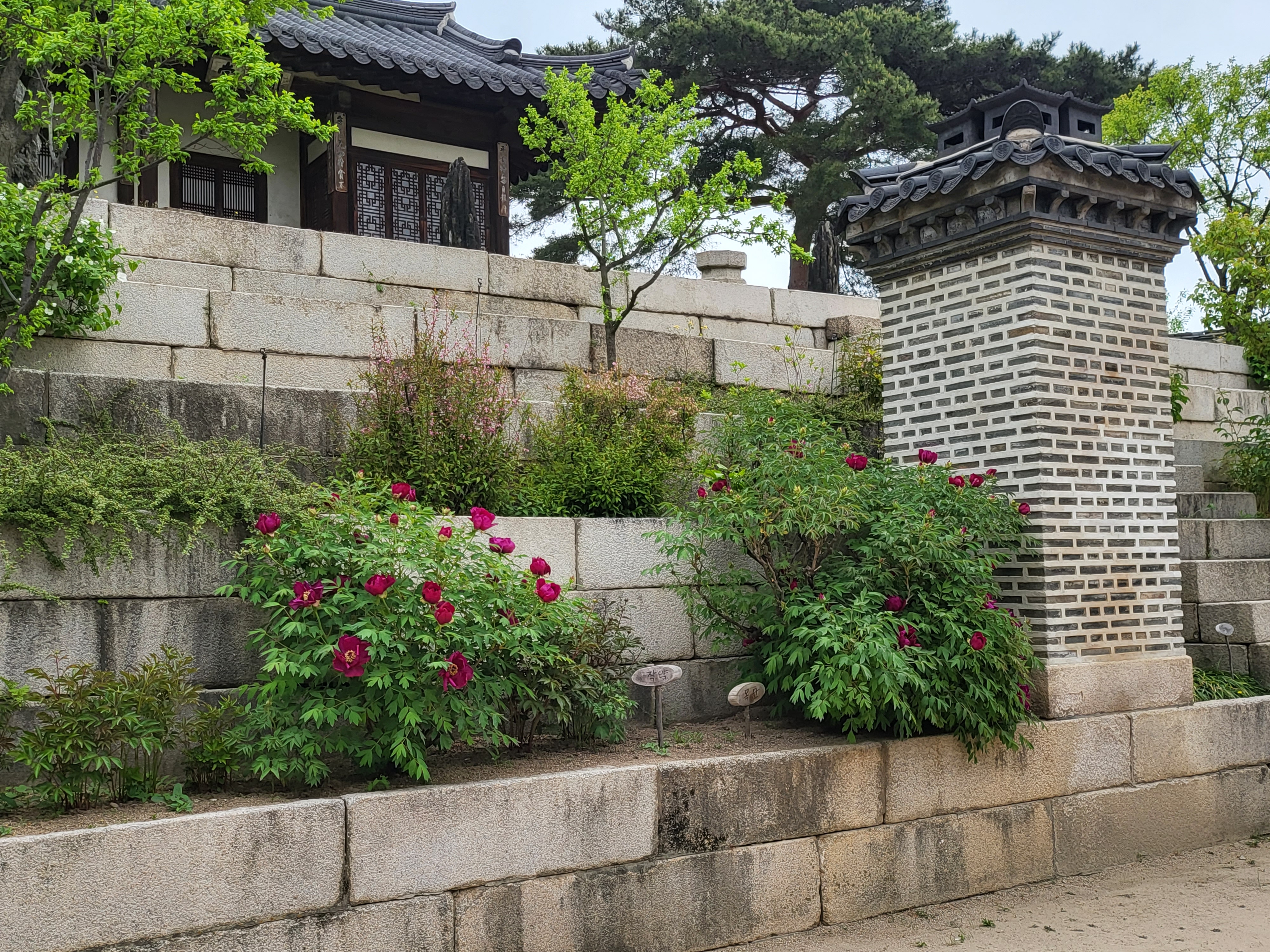 꽃은 한옥, 특히 기와건물이나 기와담장 병풍으로 두를 때 특히 아웃스탠딩하며