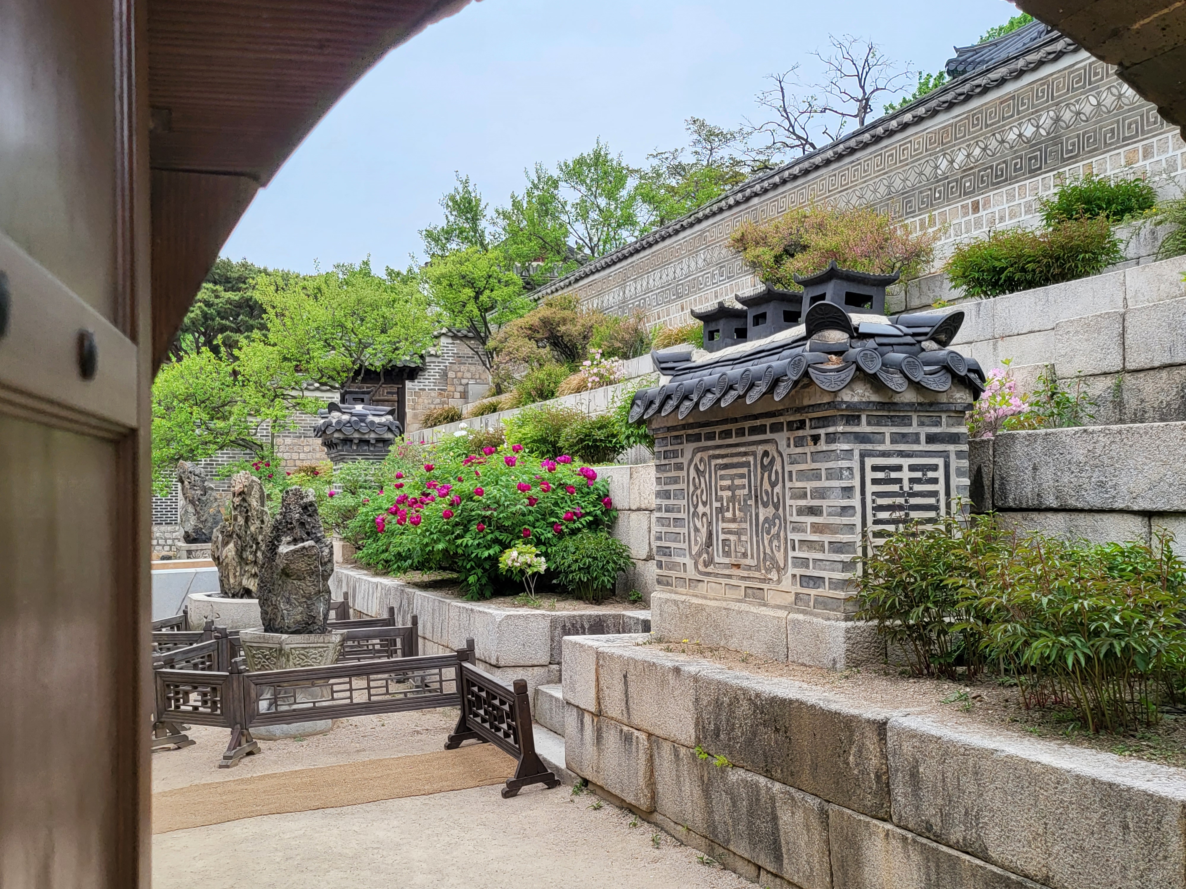 꽃은 한옥, 특히 기와건물이나 기와담장 병풍으로 두를 때 특히 아웃스탠딩하며