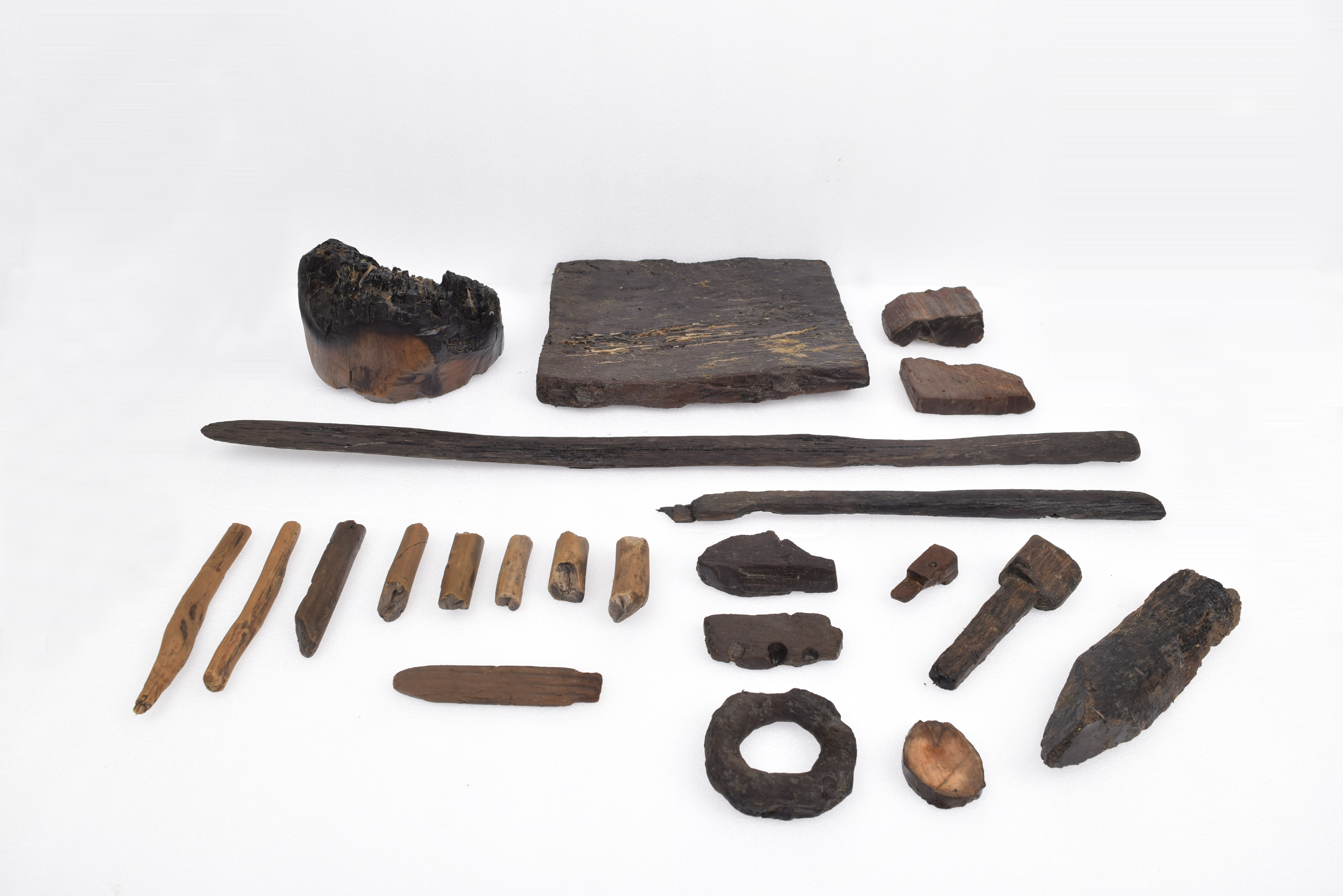 ○ 목제유물로 묵서(墨書)가 쓰인 목간·문 손잡이·말뚝·목제 빗 등 출토, 곰·소·자라·두루미·개뼈 등 다양한 종류의 동물유체를 비롯하여 산성 내 철 생산의 증거물인 슬래그와 노벽편 출토, 곰 유체는 경주 월성 등 신라유적에서 주로 출토