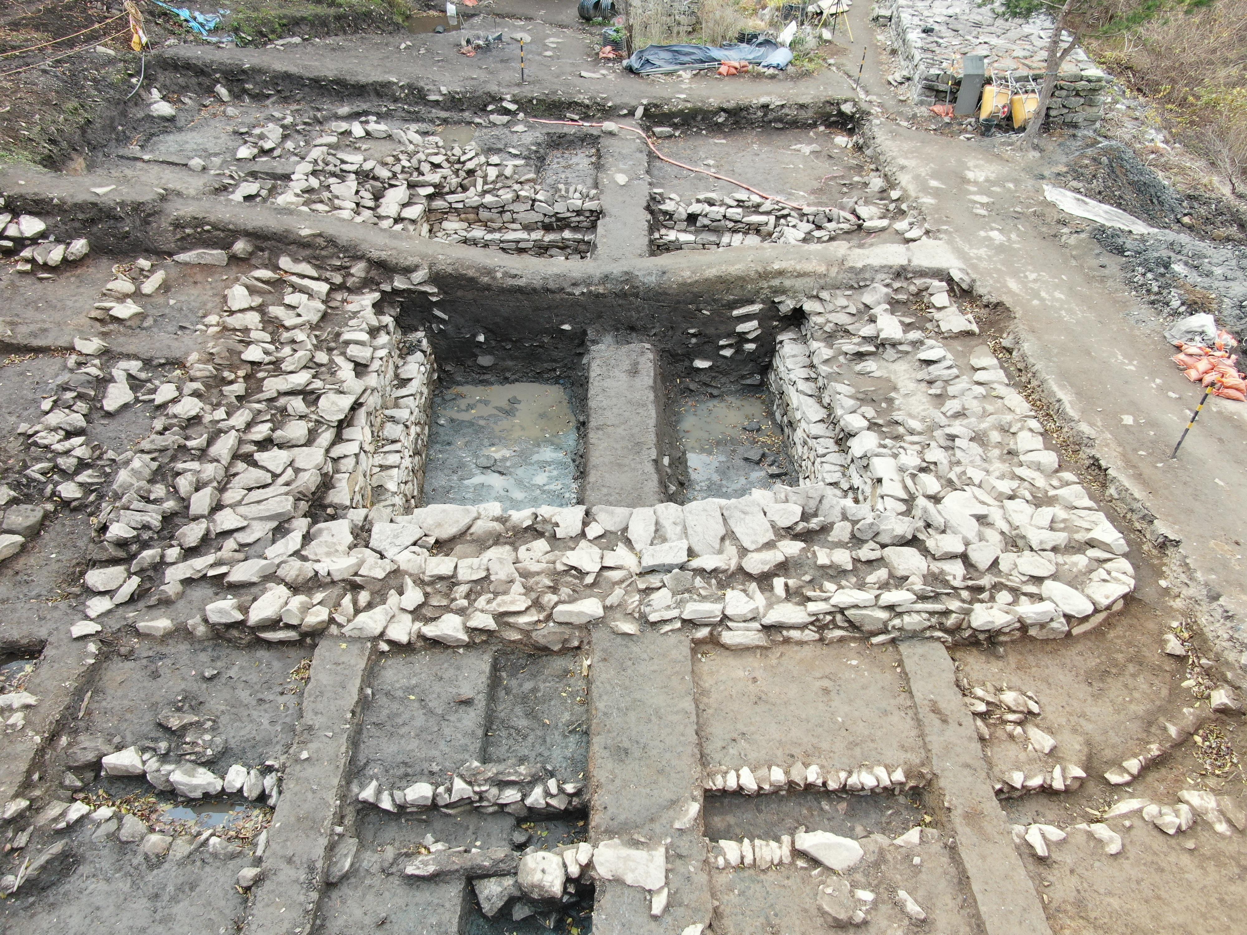 산성 내 북쪽 평탄지 시굴조사, 집수시설 존재 확인 |