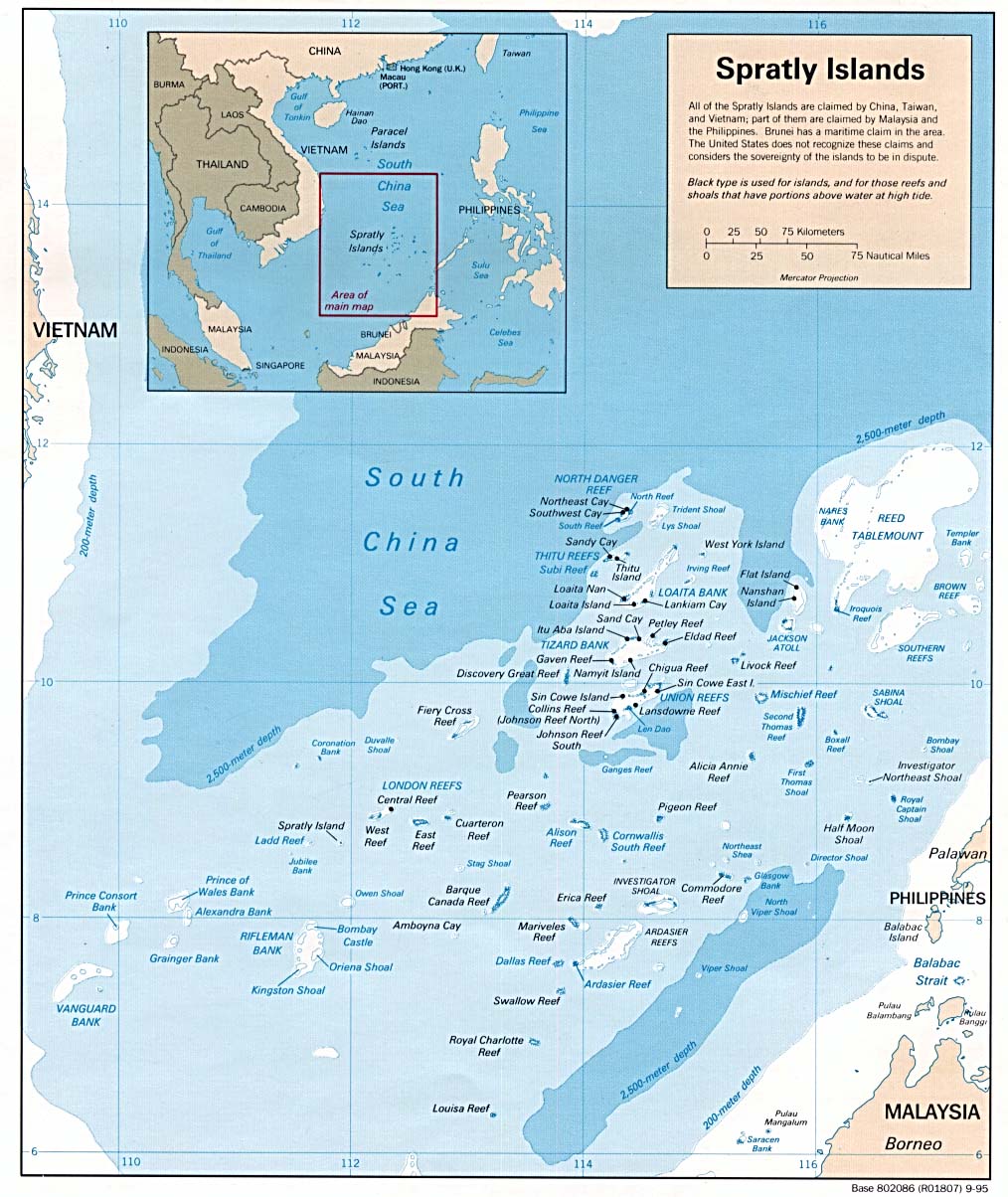 이게 무대가 되는 데가 이른바 남중국해 열도 중에서도 스프래틀리 열도 Spratly Islands라는 데라