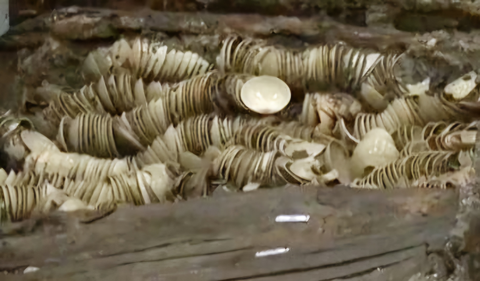 네번째 미스터러는 침몰 시점이라, 배에서는 북송 말기부터 남송 초기에 이르는 다양한 시대 동전이 발견되며 심지어 한나라 초기 동전도 있다.