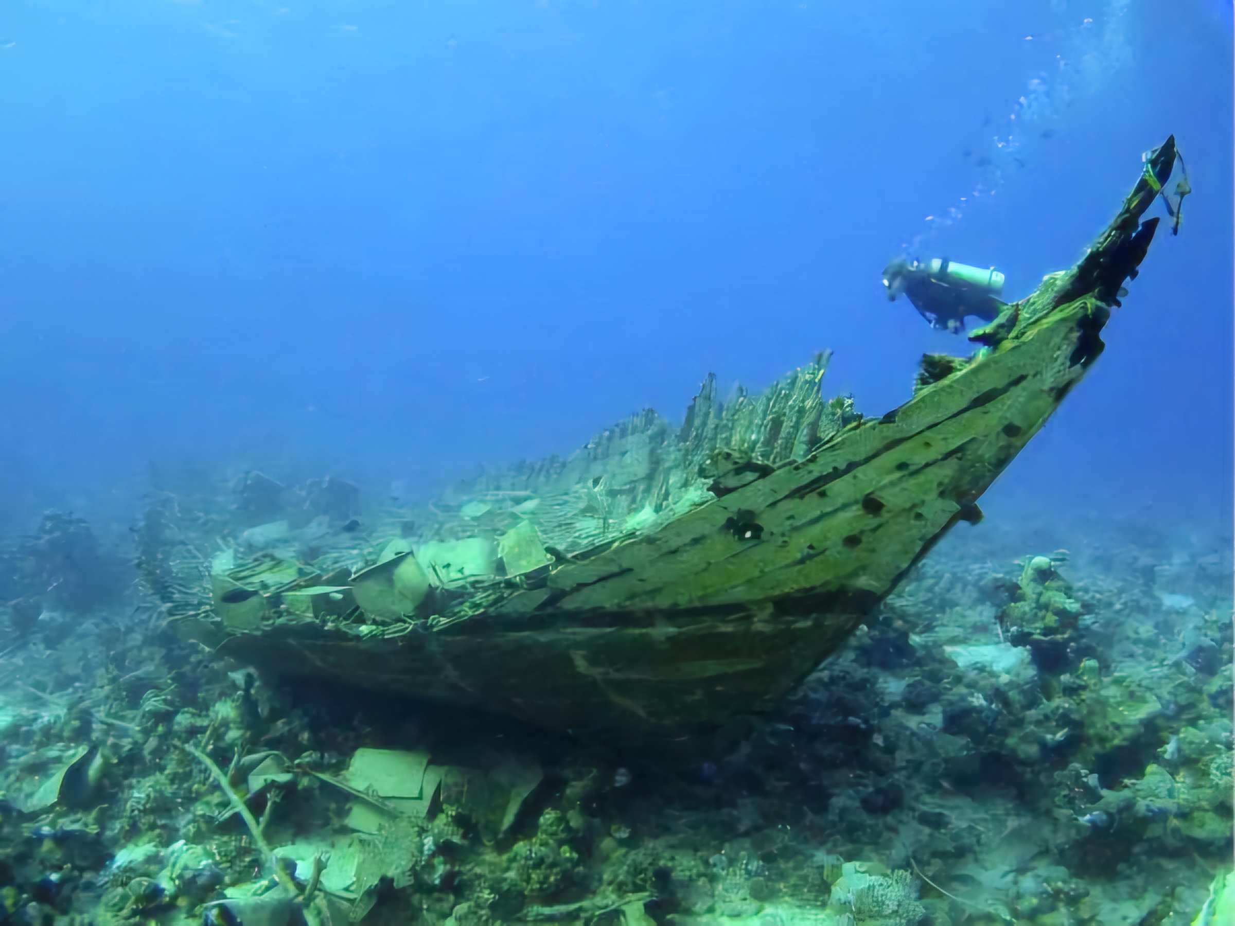 이 난파선은 수심 23m 지점에 두께 2m가량 되는 뻘에 묻혀 있었다.