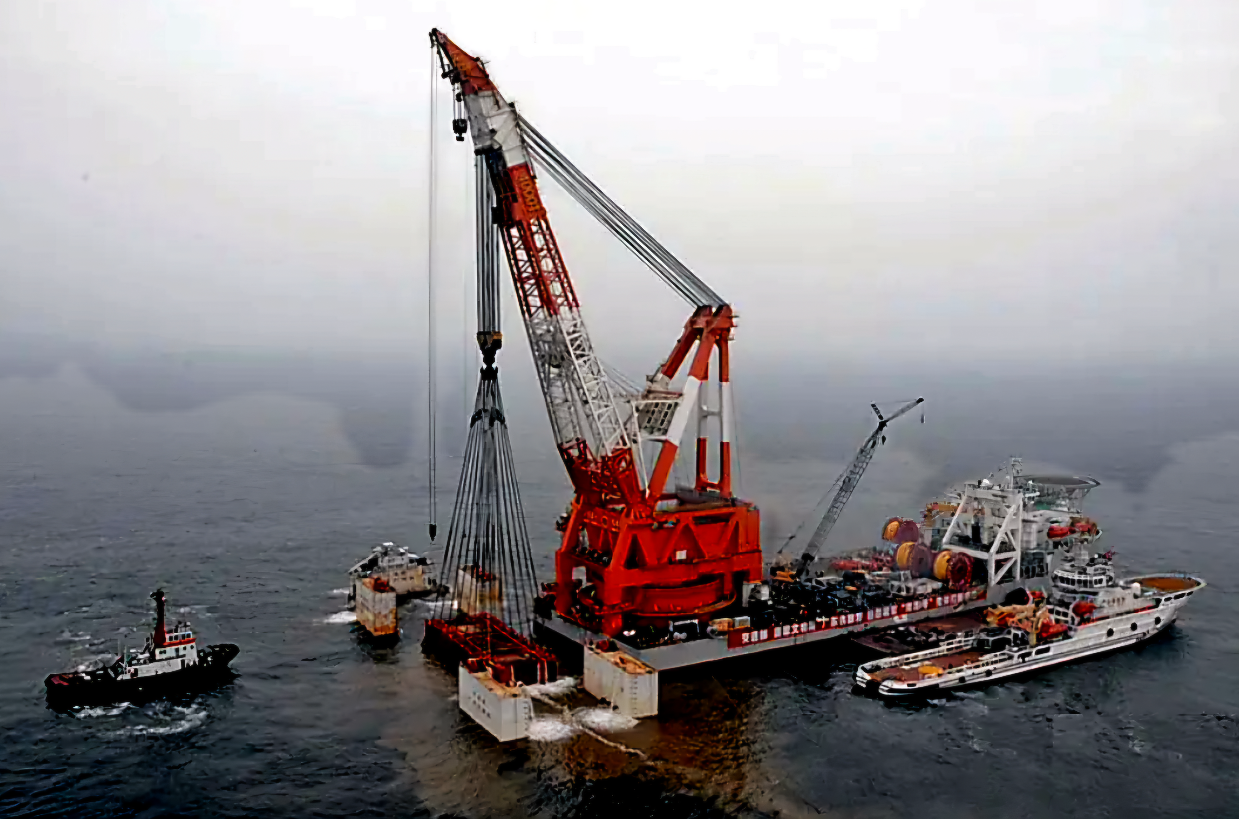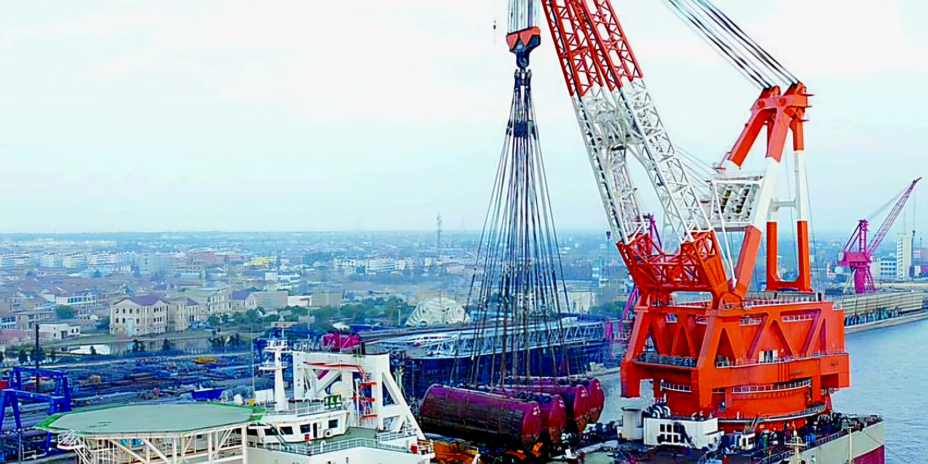 이에 동원한 컨테이너선은 4천톤급 크레인선 화천룡华天龙