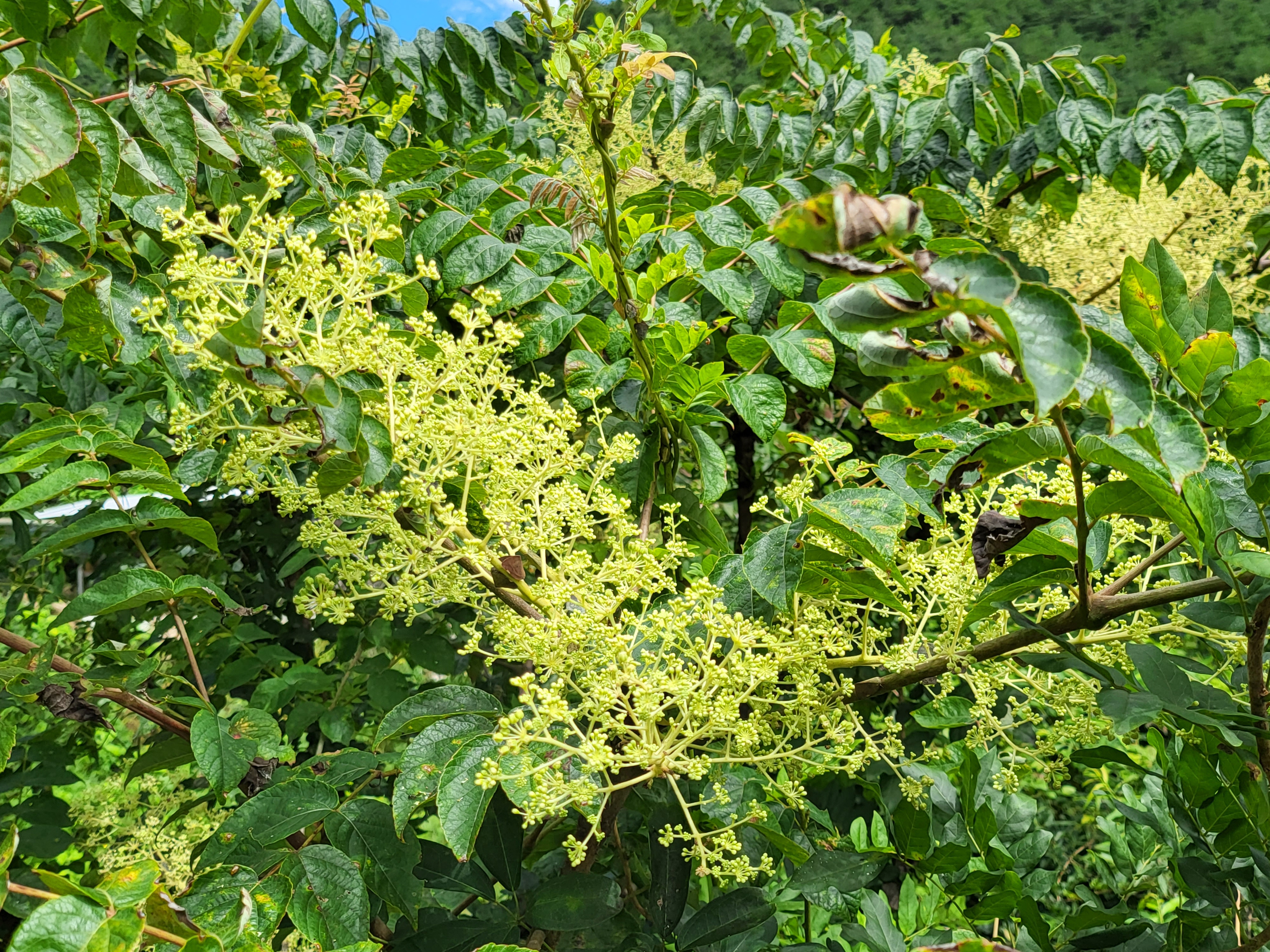 중간중간 쉬어가다 산소 밭두렁을 보니 두릅꽃이 만발한다.