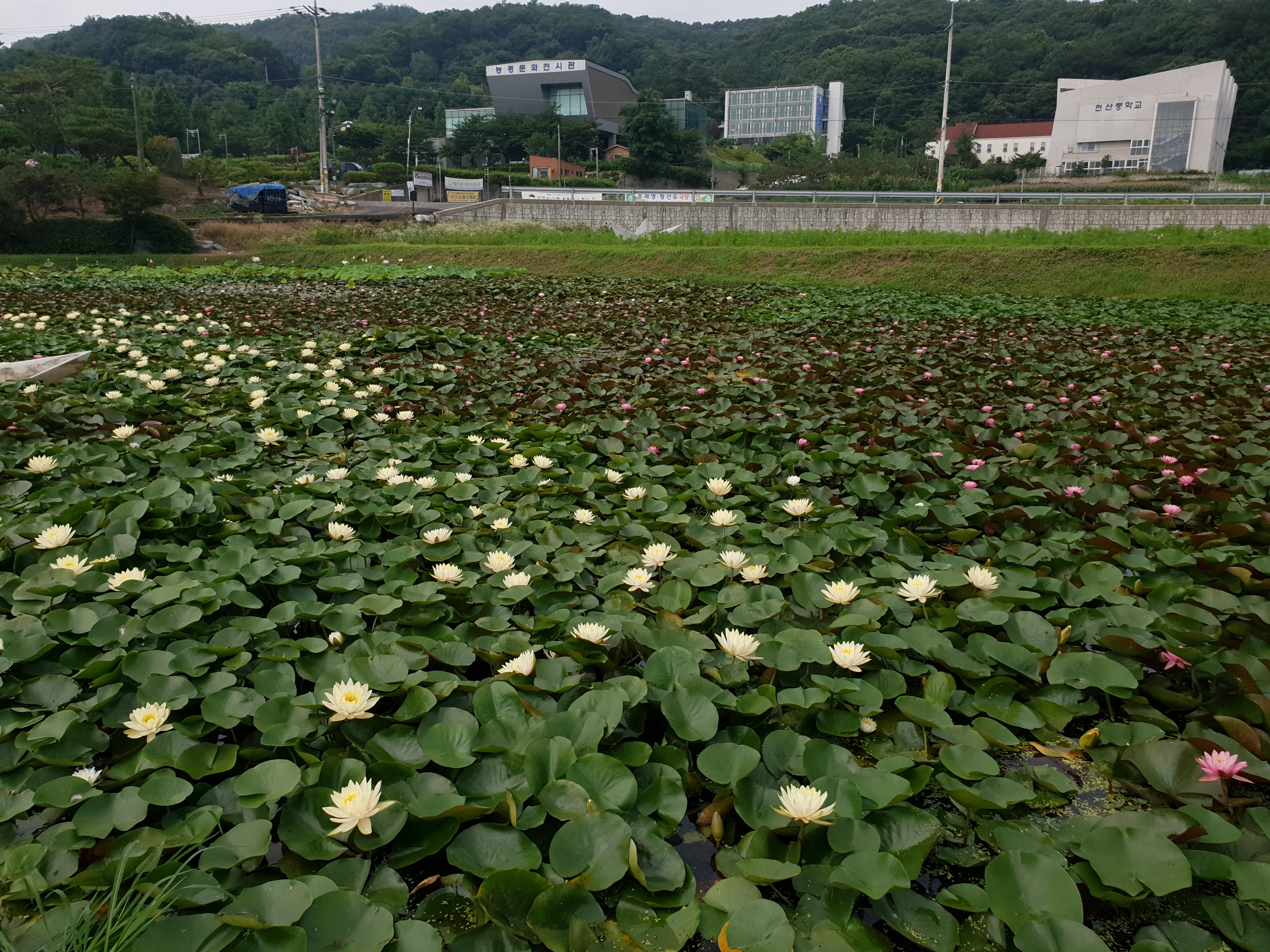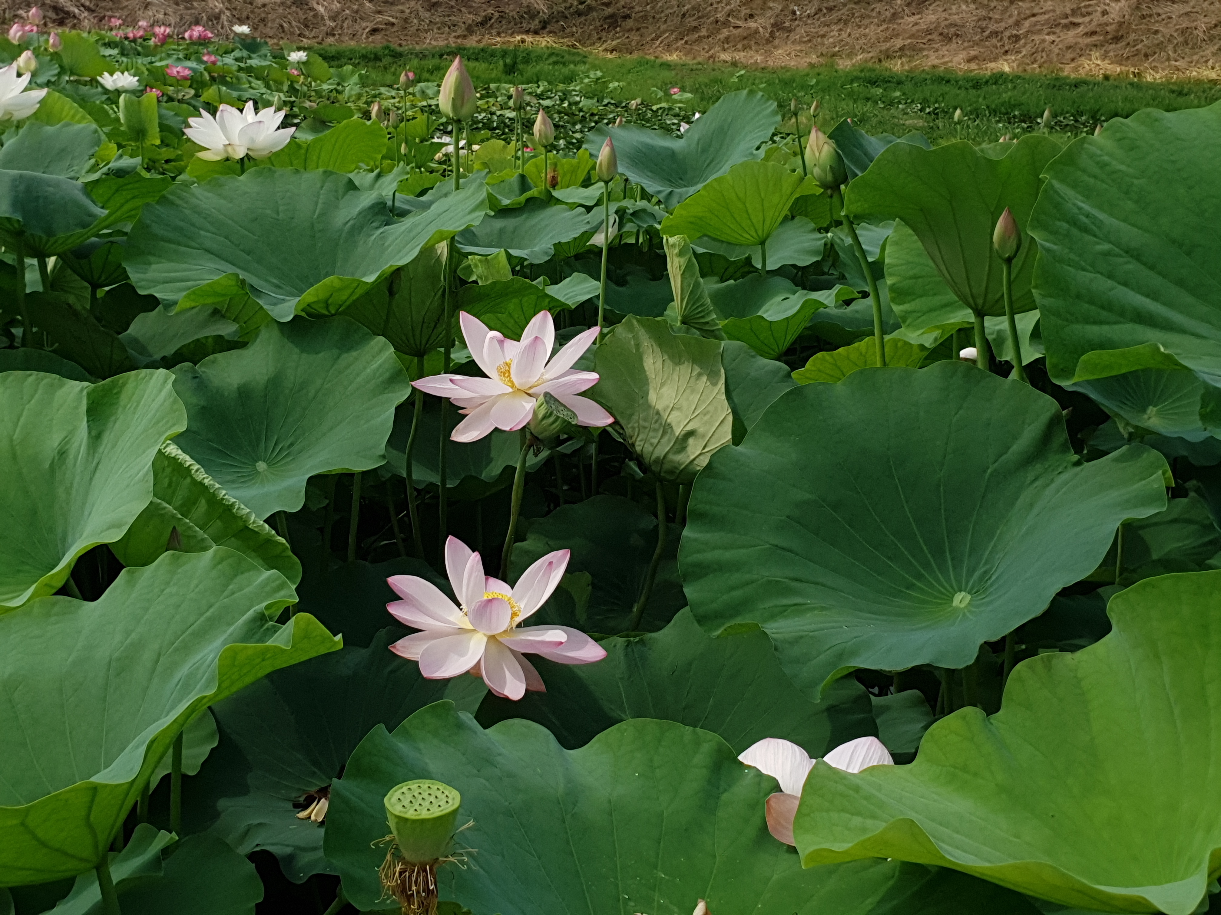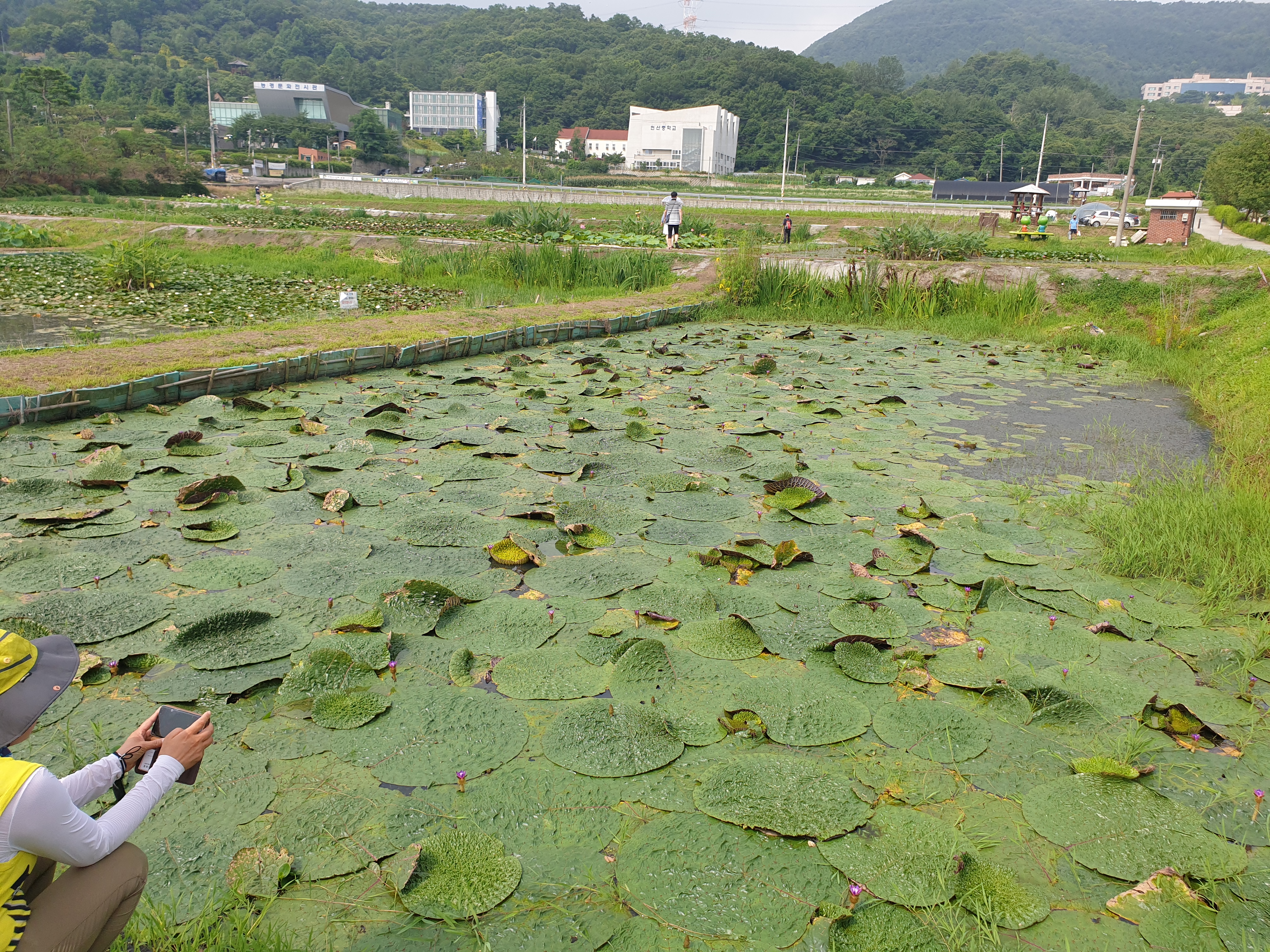 이 넙떼데 수생작물은 이름이 뭐라더라? 오늘 들었는데 또 까먹었지만, 이쪽은 물량공세라, 몇 포기씩 남겨놓고는 나머지는 다 주어 뽑아버리는 세미원이나 관곡지와는 또 사뭇 다르다.