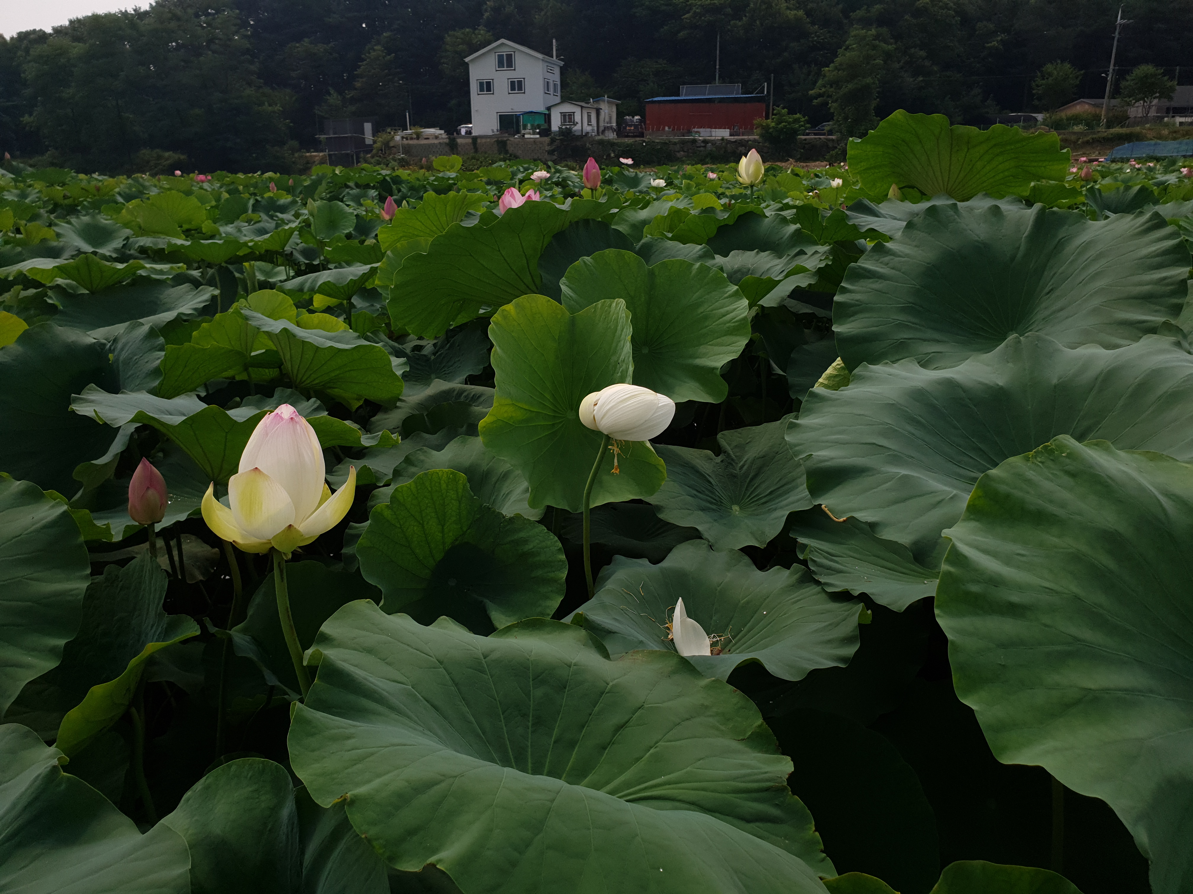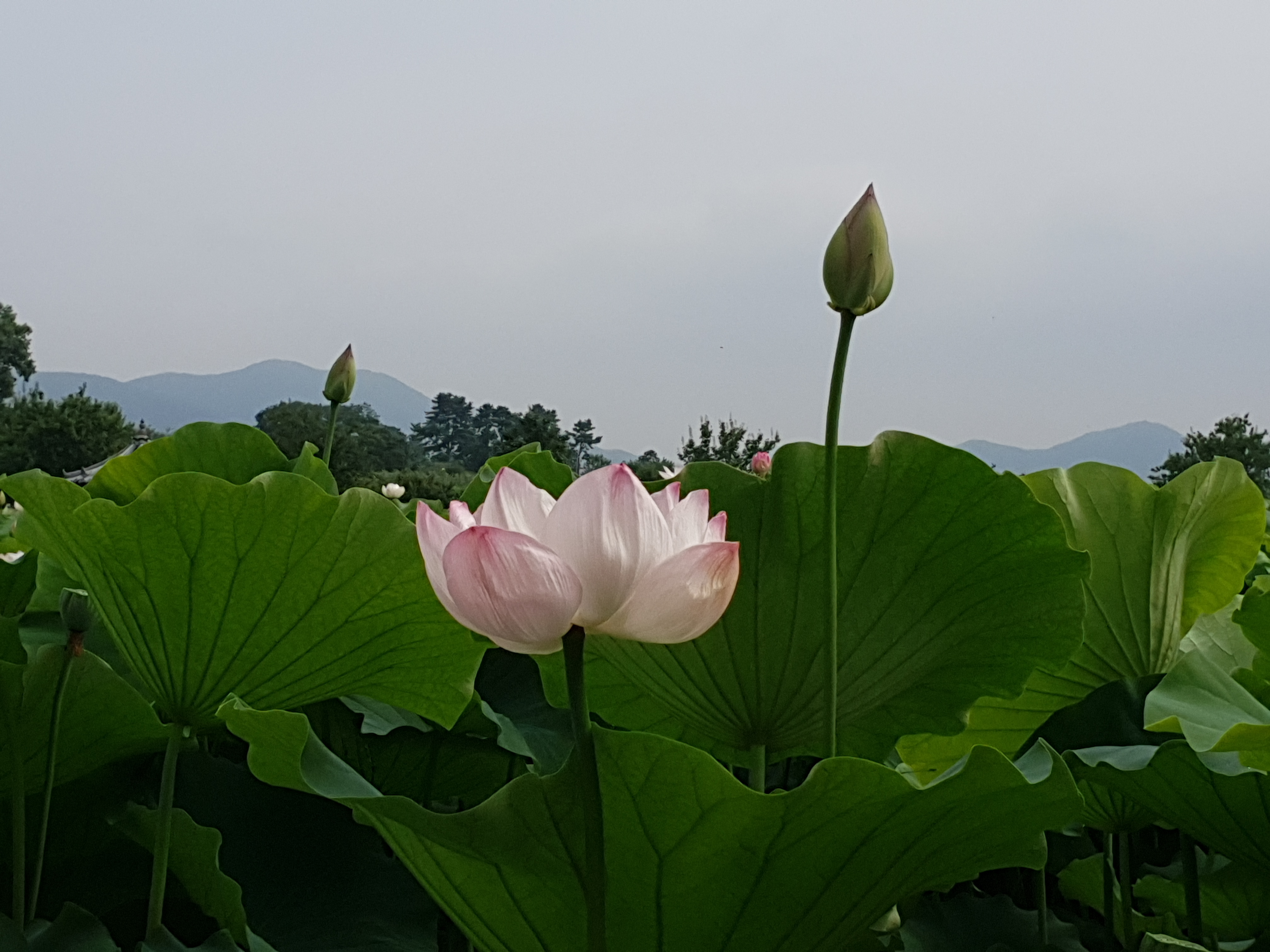 다른 데서는 이미 한참 전에 만개 소식을 전한 연꽃이 이곳에서는 이제 막 시작이다.
