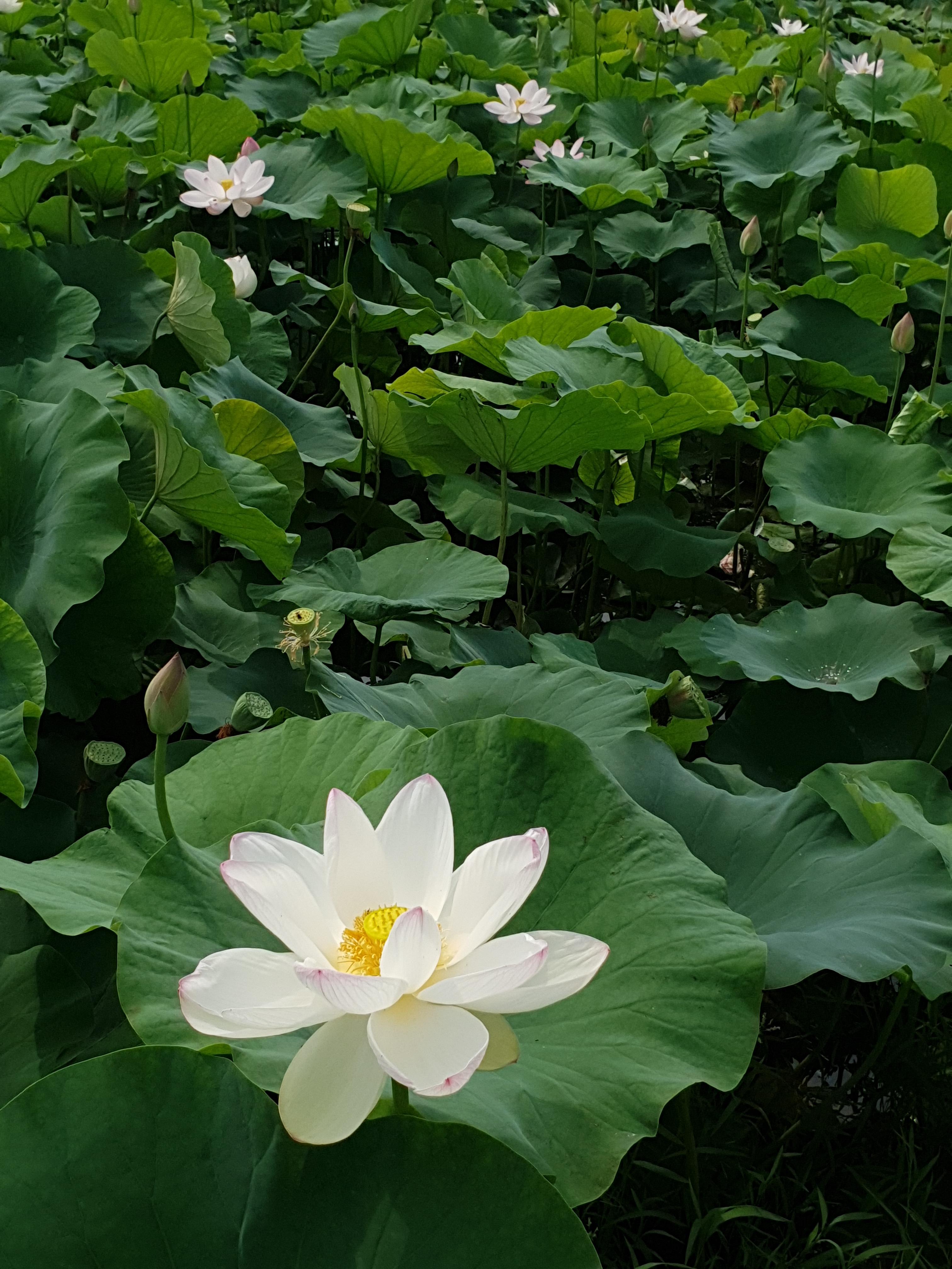 이 넙떼데 수생작물은 이름이 뭐라더라? 오늘 들었는데 또 까먹었지만, 이쪽은 물량공세라, 몇 포기씩 남겨놓고는 나머지는 다 주어 뽑아버리는 세미원이나 관곡지와는 또 사뭇 다르다.
