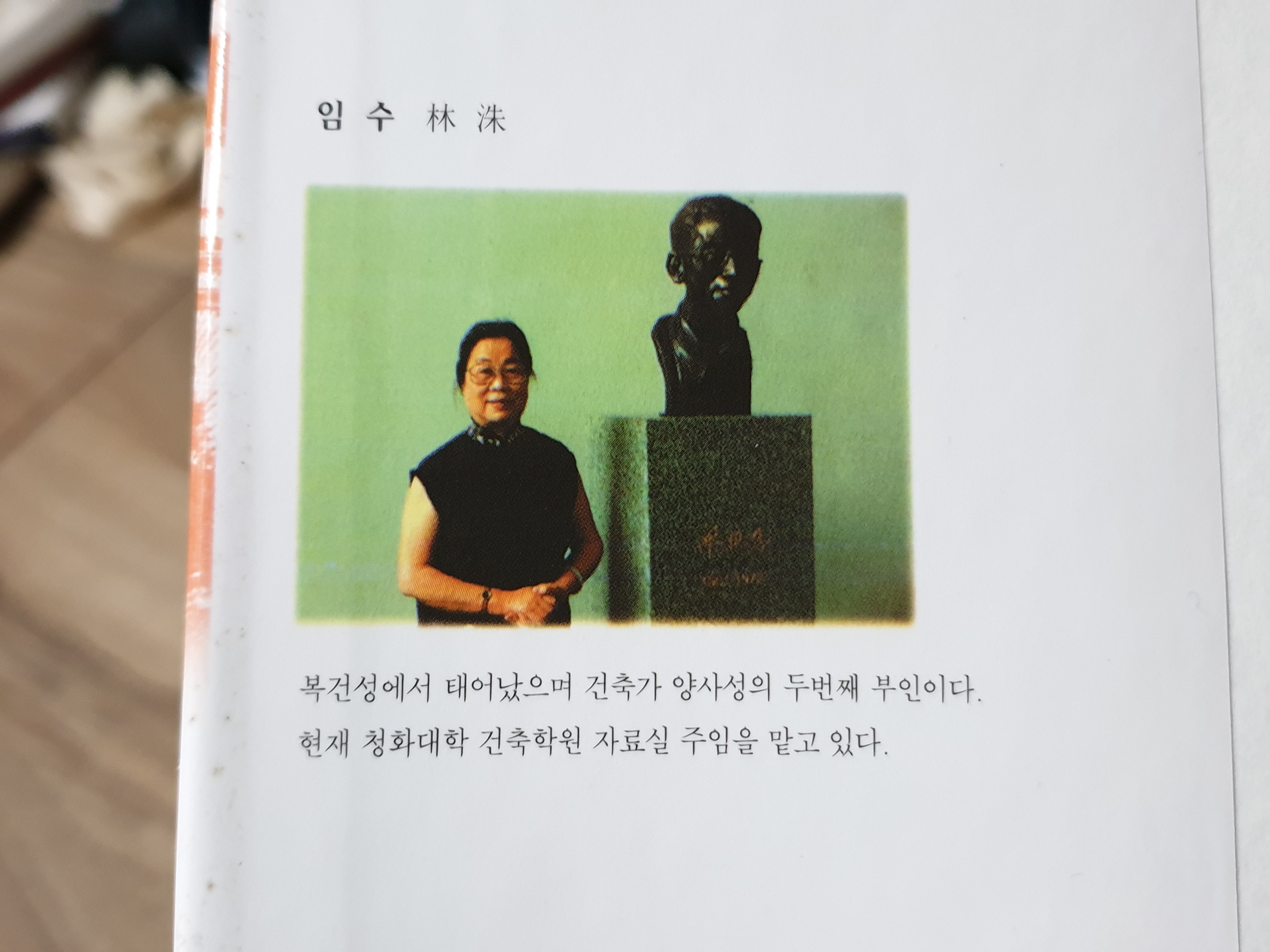 원저 저자는 임수林洙라는 사람인데, 저 초판 표지에 실린 저자 소개는 저러해서 양사성 둘째 마누라라 하며, 이 번역본 초판 발간당시에는 청화대학 건축학원 자료실 주임이라 한다. 그렇다면 그때도 살아있었다는 것인데, 내심으로는 왜 두 번째? 첫째를 쫓아내고 둘째? 아니면 첫째가 죽고서 두번째 부인?