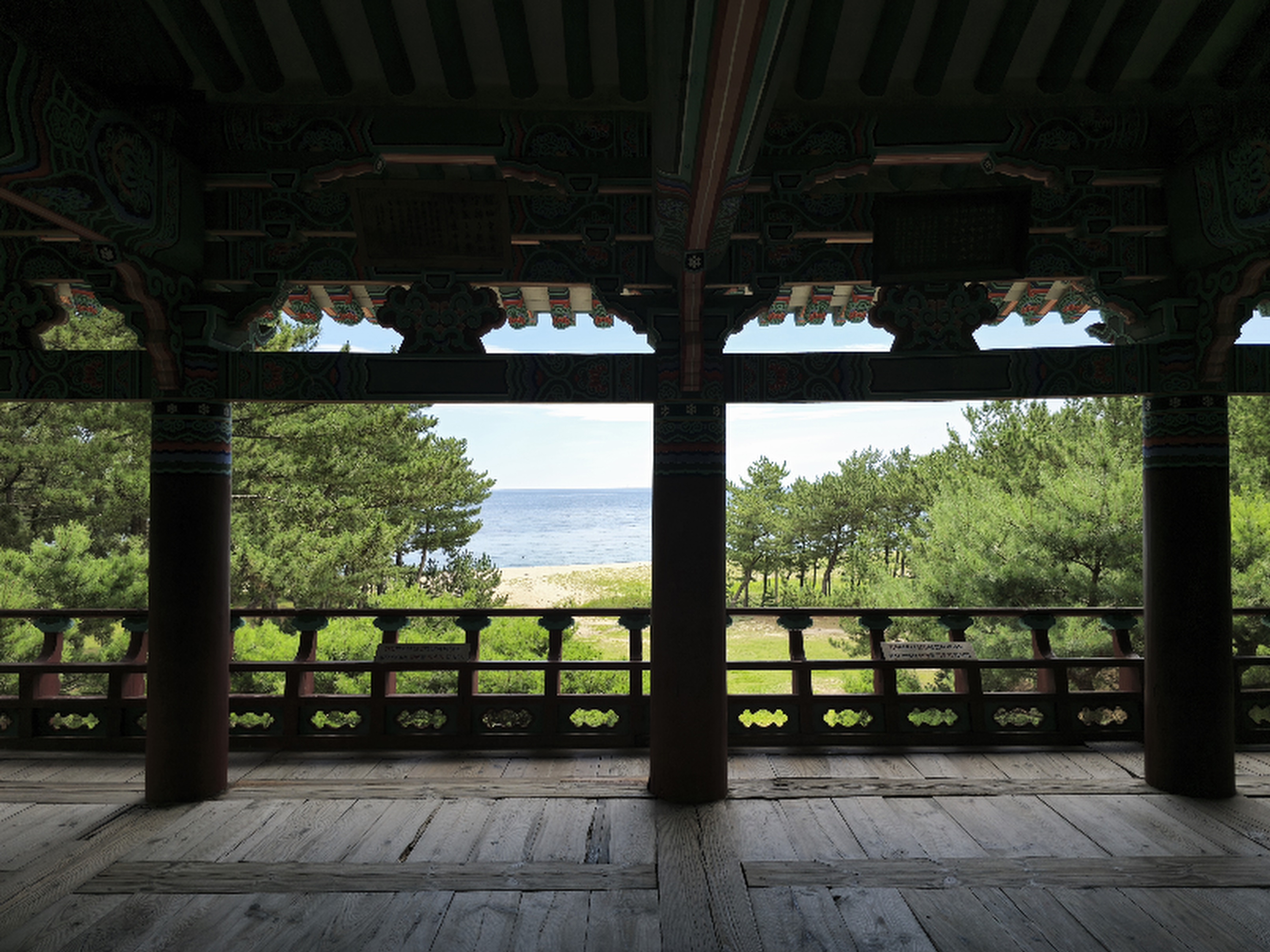 동해를 조망하는 누정 울진 월송정은 관동팔경의 하나로 조선시대 강원도 관찰사 박원종이 연산군 때 창건하였다고 전한다.