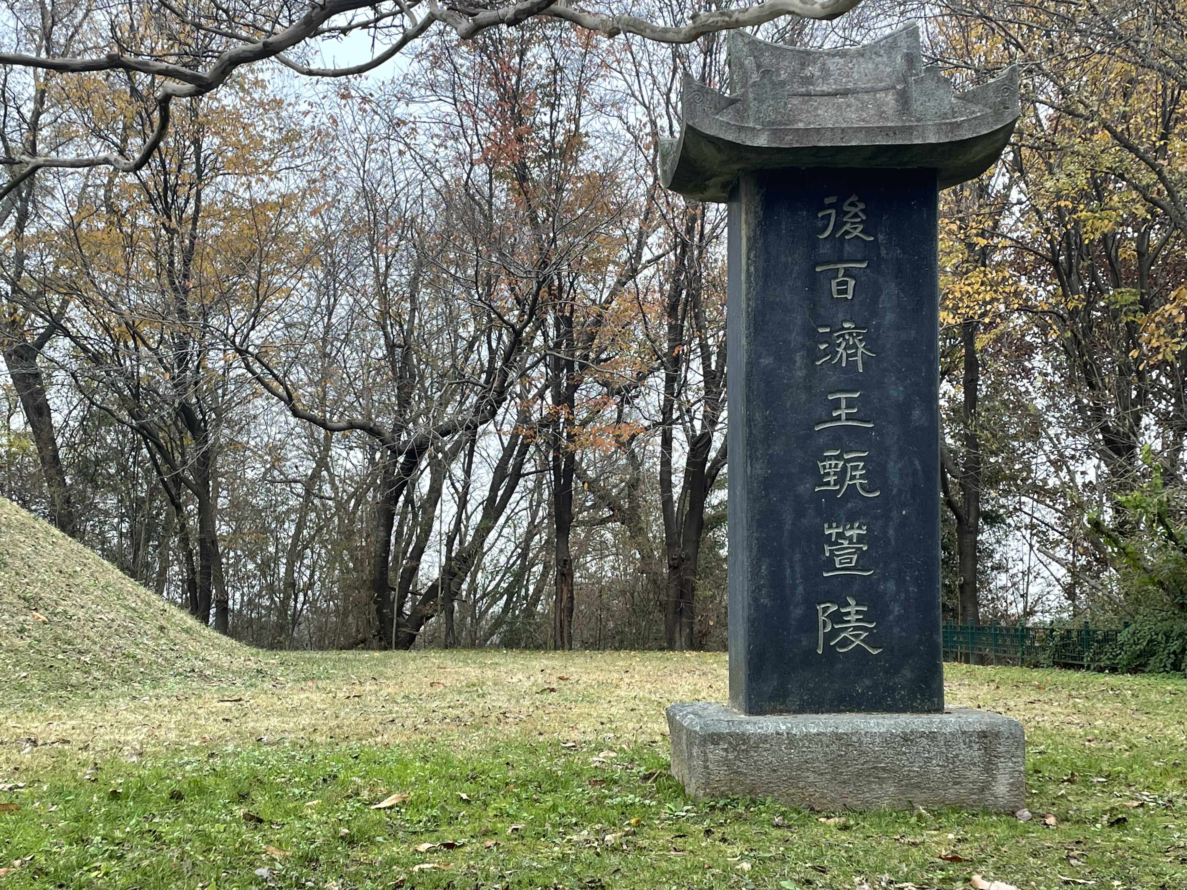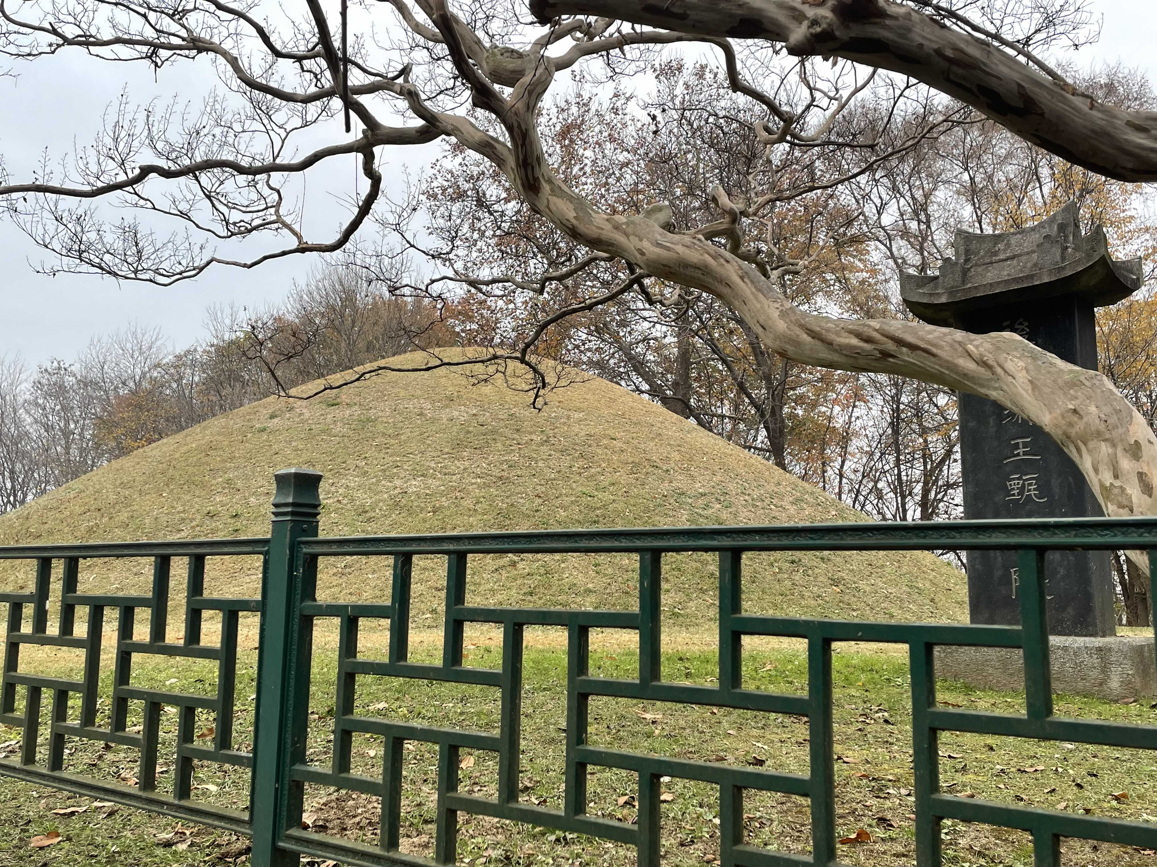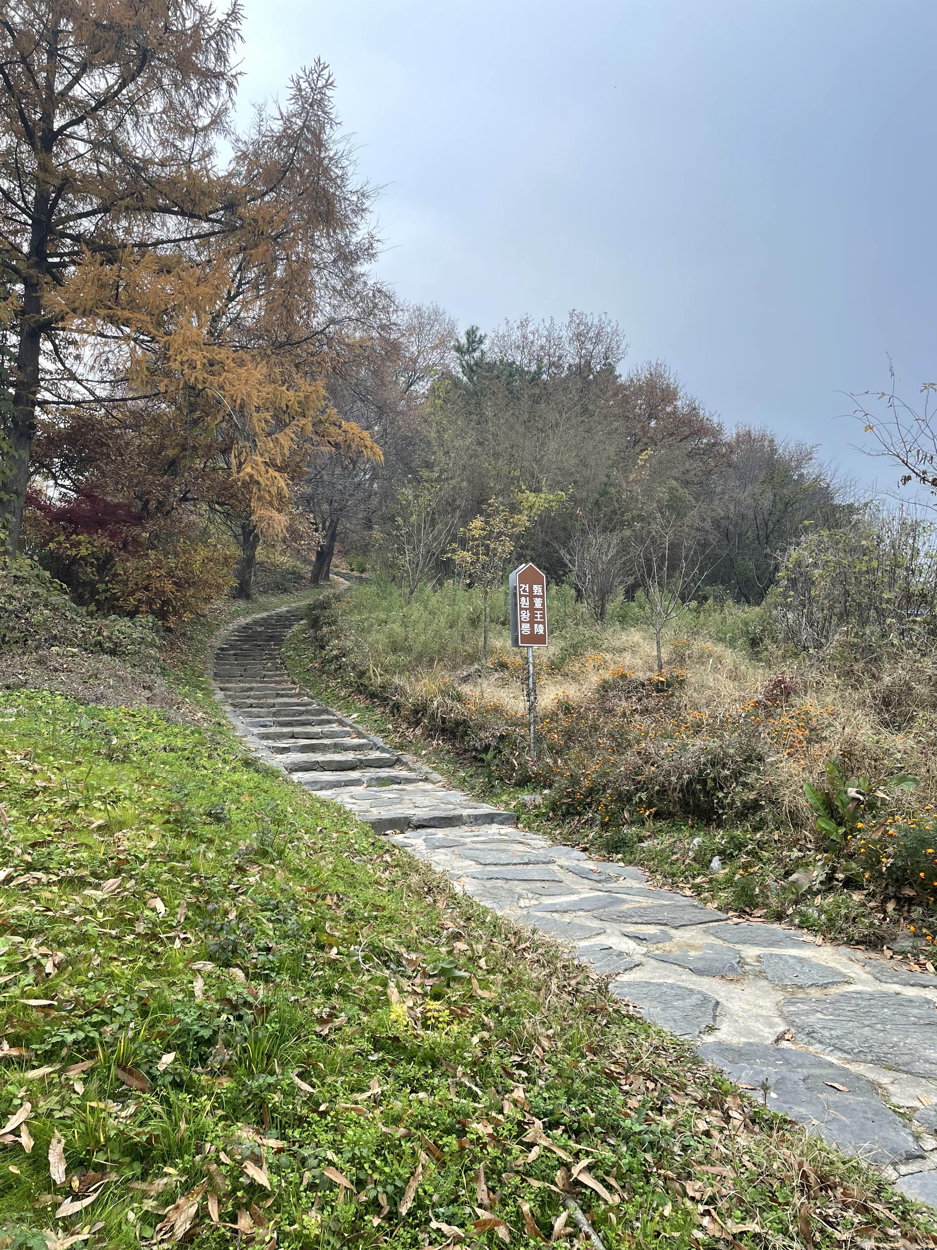 앙상한 나뭇가지와 추적추적 낙엽 사이로 보니, 왠지 견훤릉이 더 쓸쓸해 보입니다.
