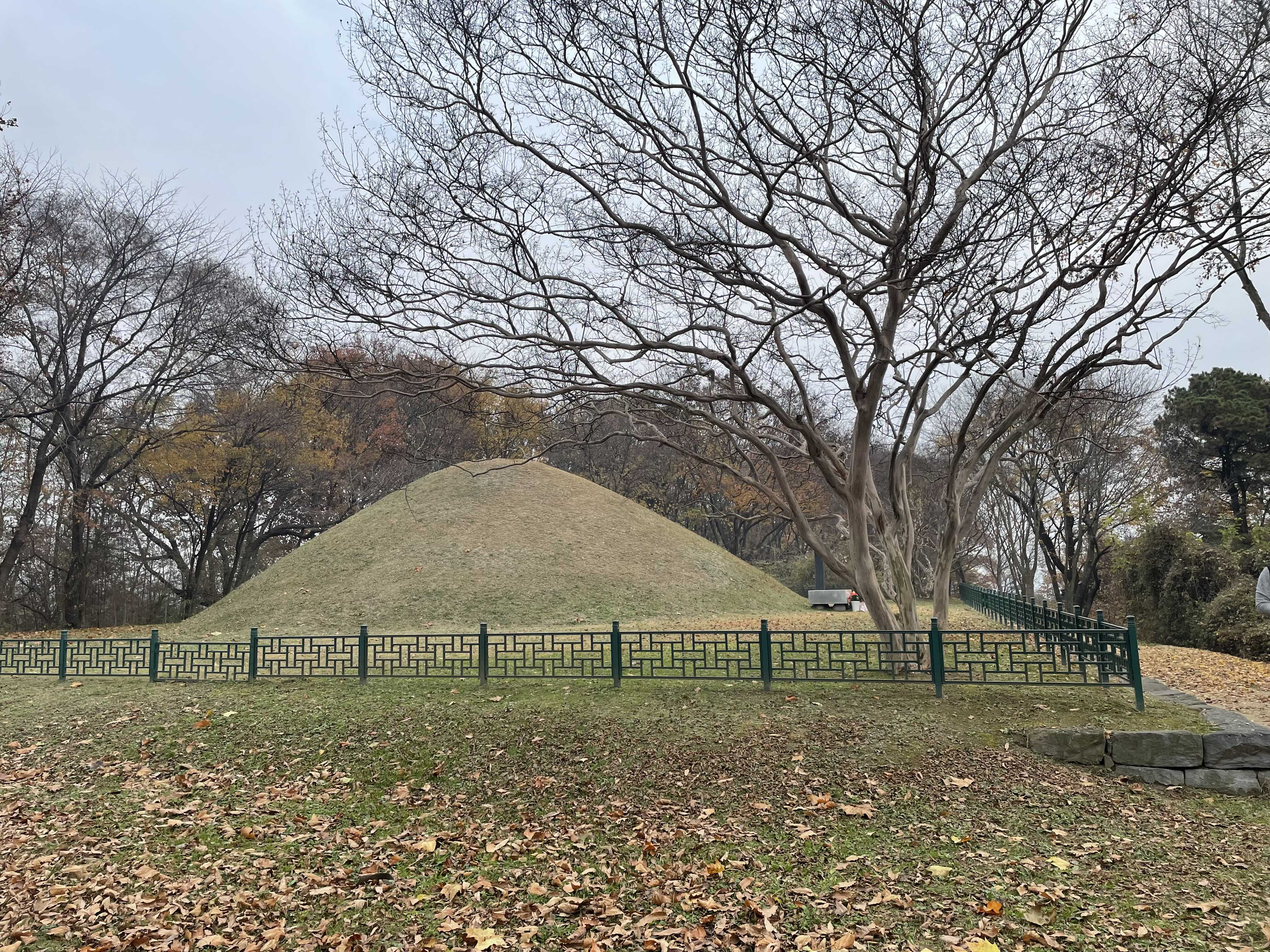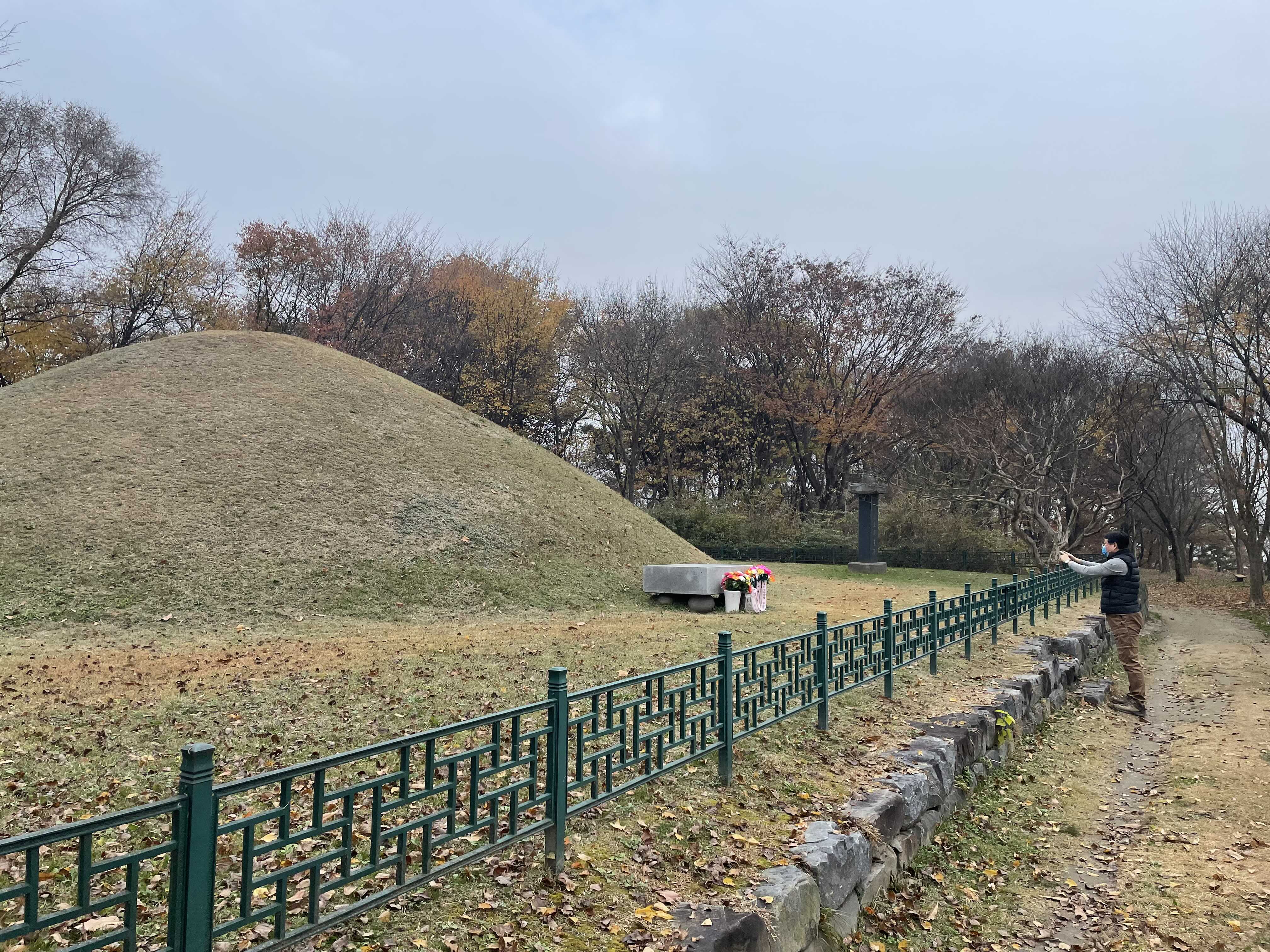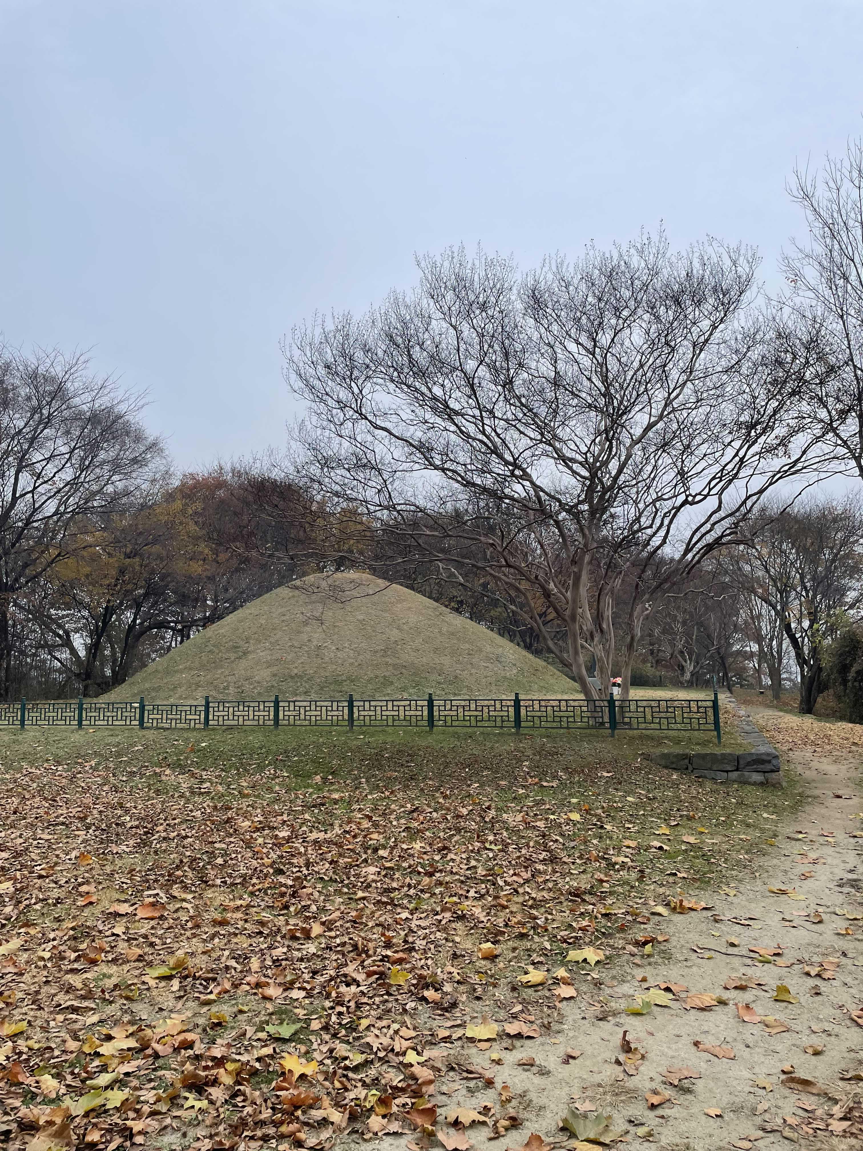 앙상한 나뭇가지와 추적추적 낙엽 사이로 보니, 왠지 견훤릉이 더 쓸쓸해 보입니다.