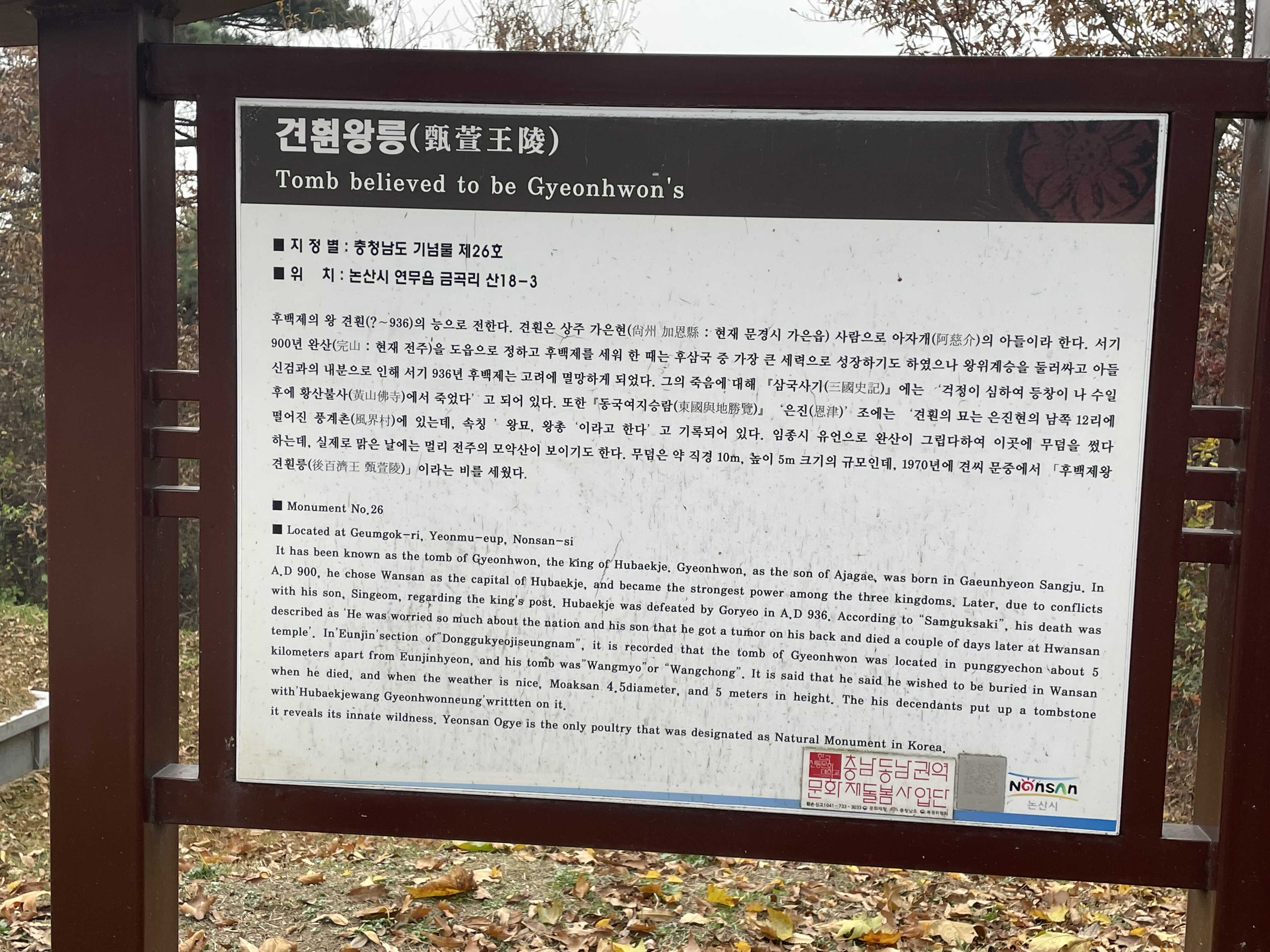 다시 사진을 보니, <견훤왕릉공원> 이라고 되어있군요.