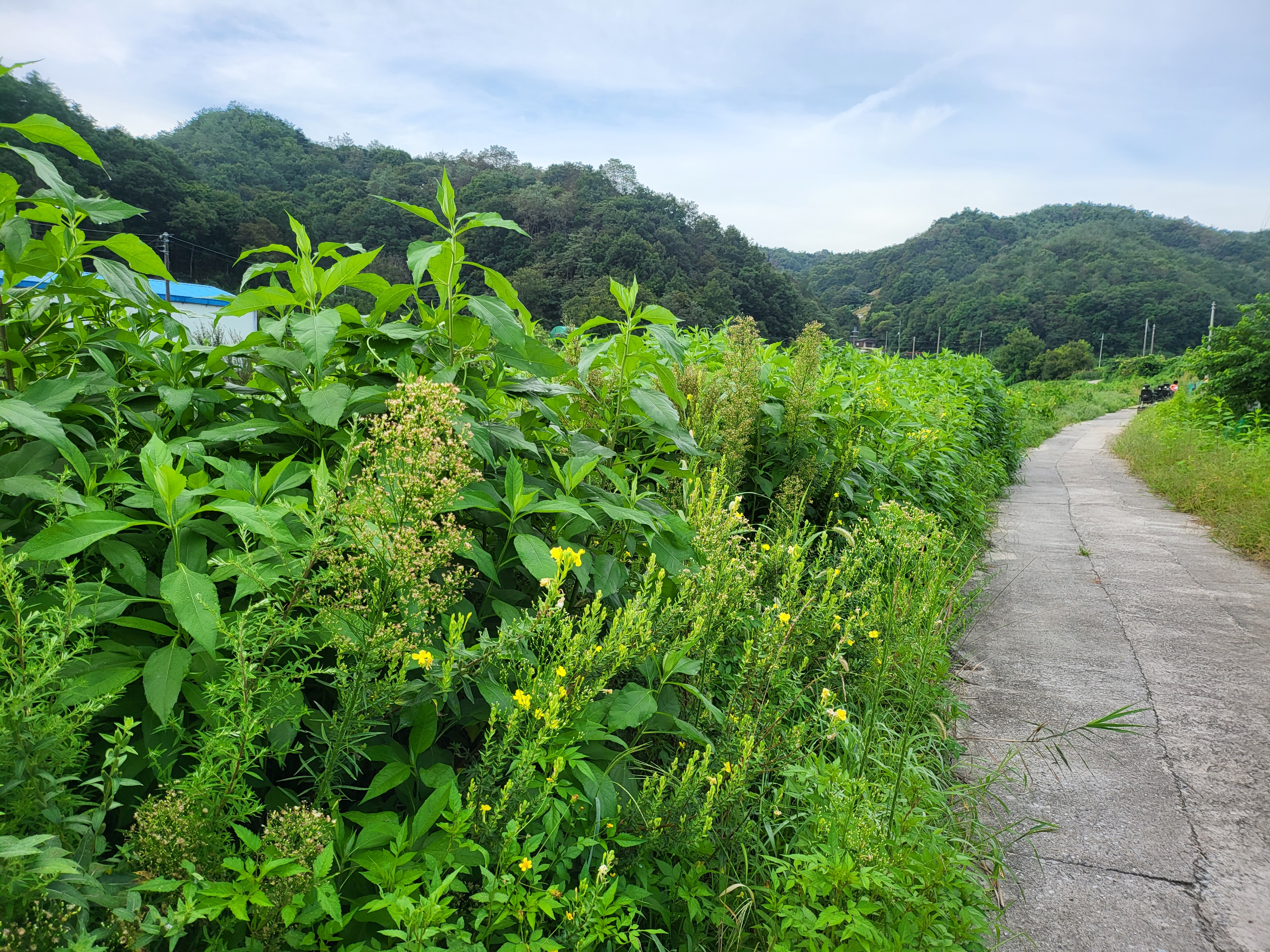 달맞이꽃이 이슬 잔뜩 머금고 노랑이 터질 듯하다.