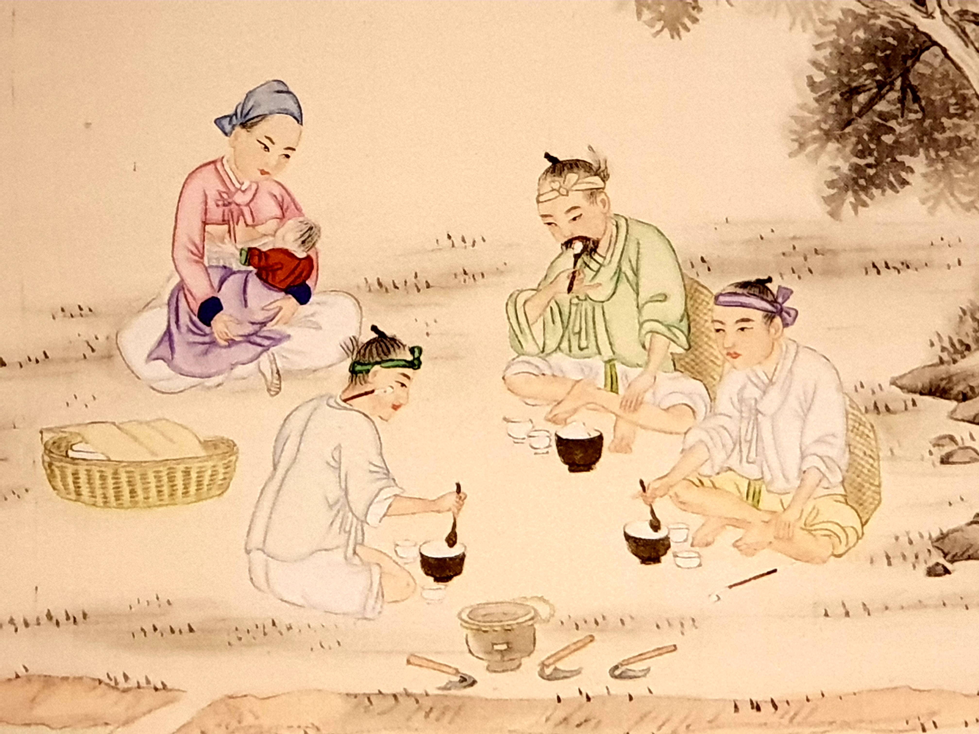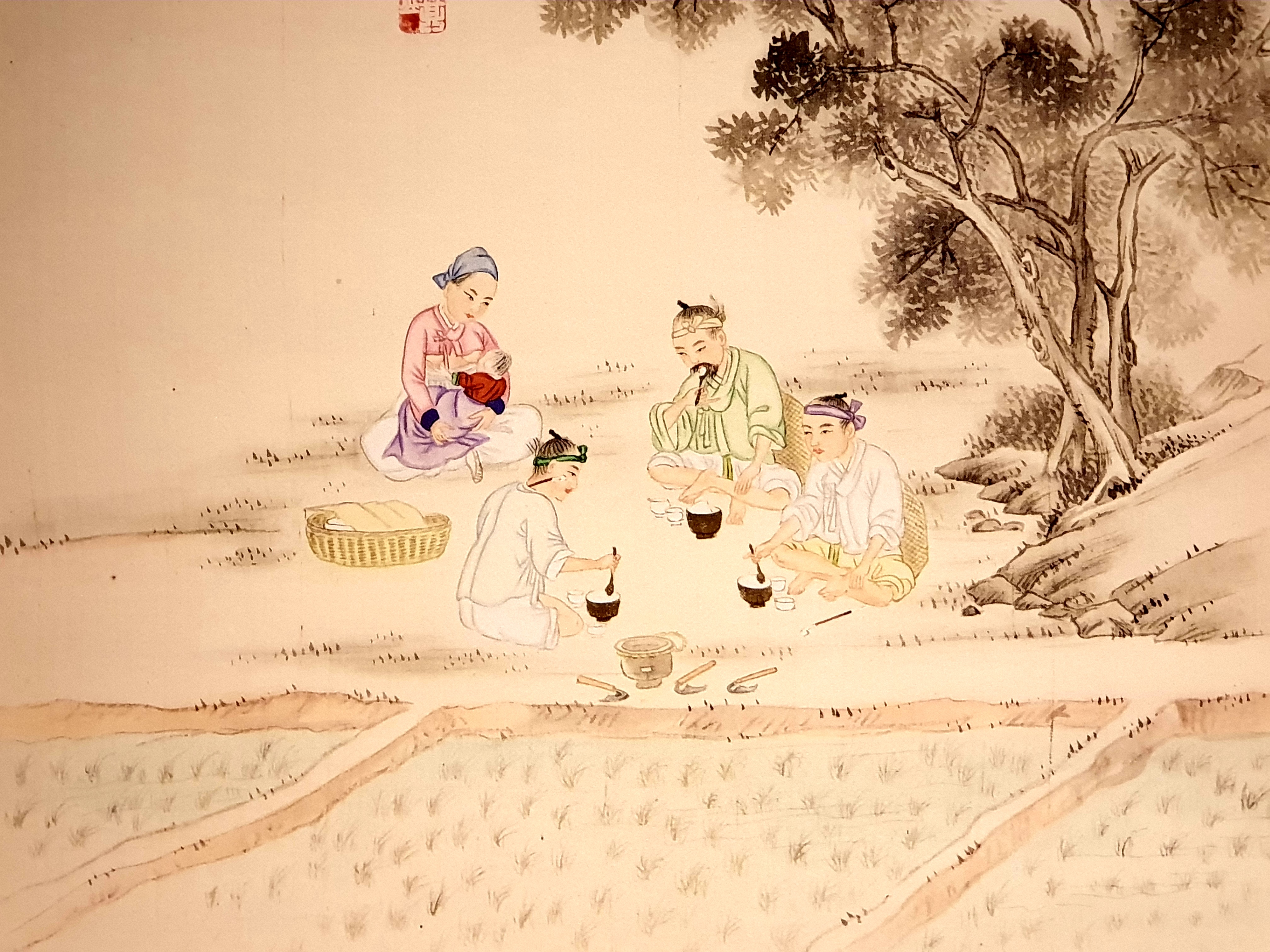 김매기를 하고 나서 농부들이 점심을 먹는 모습을 그린 풍속화