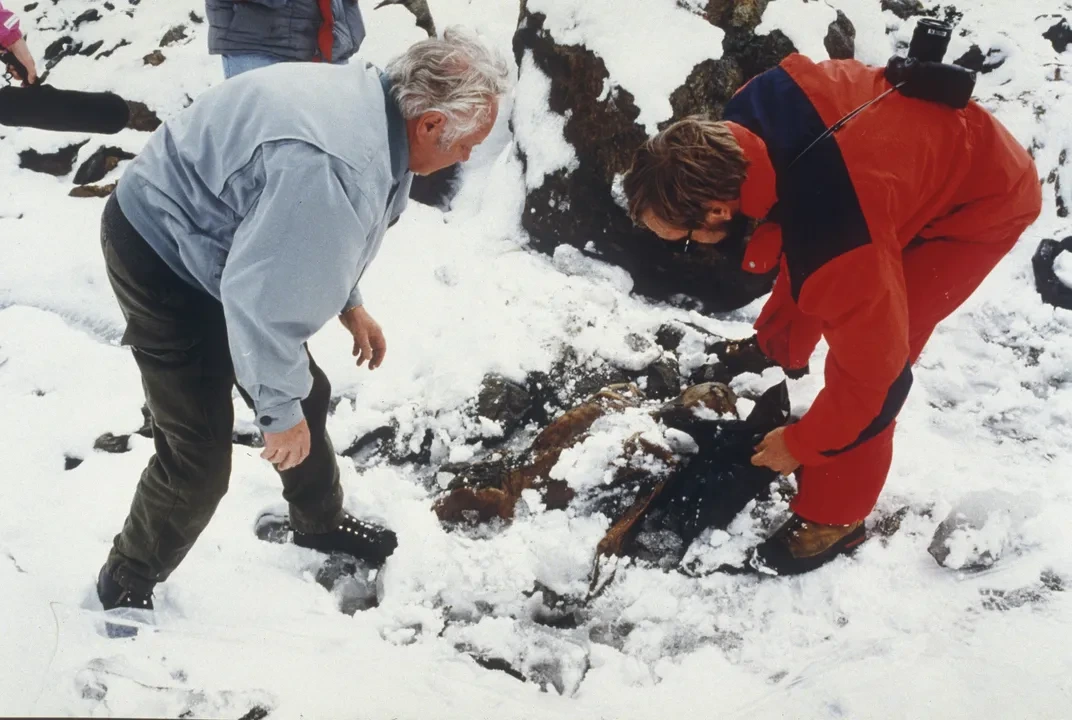 몇 명이 함께 올라가 외치 주변 얼음을 녹여가며 조심조심 그를 빙하에서 들어냈으며