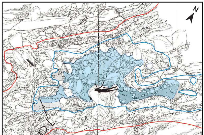 이때 그 주변에서 찾아낸 유물 위치가 그림에서 아래 그림에서 보는 바와 같다.