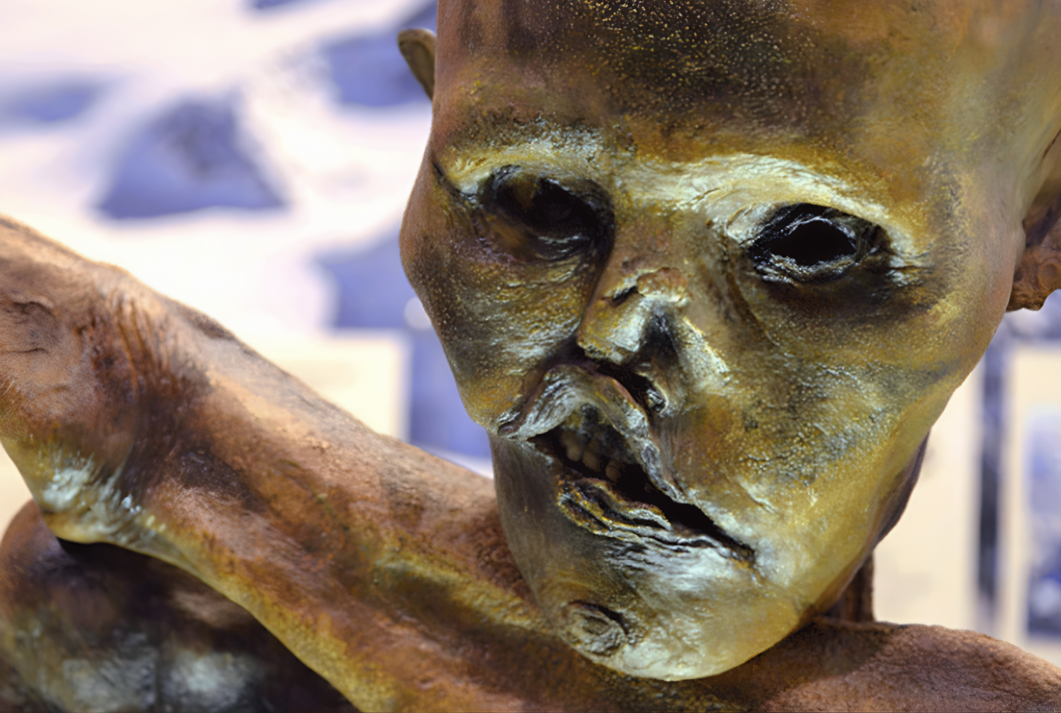 이 자세는 남티롤 고고학박물관에 안치되어 있는 현재도 같은 모습을 하고 있다.