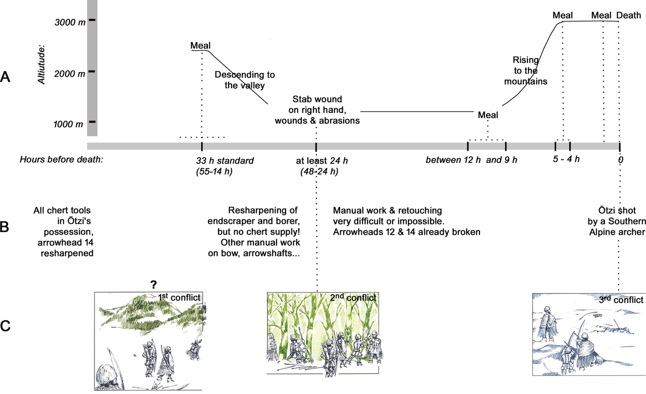 (13) 외치가 쓰러진 후 바로 눈이 내렸고 그는 빙하에 묻혔다.