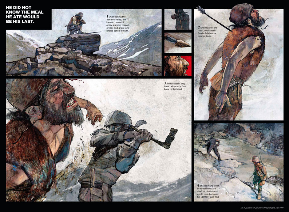 하지만 왜 그가 나이를 그렇게 많이 먹은 상태에서 가족의 애도속에 죽지 못하고 알프스 산꼭대기에서 누군가 그의 목숨을 노린 사람의 화살을 맞고 쓸쓸이 죽어가야 했을까.