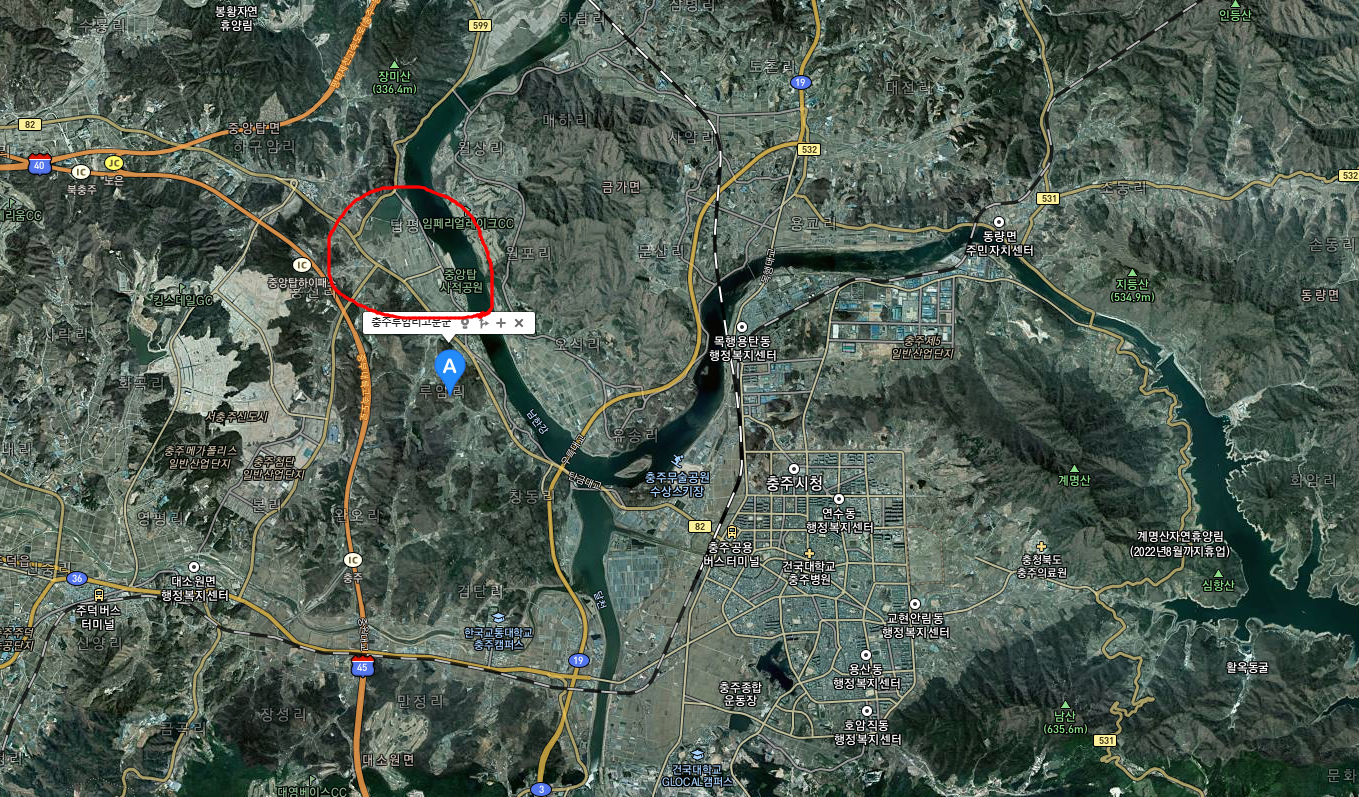 저 위성지도를 보면 지금의 충주 시내 중심가를 형성하는 구역과 신라시대 중원경의 중심구역이 달랐을 것임을 짐작케 한다.