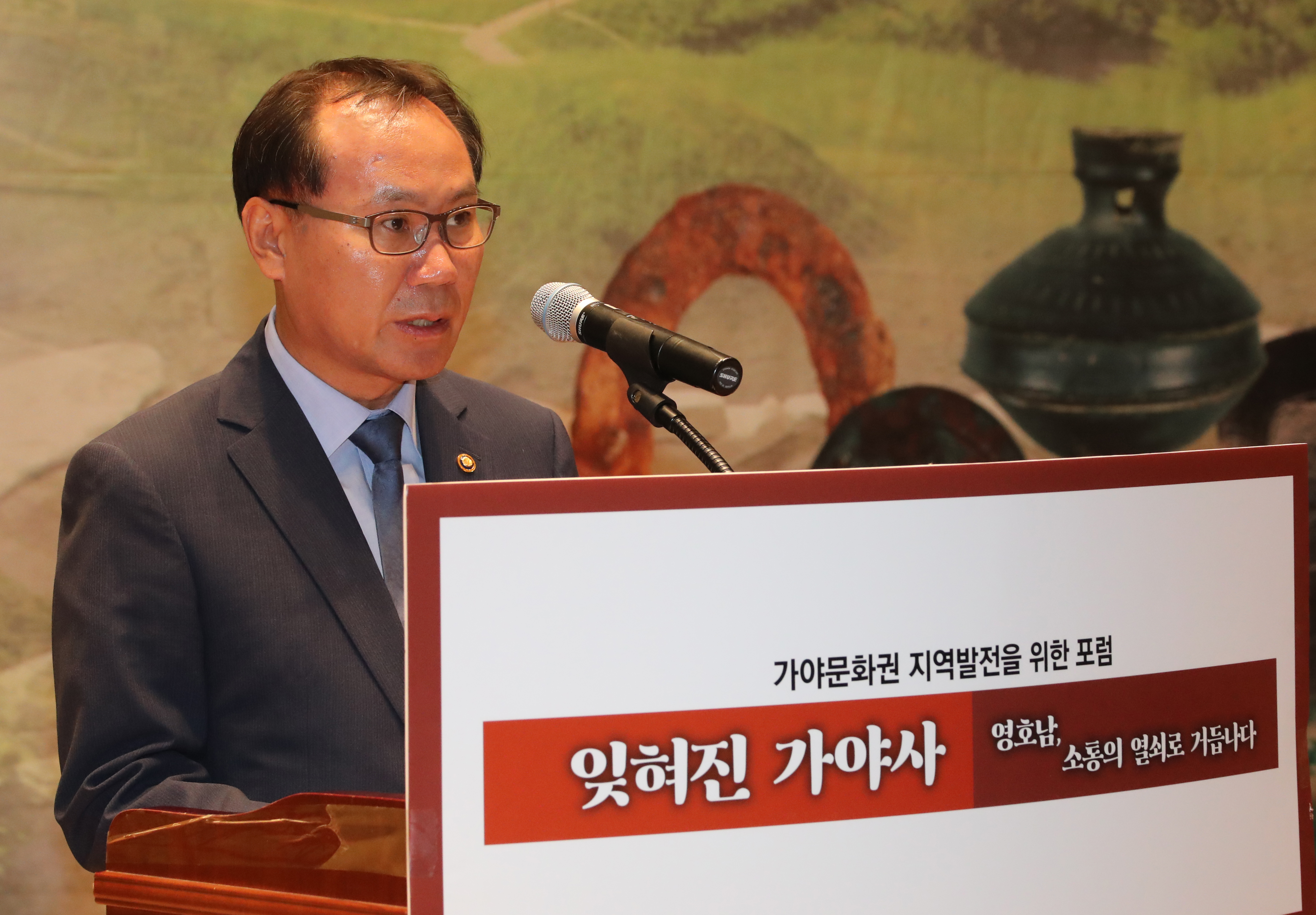 축사하는 문화재청장 김종진. 2017. 8. 31 국회 의원회관에서 열린 '잊혀진 가야사 '영호남 소통의 열쇠로 거듭나다' 토론회에서 축사하는 당시 문문화재청장 김종진