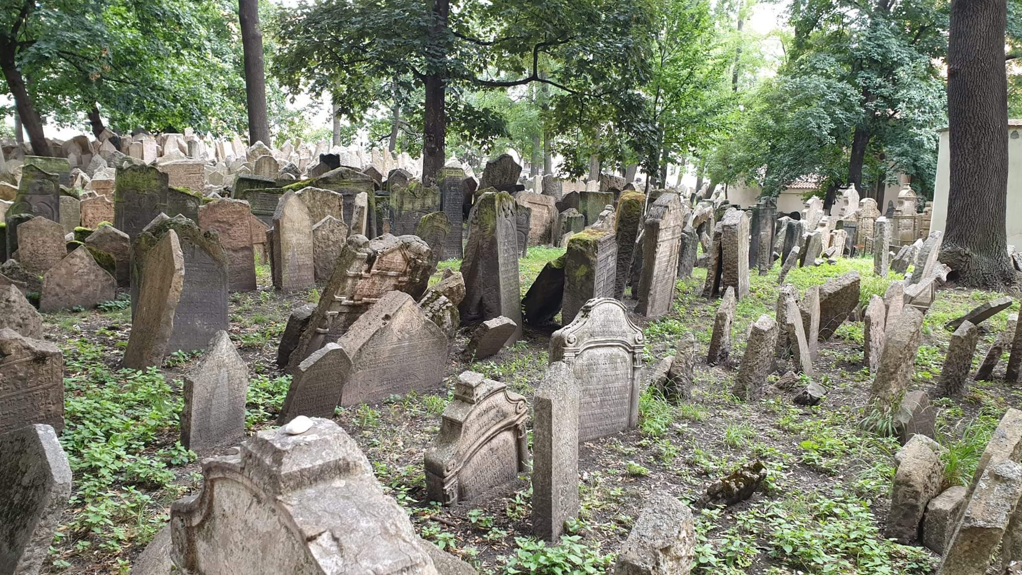 ㅇ옛 유대인 공동묘지 Old jewish Cemetery. 세계에서 가장 오래된 유대인 공동묘지 중 하나. 1439년부터 1787년까지 조성되었다. 약 12,000개의 비석이 있고, 10만명 이상이 매장된 것으로 추정된다. 당시 유대인은 이곳에만 묻히도록 허락되었으므로 10~12층까지 중첩되어 매장되었다고 한다. 프라하 유대인 지구의 상징적 유산 중 하나.