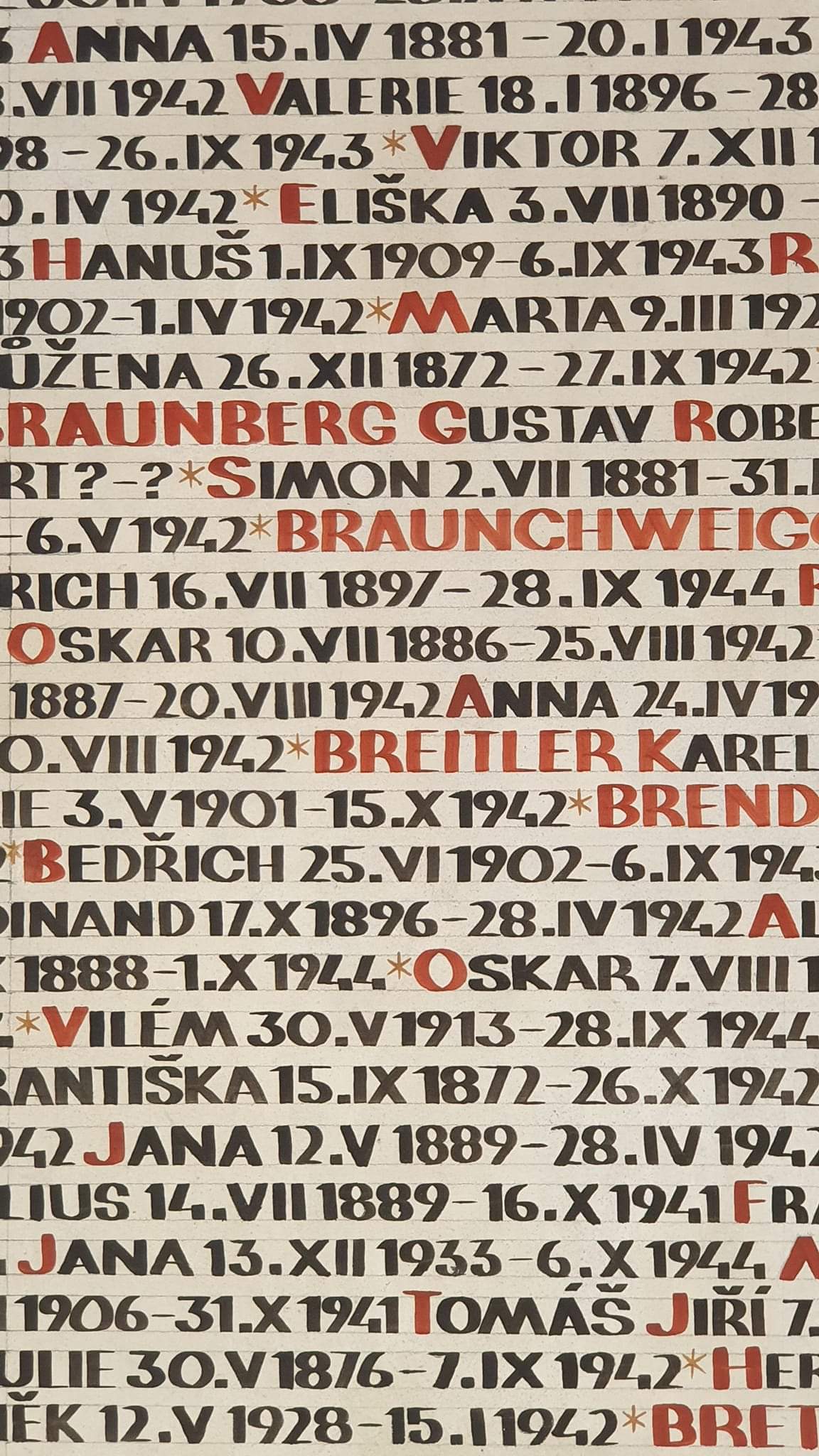 ㅇ핀카스 시나고그 Pinkas Synagogue. Shoah(쇼아. 홀로코스트를 의미) 의 유대인 희생자를 기리기 위한 7만천 희생자의 이름이 가득 적힌 유대교 회당.