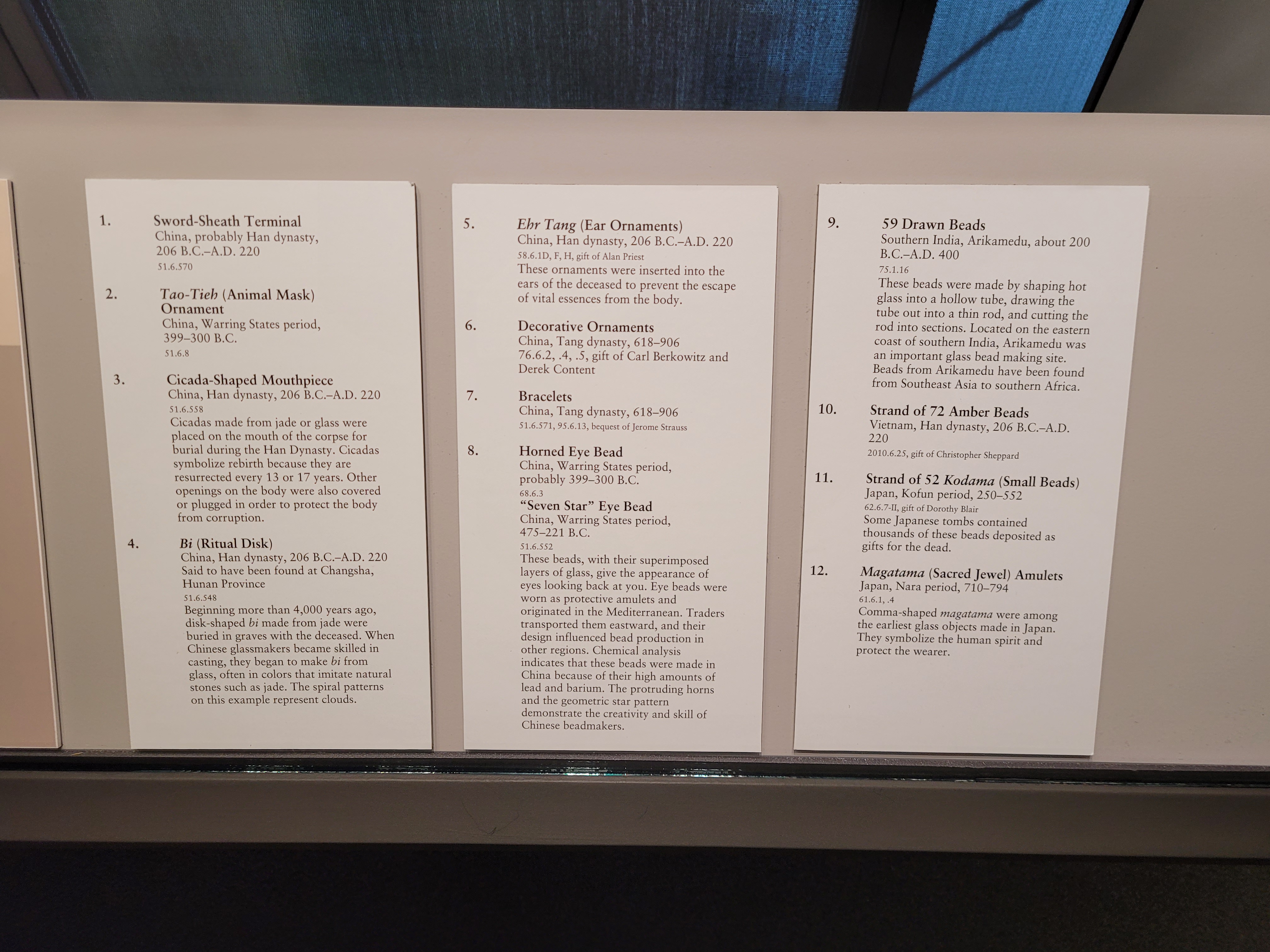 신라 고분에서 나온 유리도 필자 기억으로는 전시된 것을 못 본 것 같다.