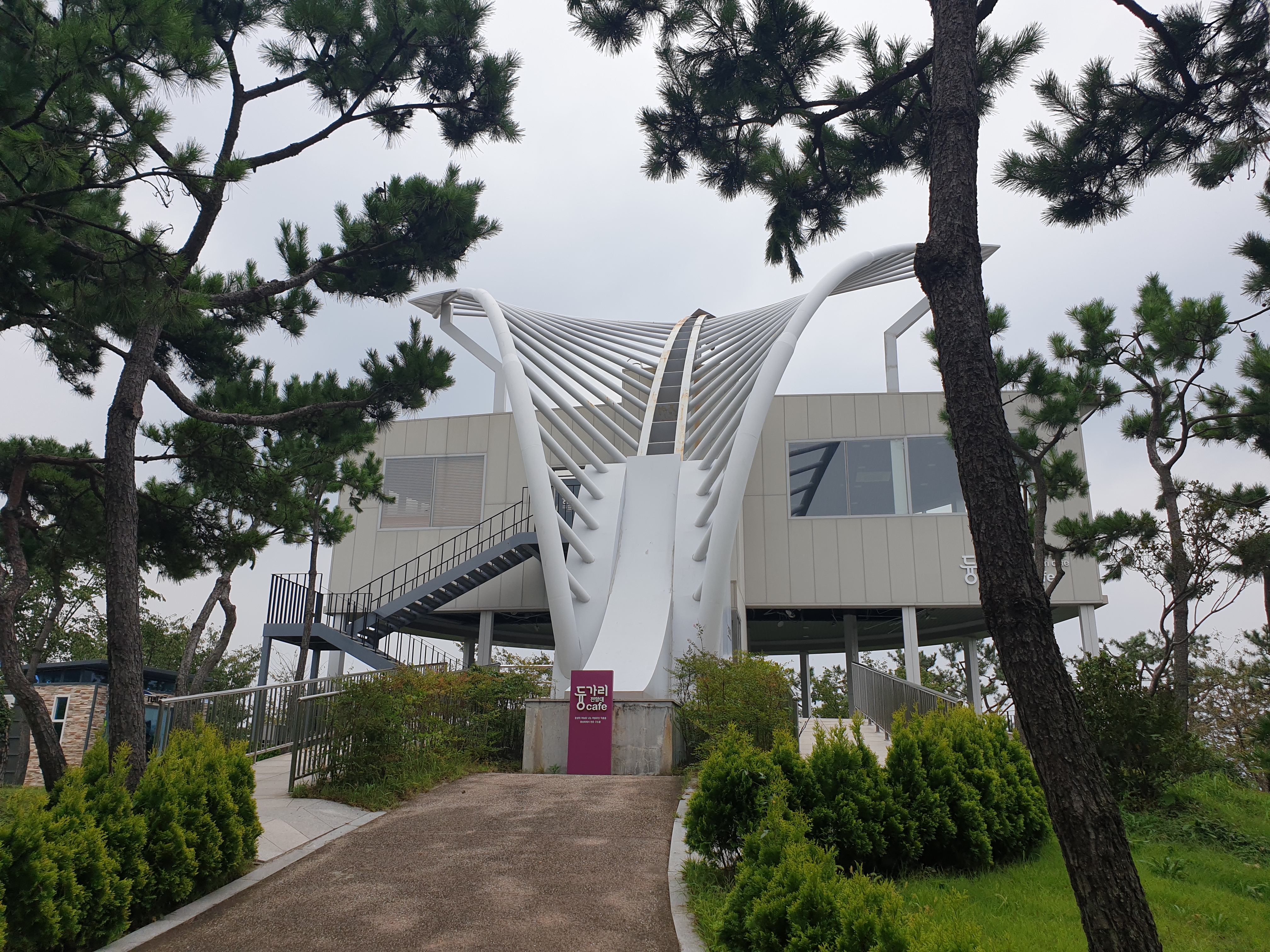 고갯길 내리 달려 도달한 해변가 꼬부랑길을 가다 보니 ‘백악기공룡테마파크’ 입구를 왼편으로 끼고 지나 마침내 고성공룡박물관이 떡 하니 나타난다. 테마파크는 이른바 사회적 거리두기에서 상대적으로 안전한 시설이라 생각했음인지 문을 열어 놓은 상태 같았지만, 박물관은 역시나 문을 꽁꽁 걸어잠근 상태였다.